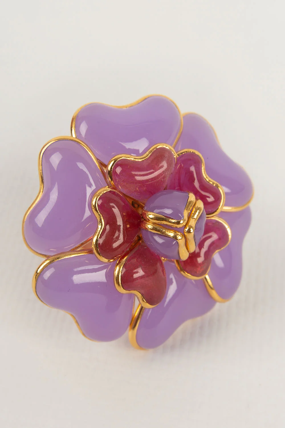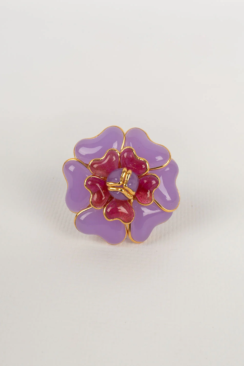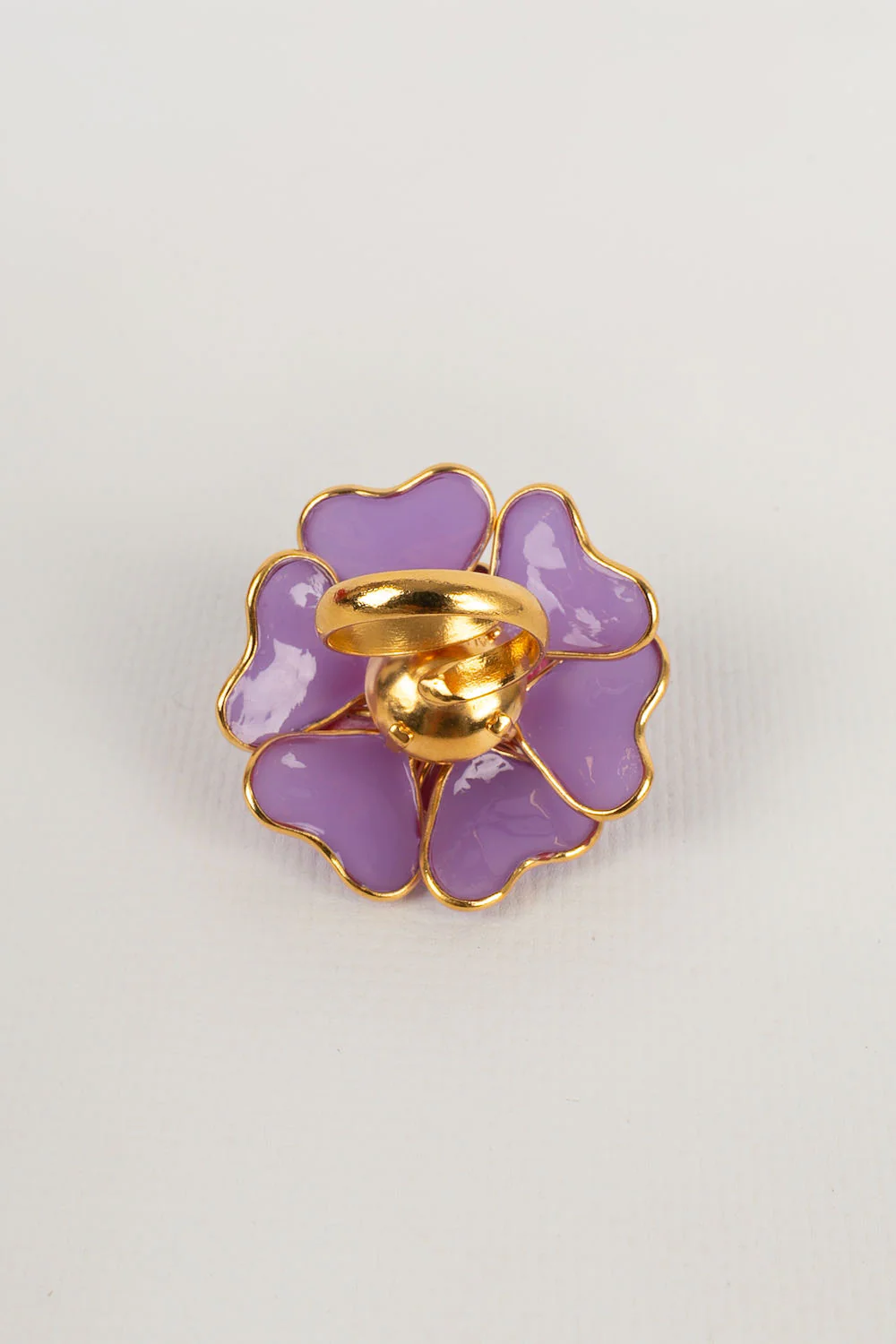 AUGUSTINE -(Made in France) Bague en métal doré et pâte de verre. Taille ajustable. Condition : Très bon état Dimensions : Diamètre du camélia : 5 cm