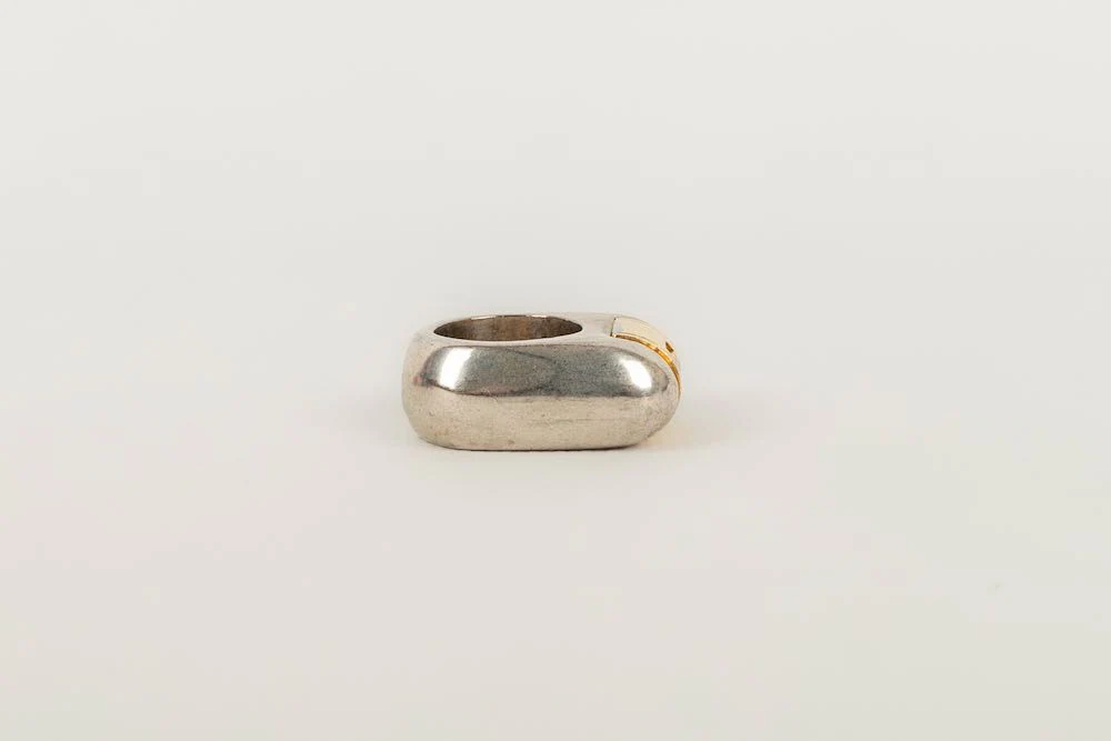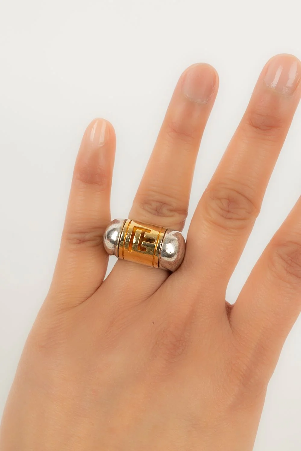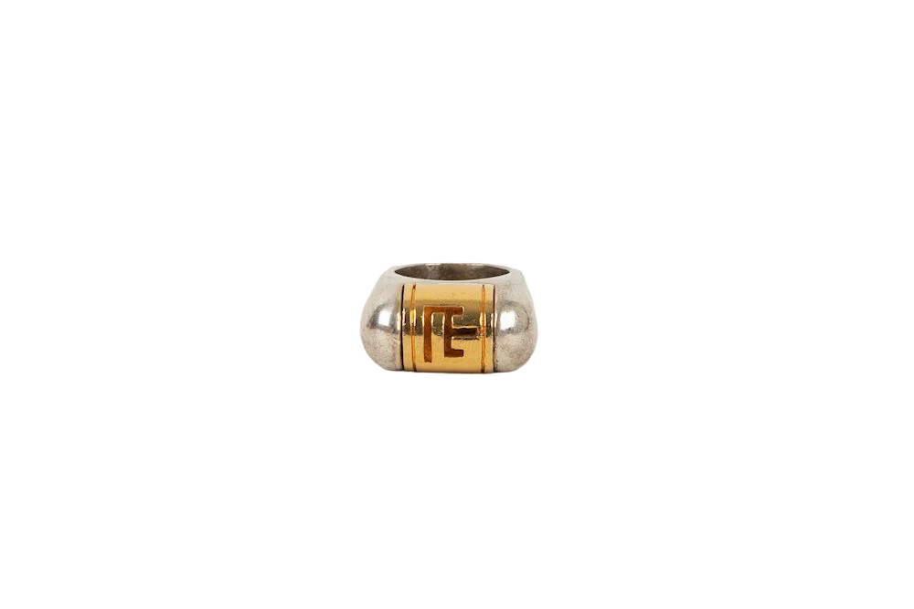 BALMAIN -Bague en métal doré et métal argenté.