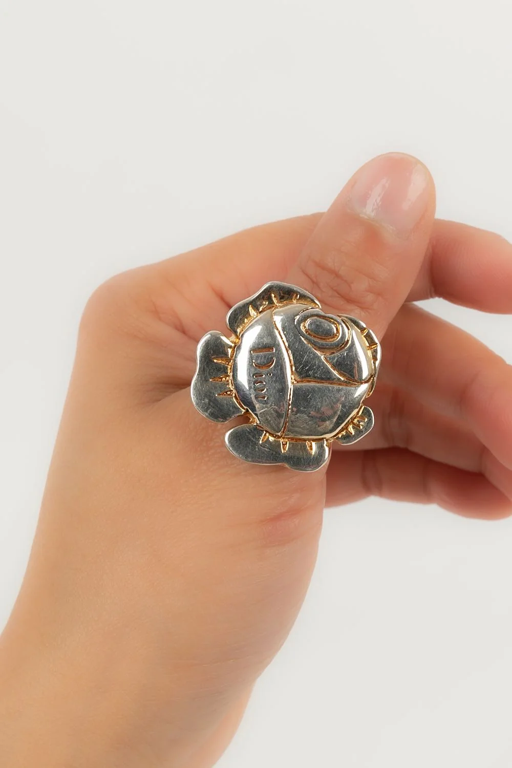 DIOR -(Made in France) Bague en métal argenté. Condition : Bon état Dimensions : Taille 56/58.
