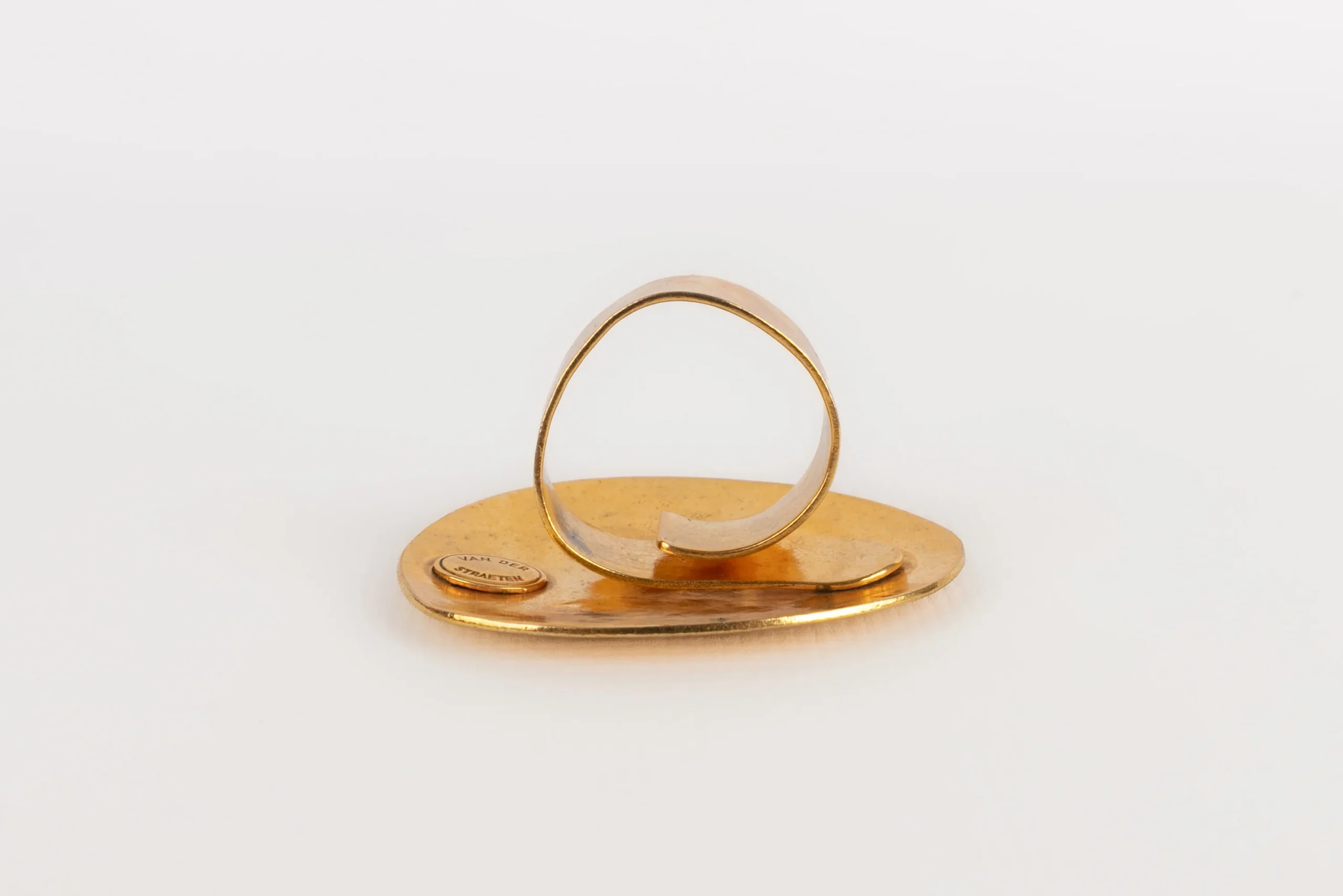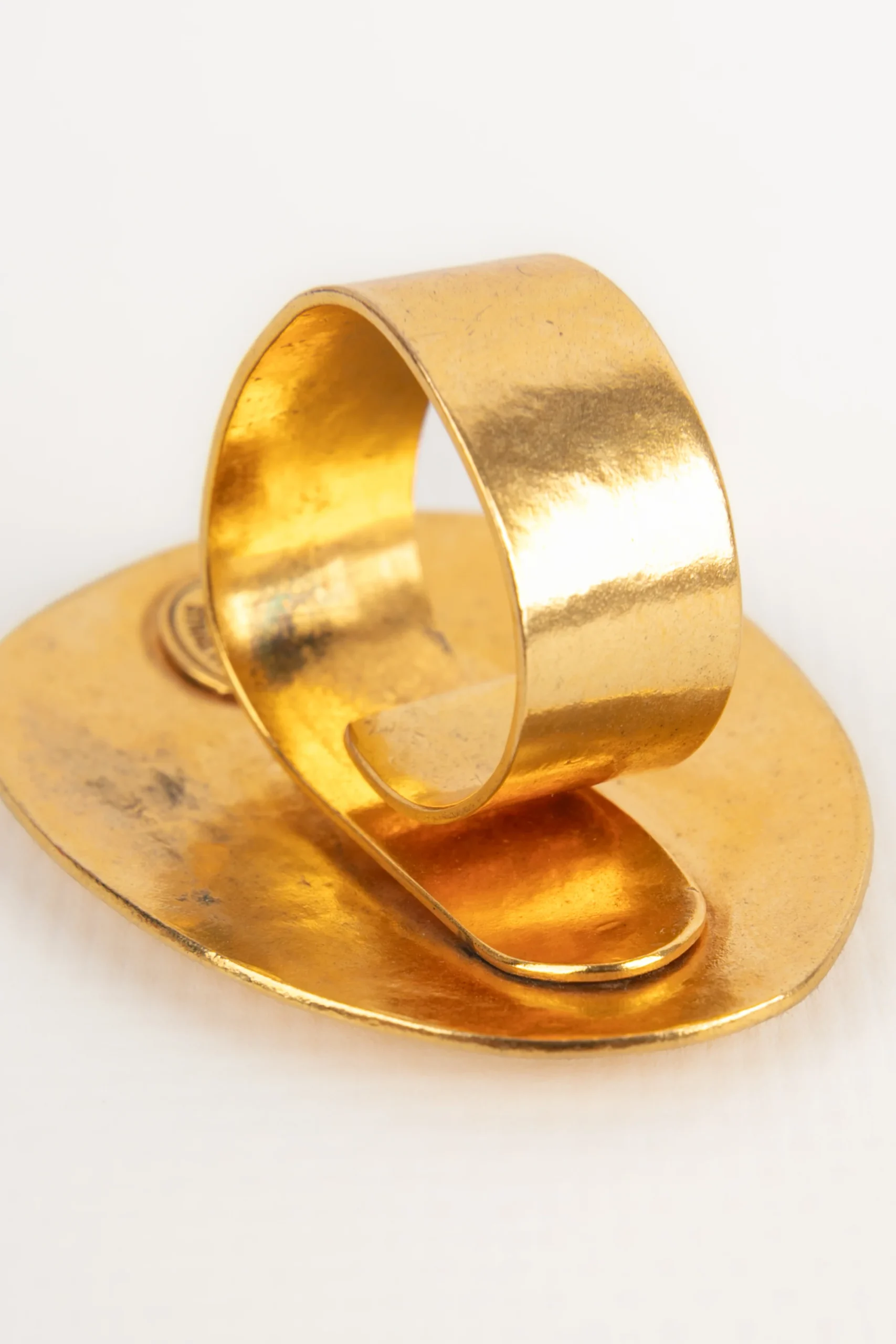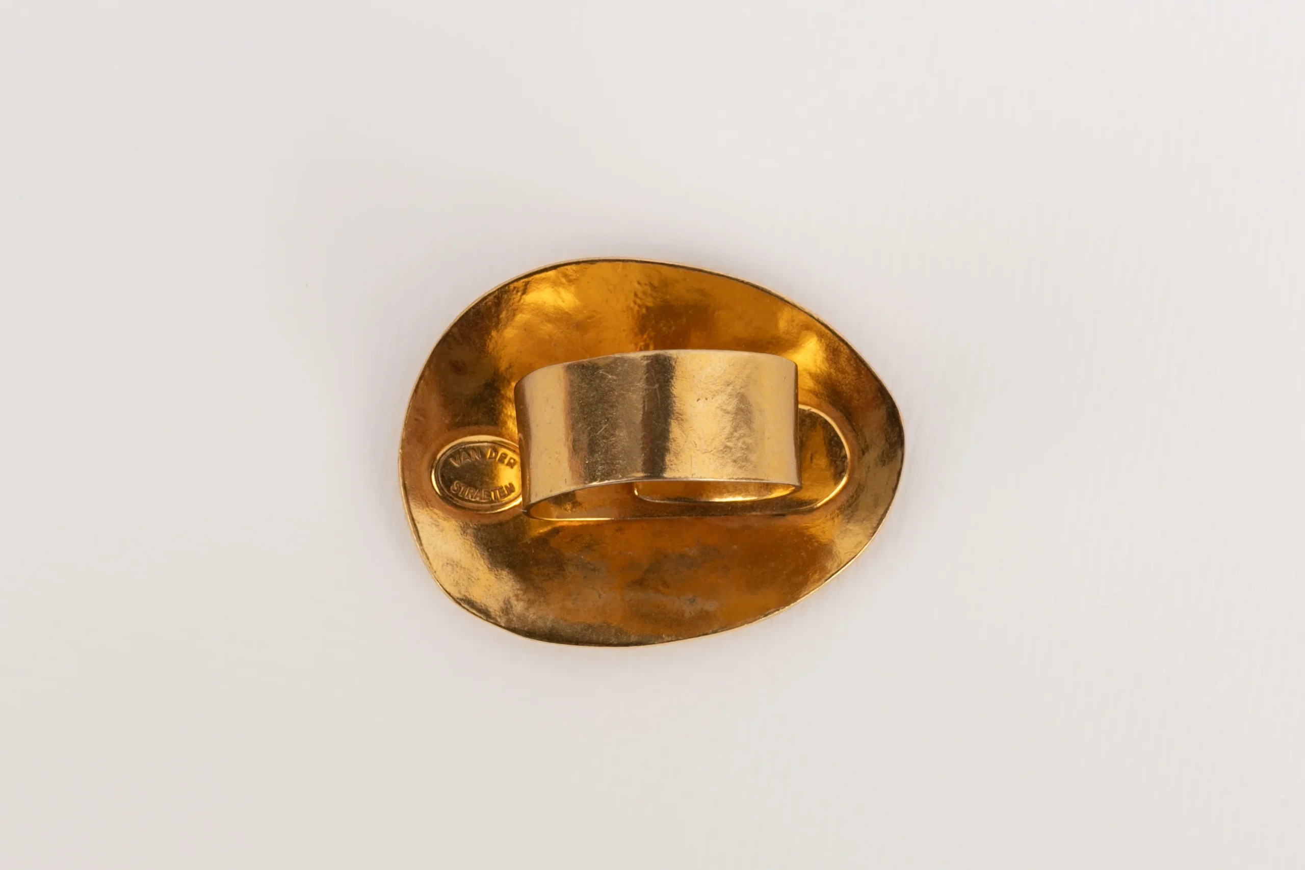 VAN DER STRAETEN -(Made in France) Bague en métal doré martelé. Taille ajustable.