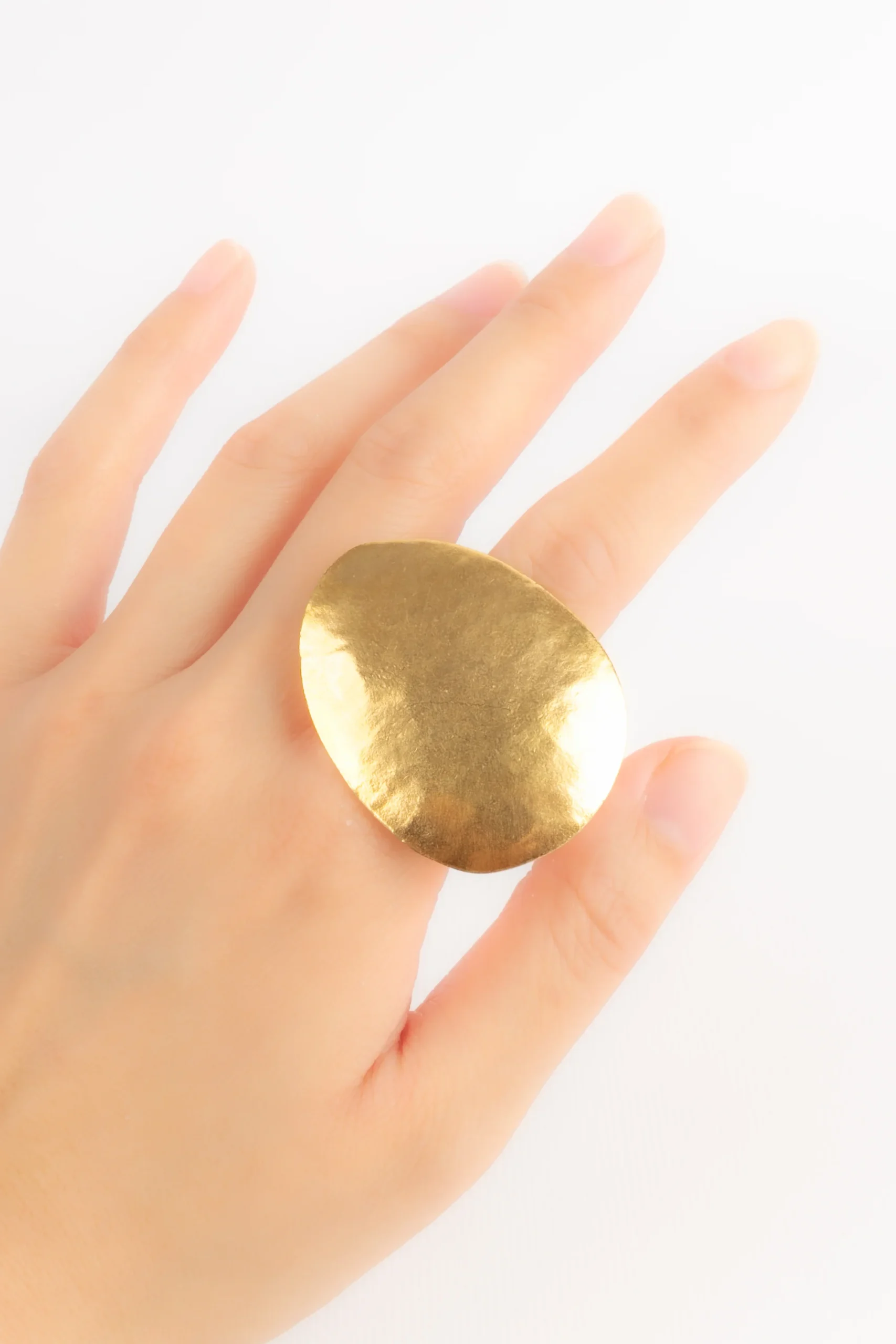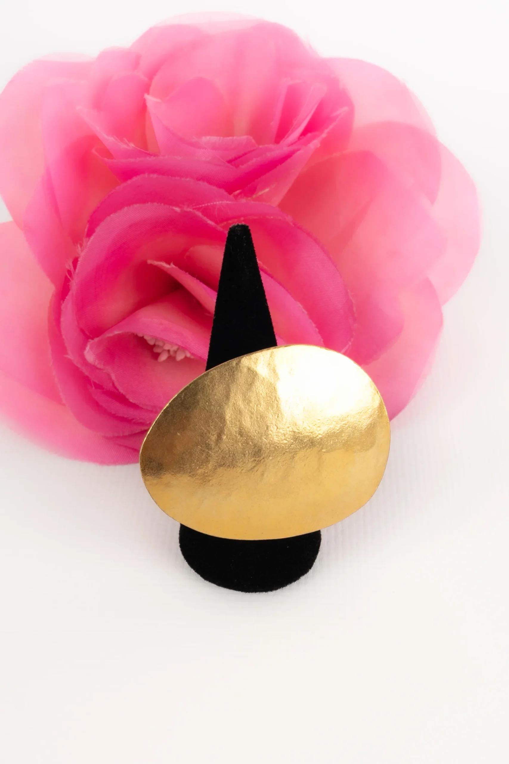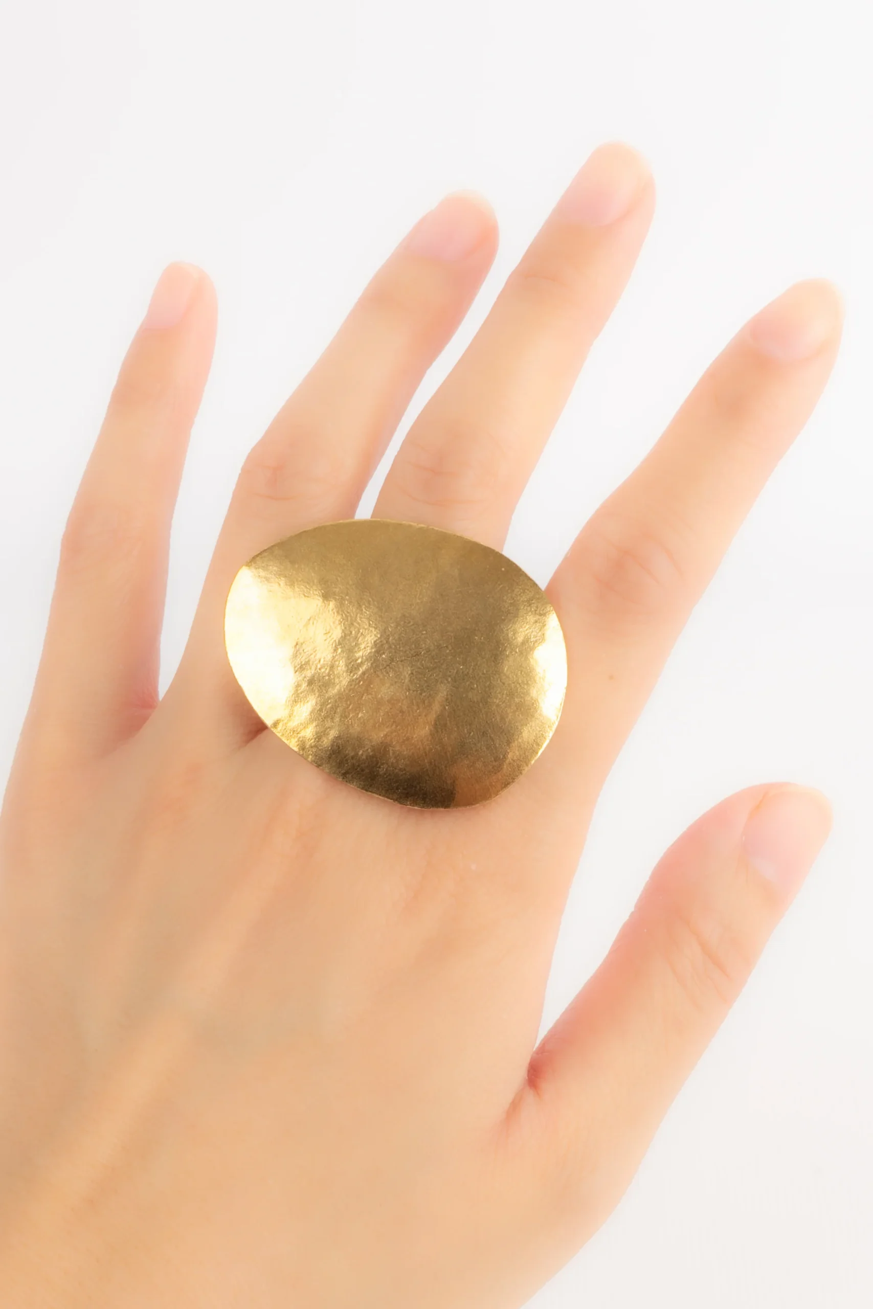 VAN DER STRAETEN -(Made in France) Bague en métal doré martelé. Taille ajustable.