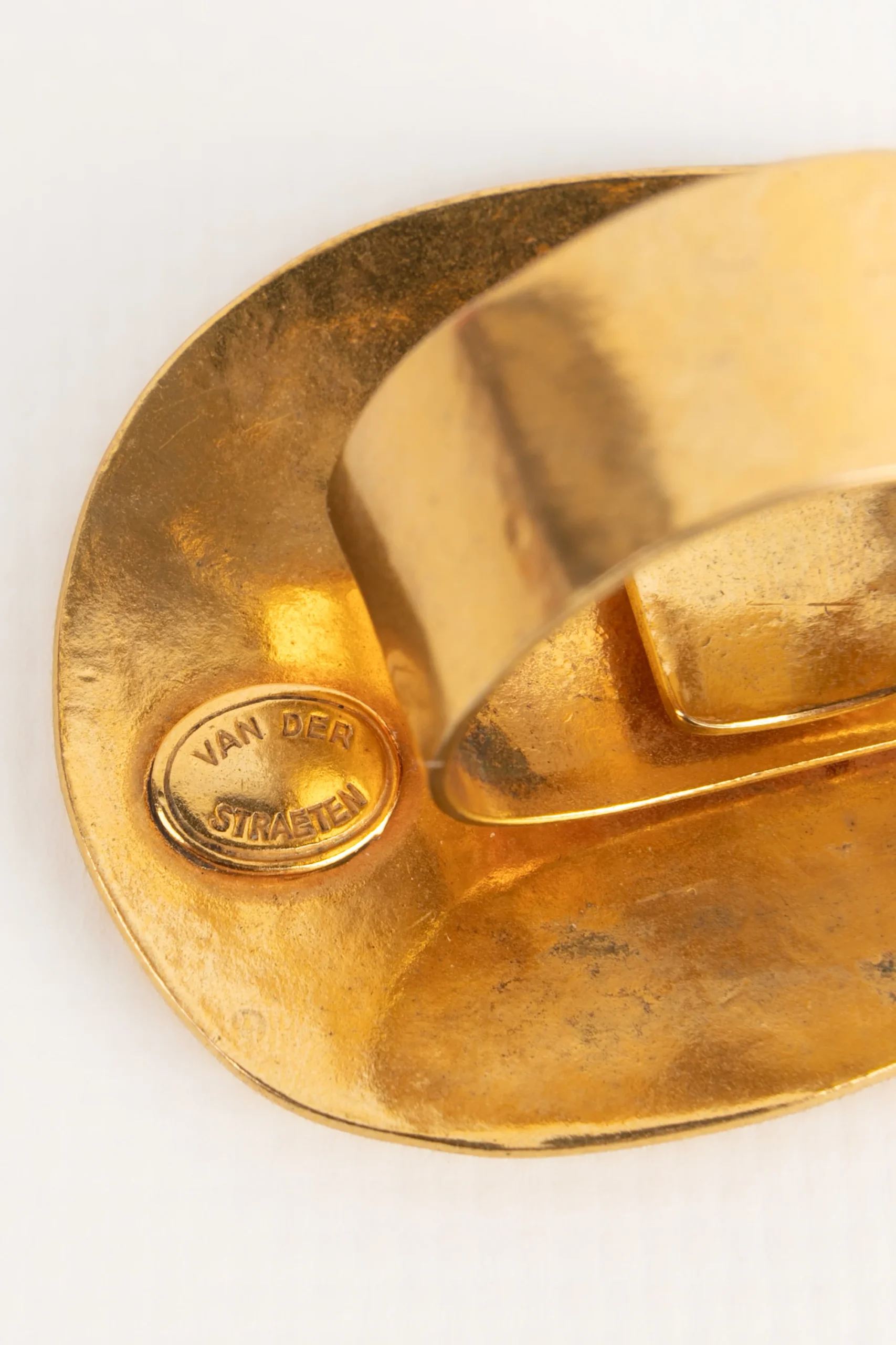 VAN DER STRAETEN -(Made in France) Bague en métal doré martelé. Taille ajustable. Condition : Très bon état Dimensions : Taille unique