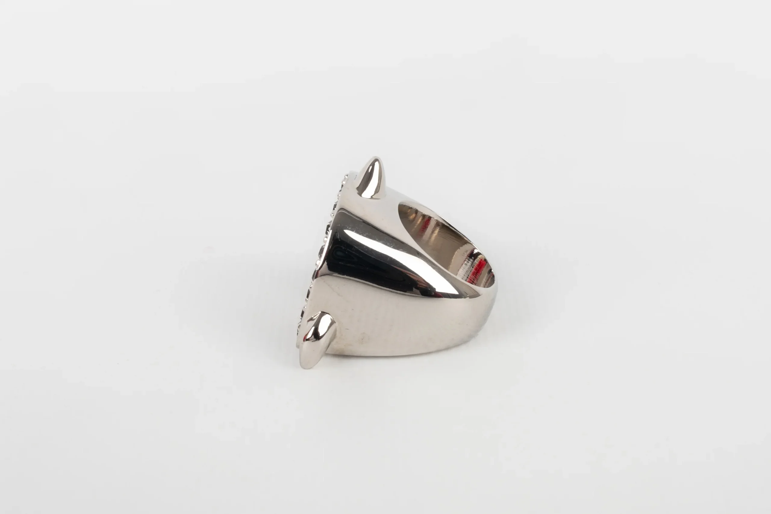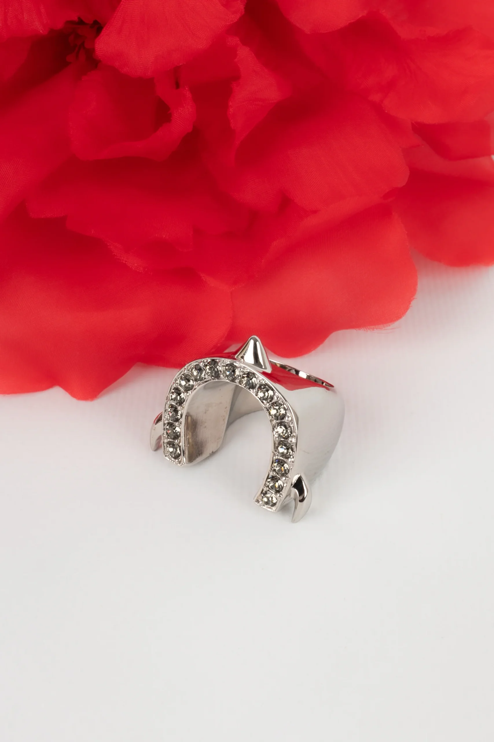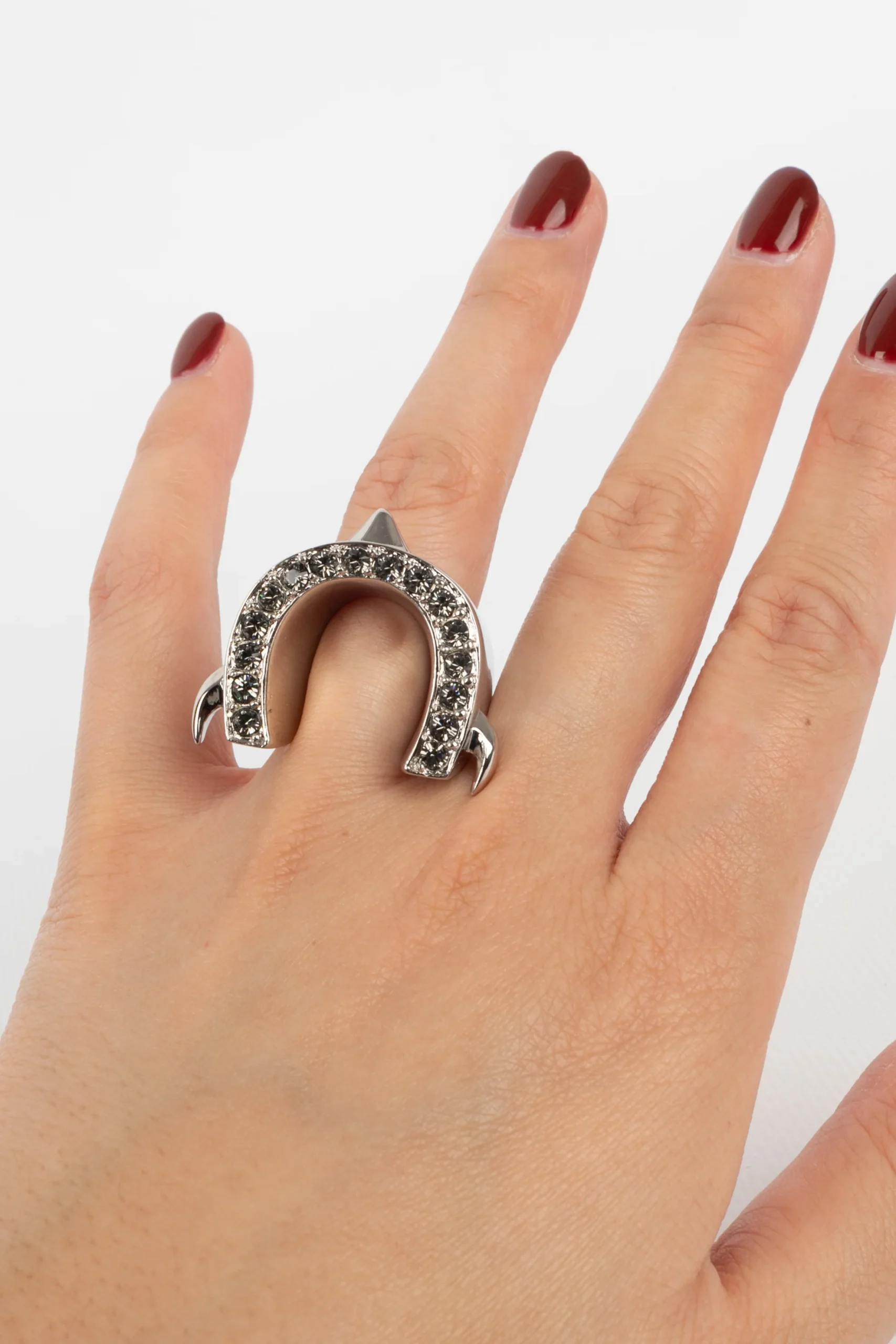 GIVENCHY -Bague en métal argenté pavée de strass.