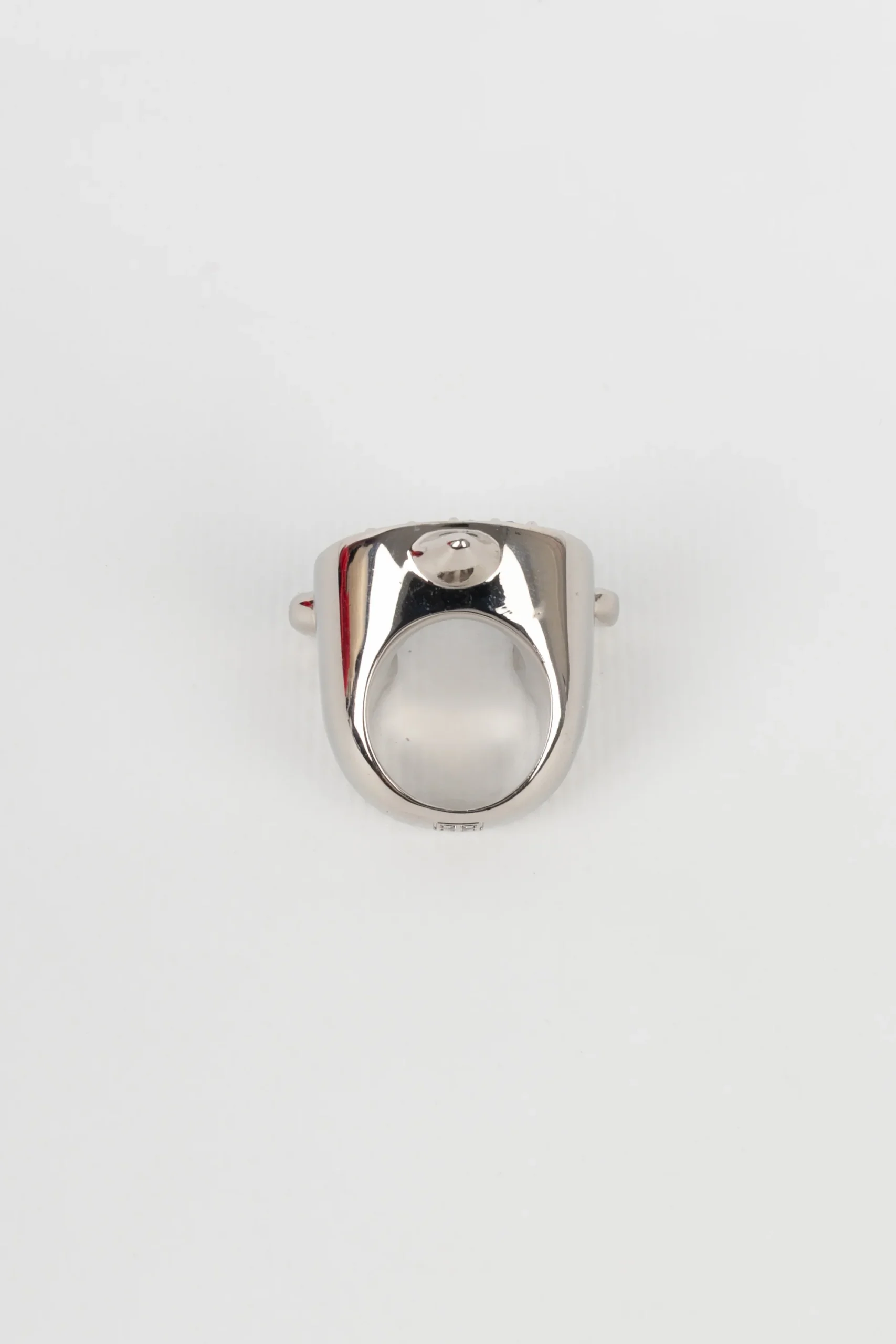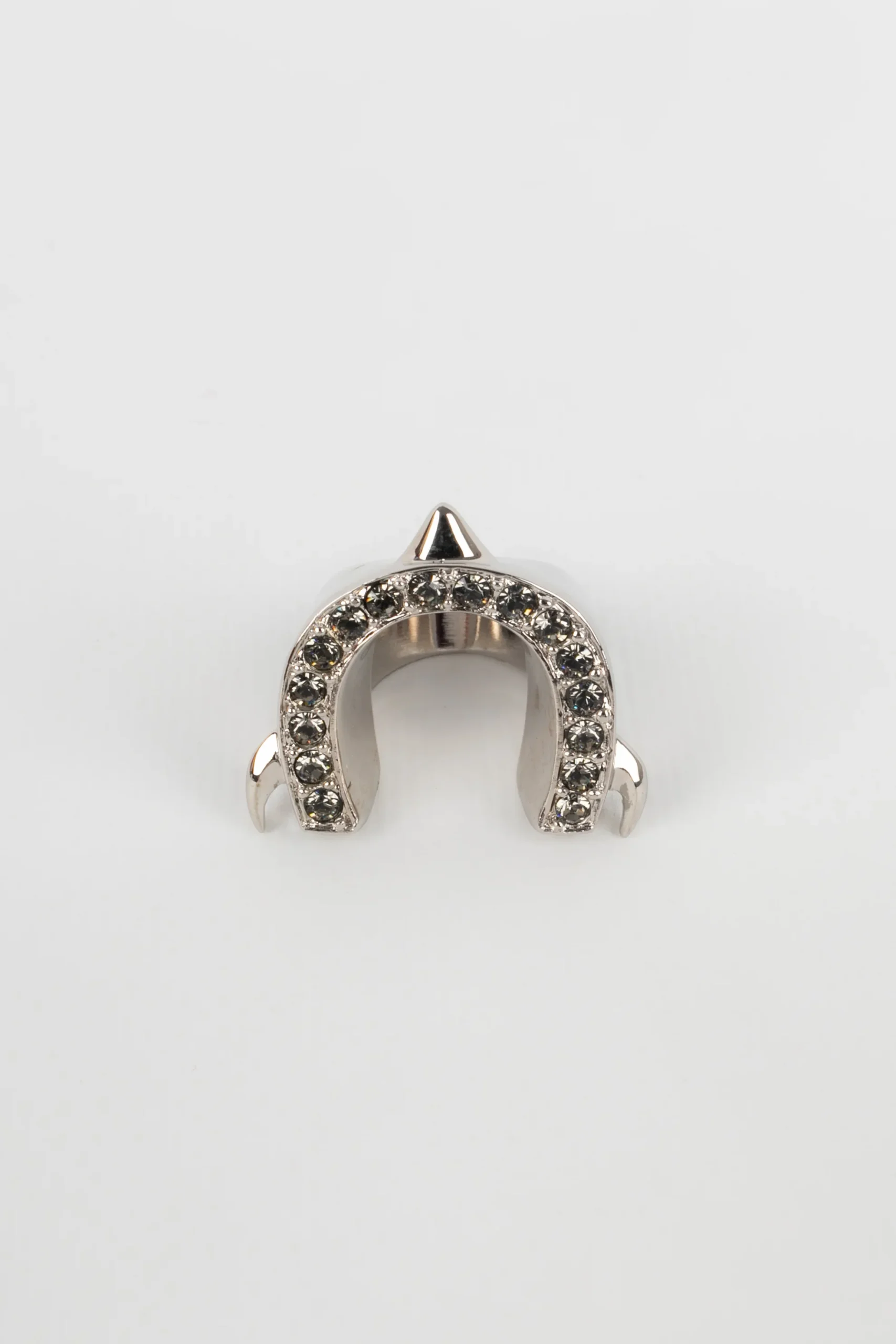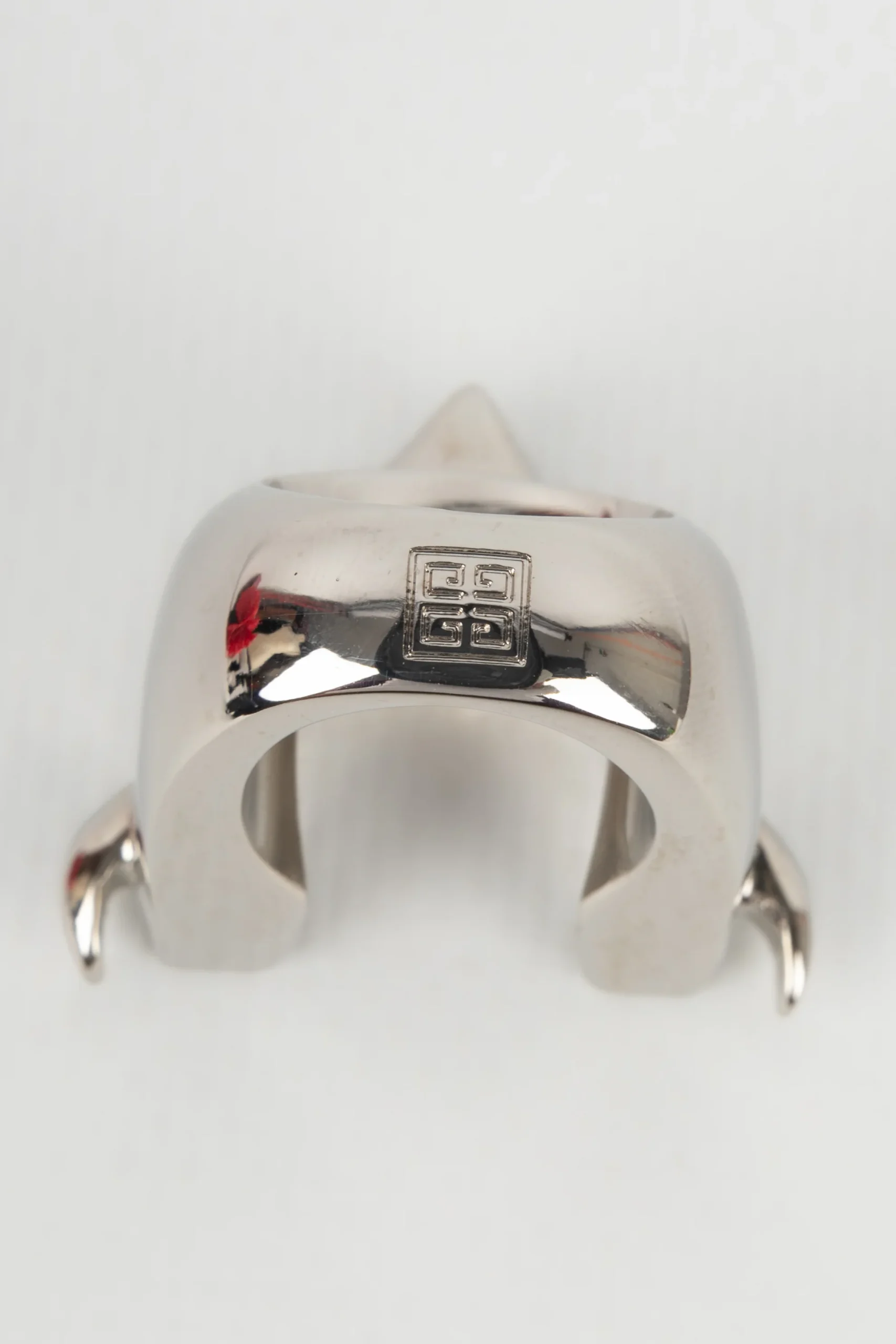GIVENCHY -Bague en métal argenté pavée de strass.