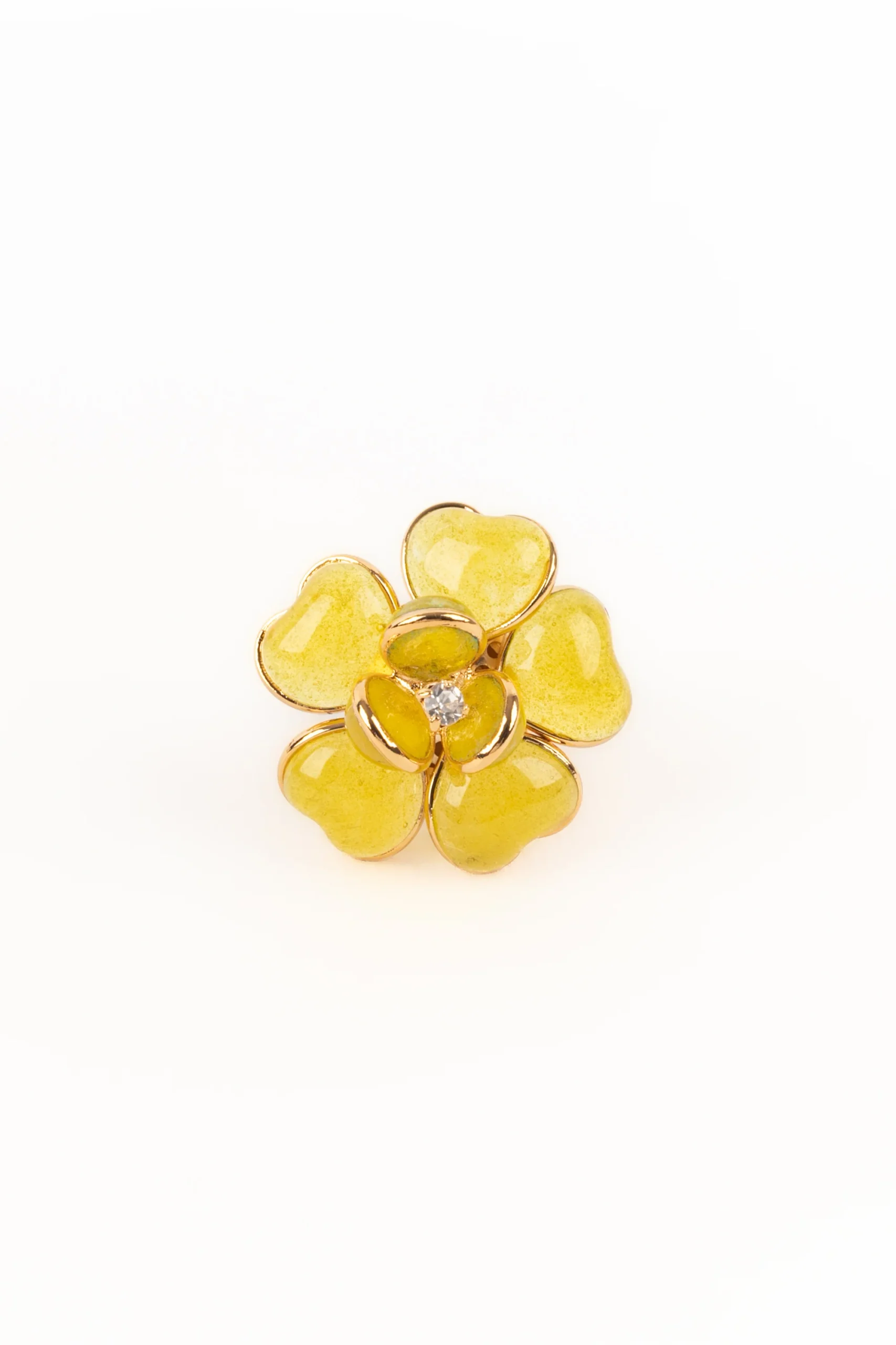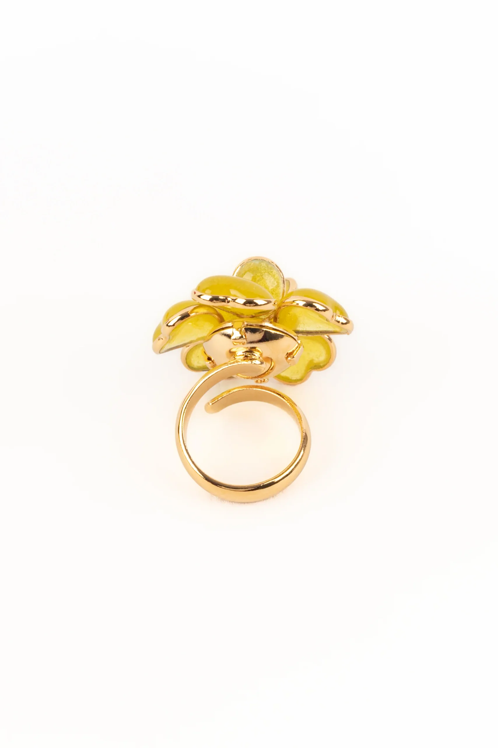 AUGUSTINE -(Made in France) Bague en métal doré et pâte de verre jaune.