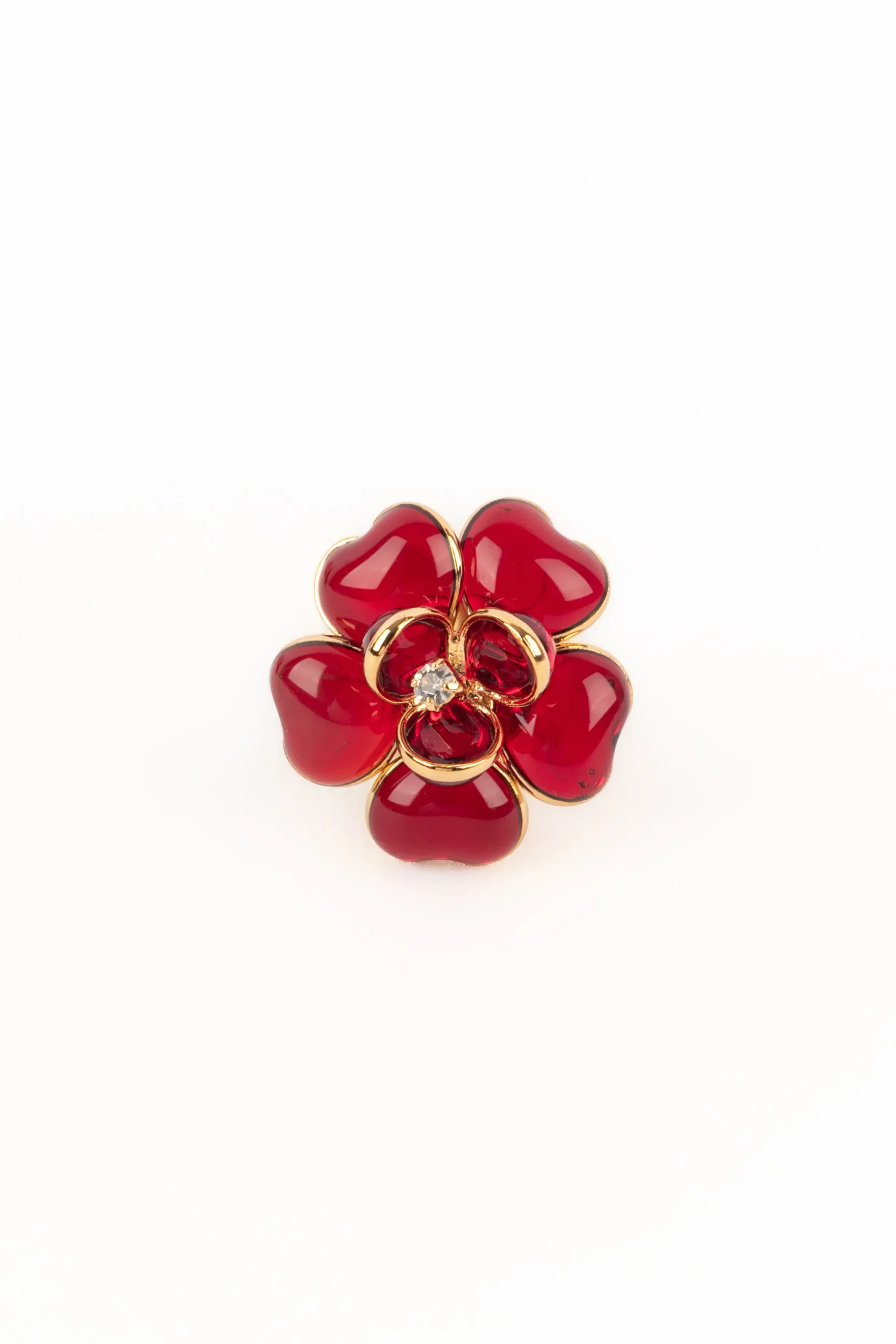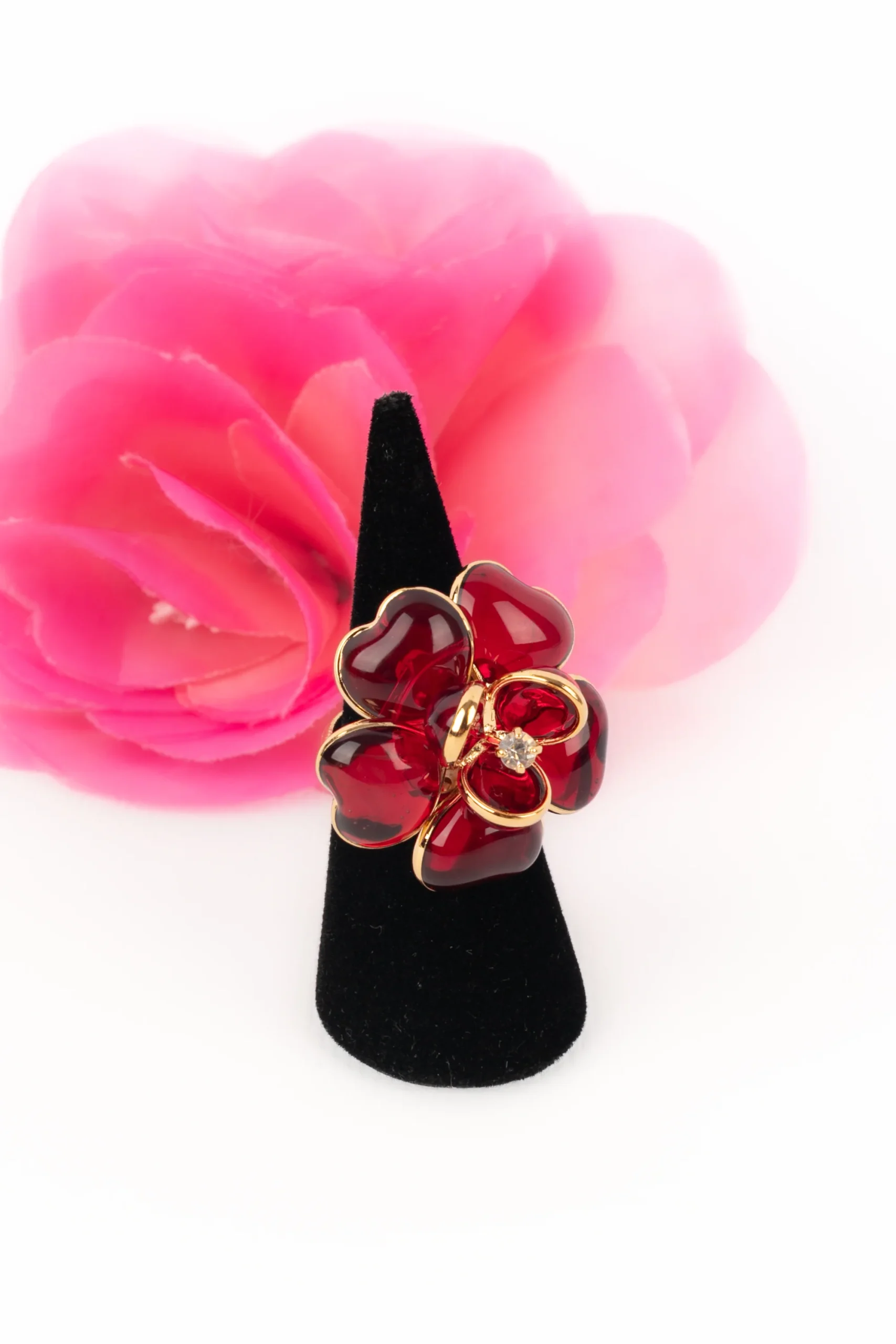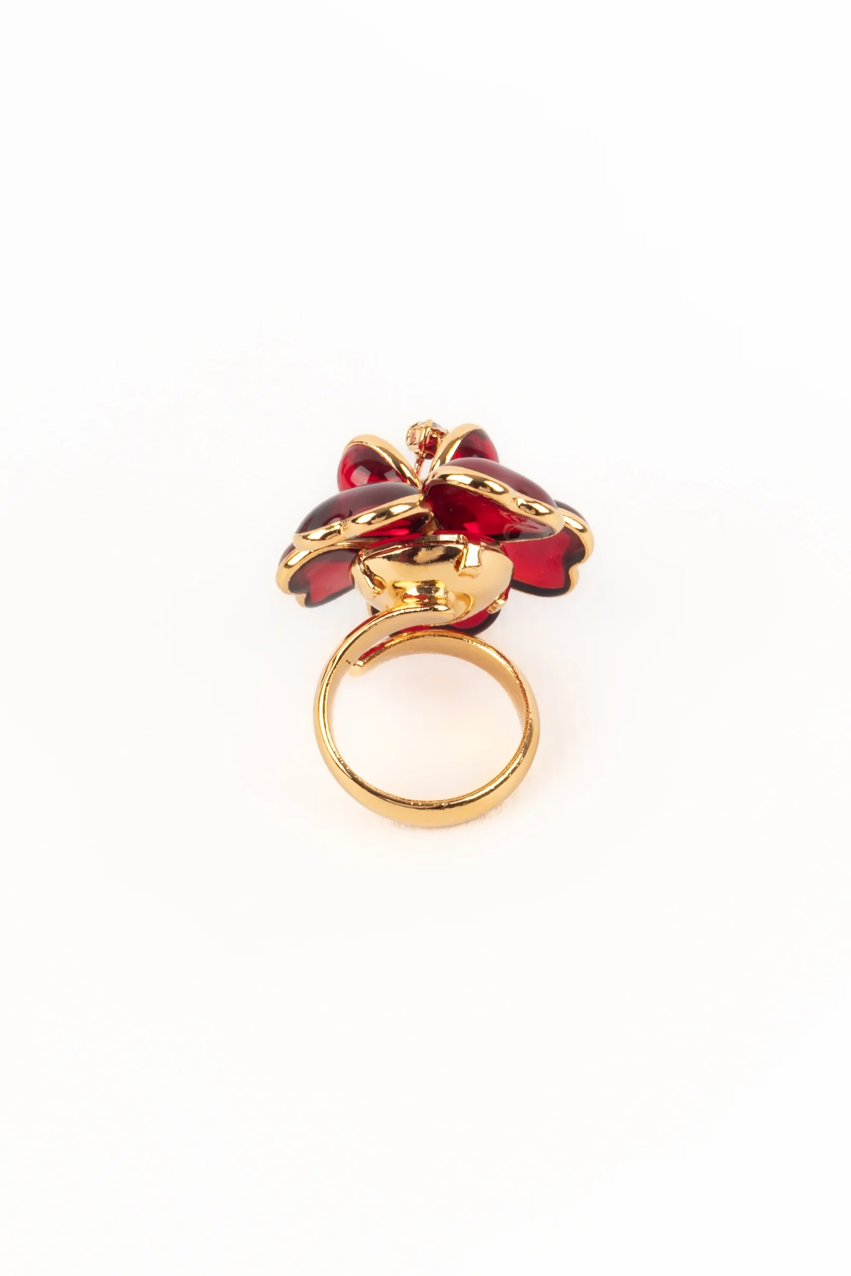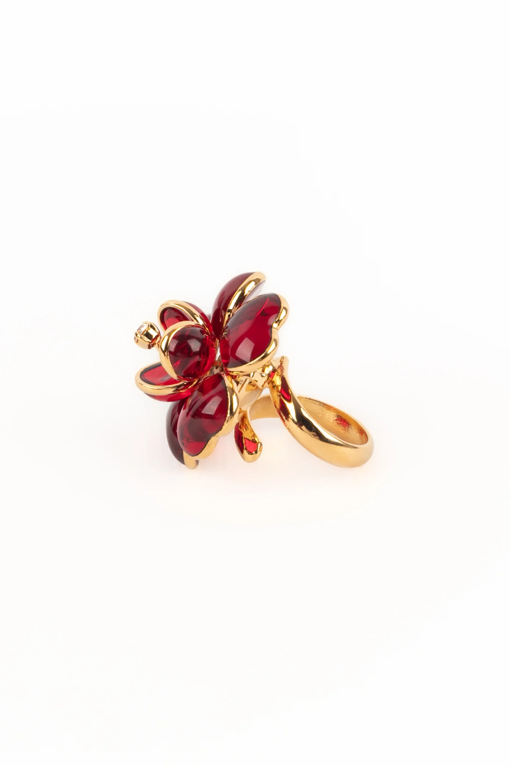 AUGUSTINE -(Made in France) Bague en métal doré et pâte de verre rouge. Taille ajustable.