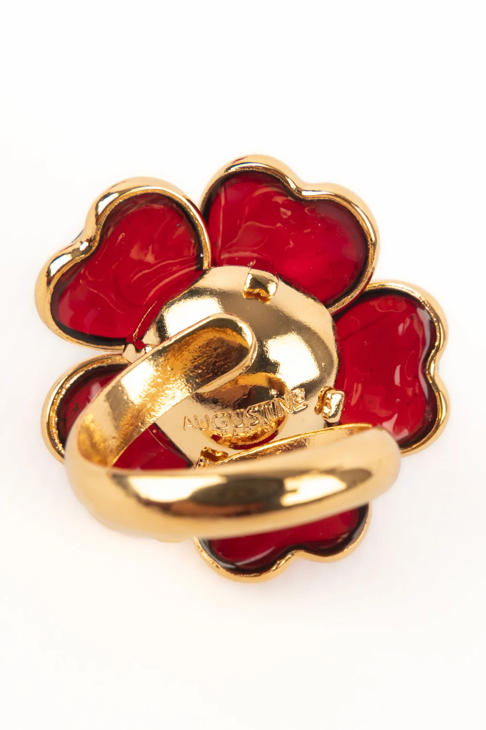 AUGUSTINE -(Made in France) Bague en métal doré et pâte de verre rouge. Taille ajustable. Condition : Très bon état Dimensions : Taille 54