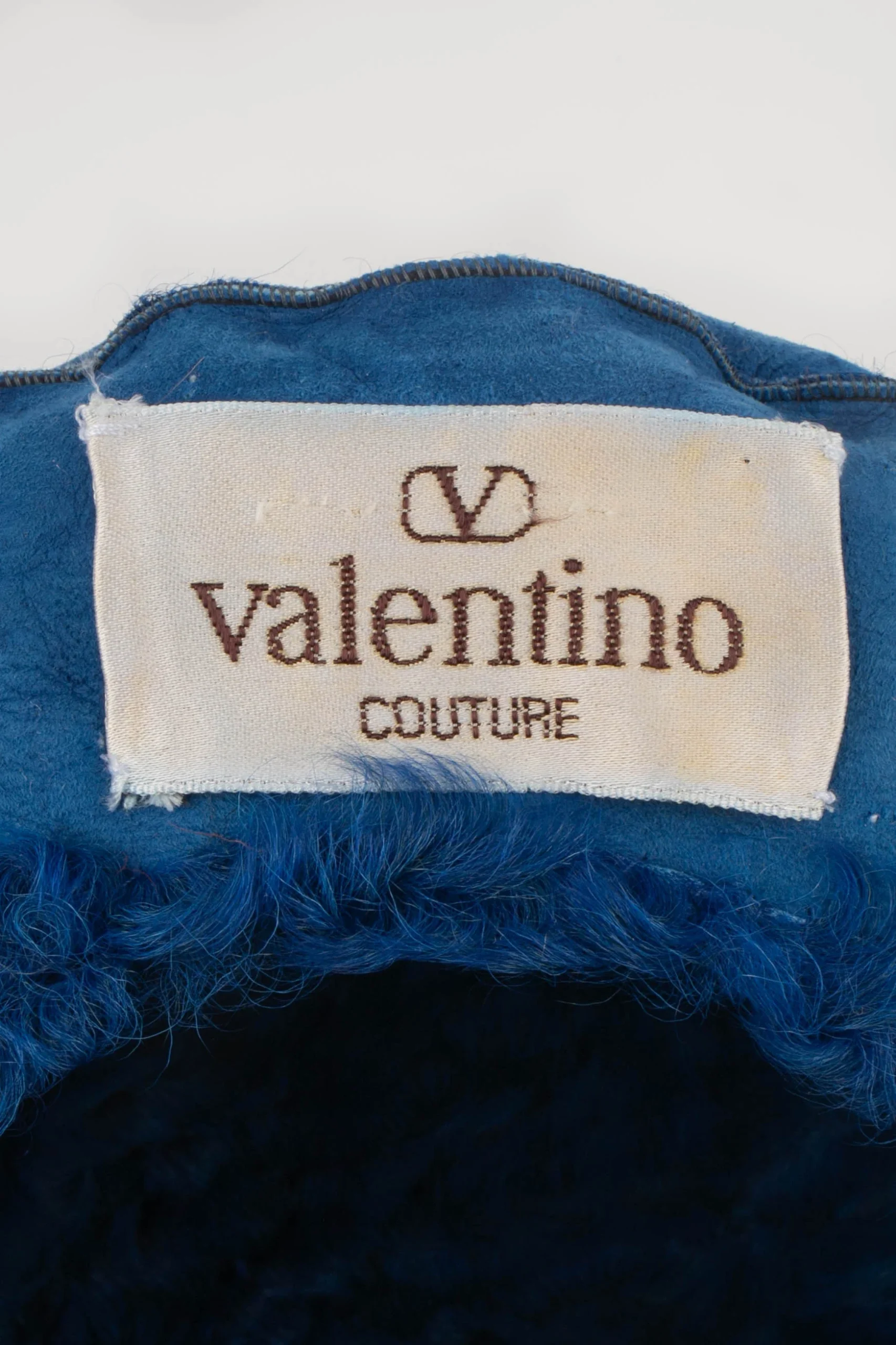 VALENTINO -Beret en astrakan bleu. Collection Couture