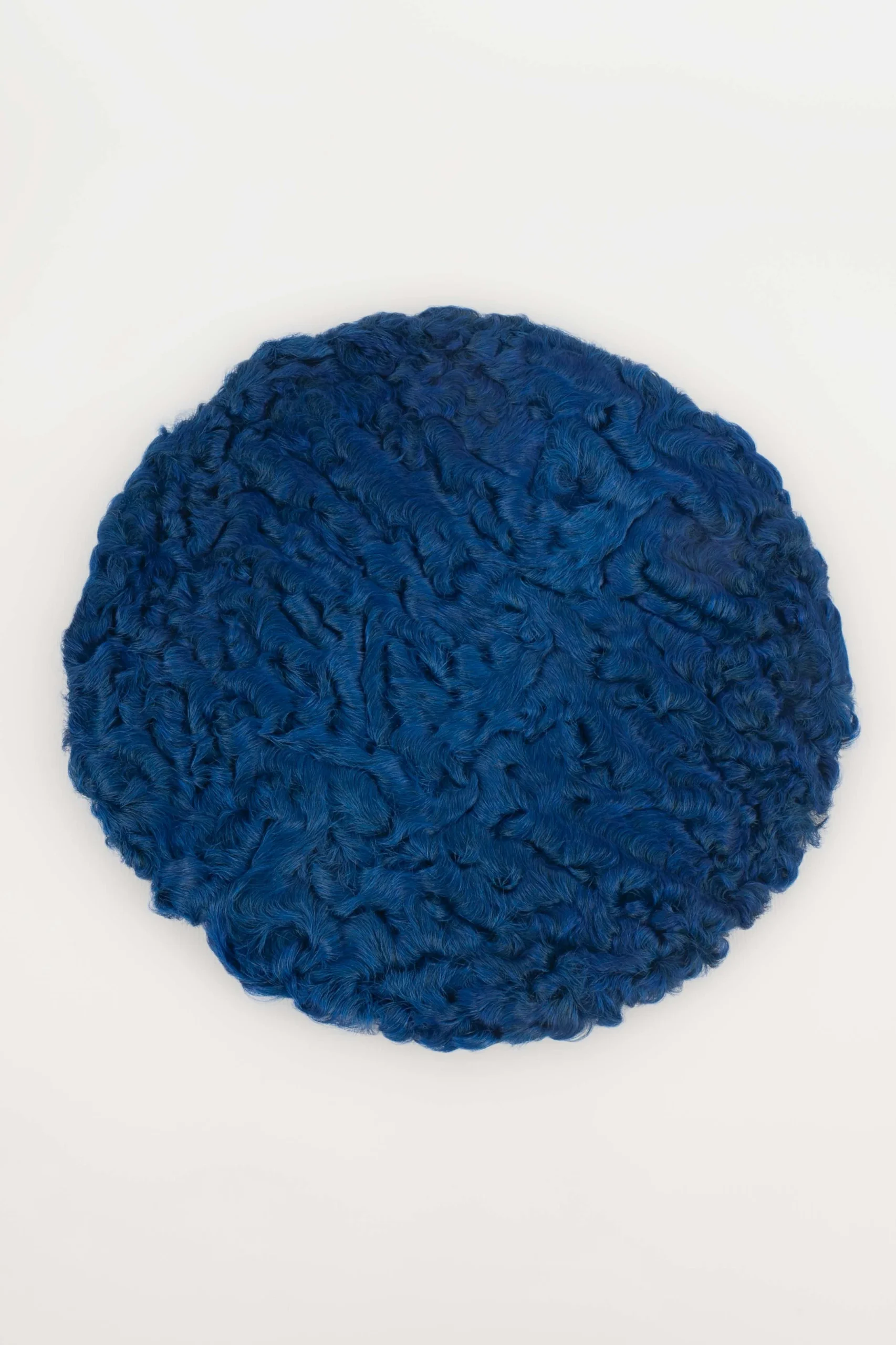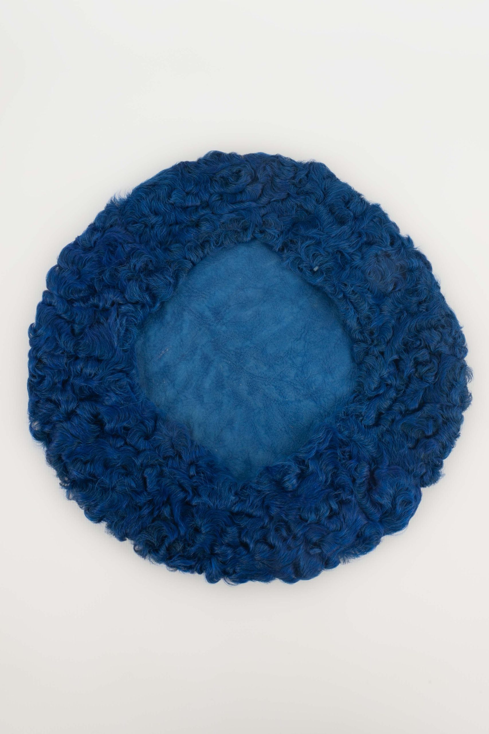 VALENTINO -Beret en astrakan bleu. Collection Couture Condition : Très bon état Dimensions : Circonférence : 55 cm