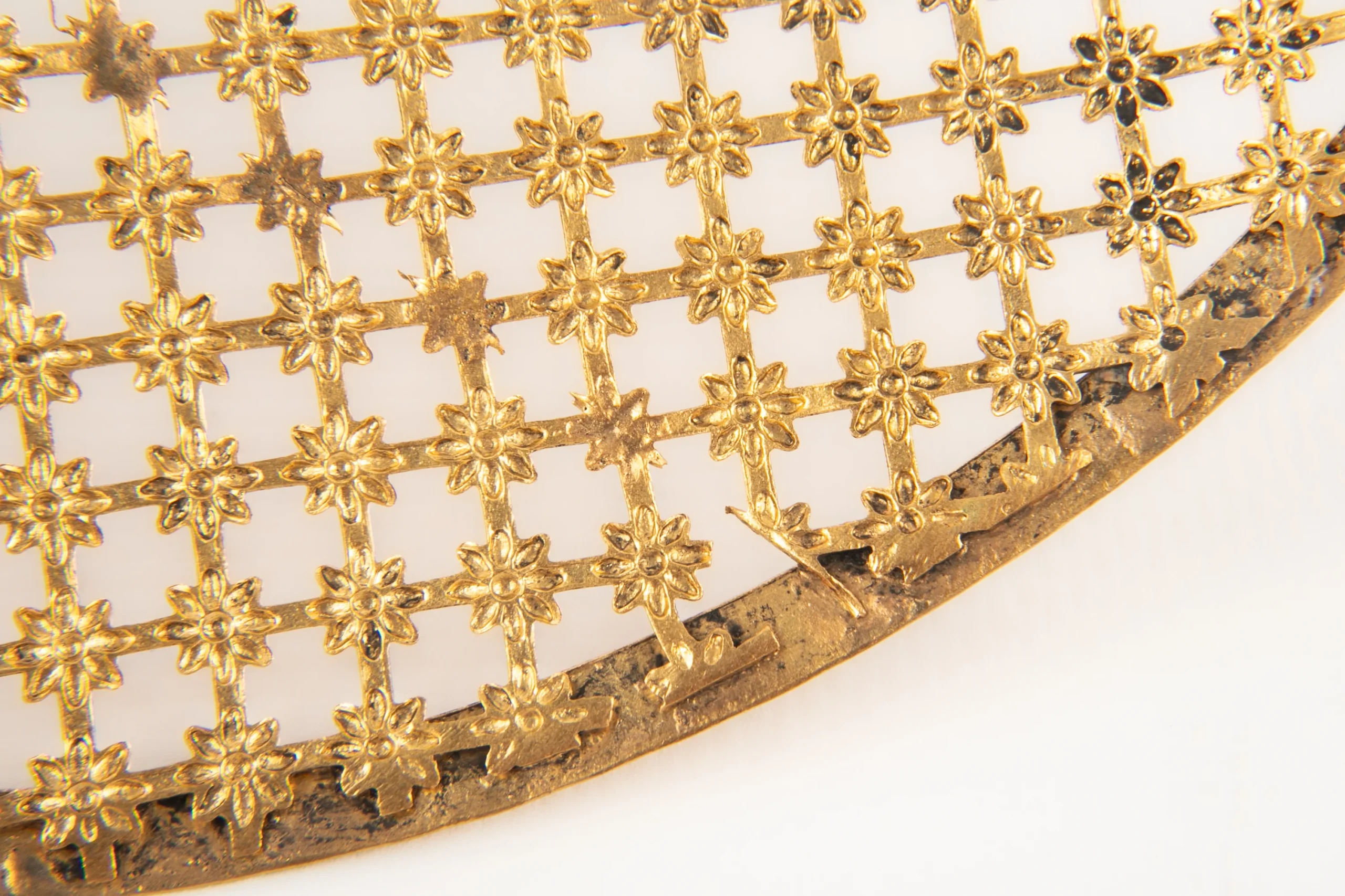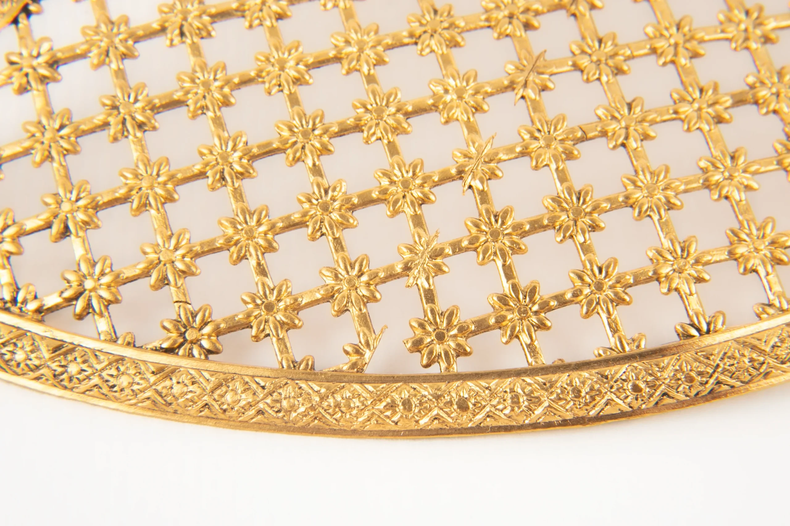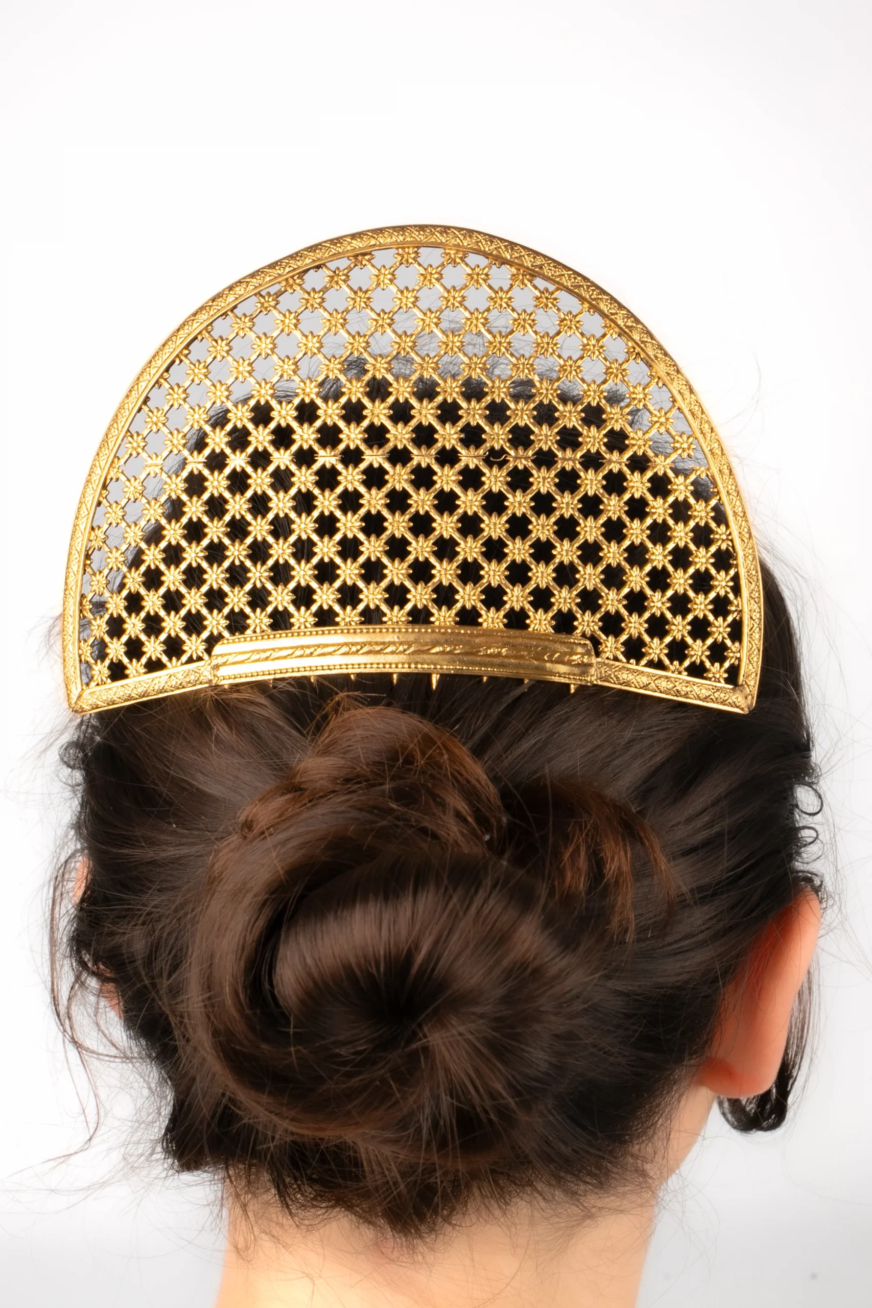 THÉÂTRE -Bijou de cheveux façon peigne. Création de théâtre en métal doré ajouré.