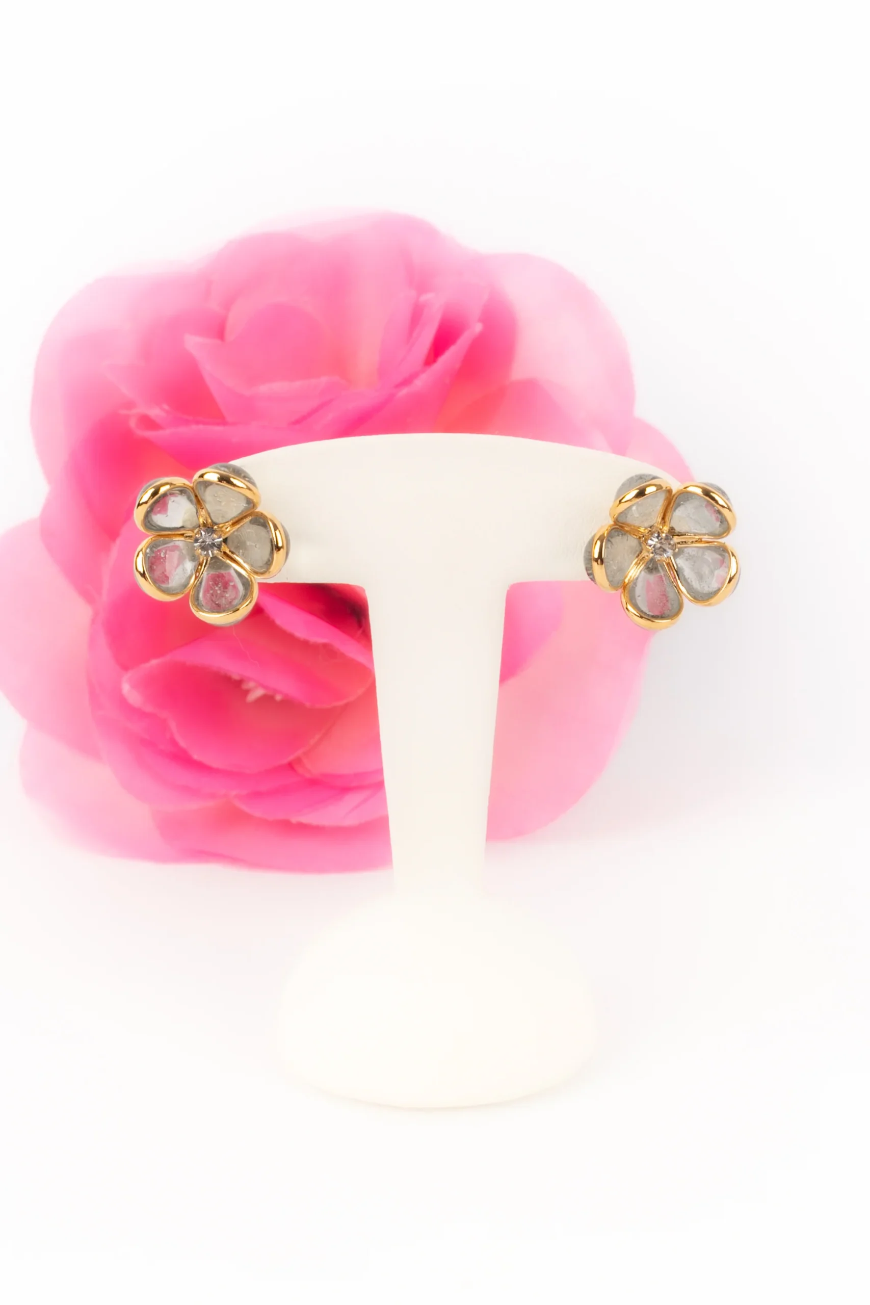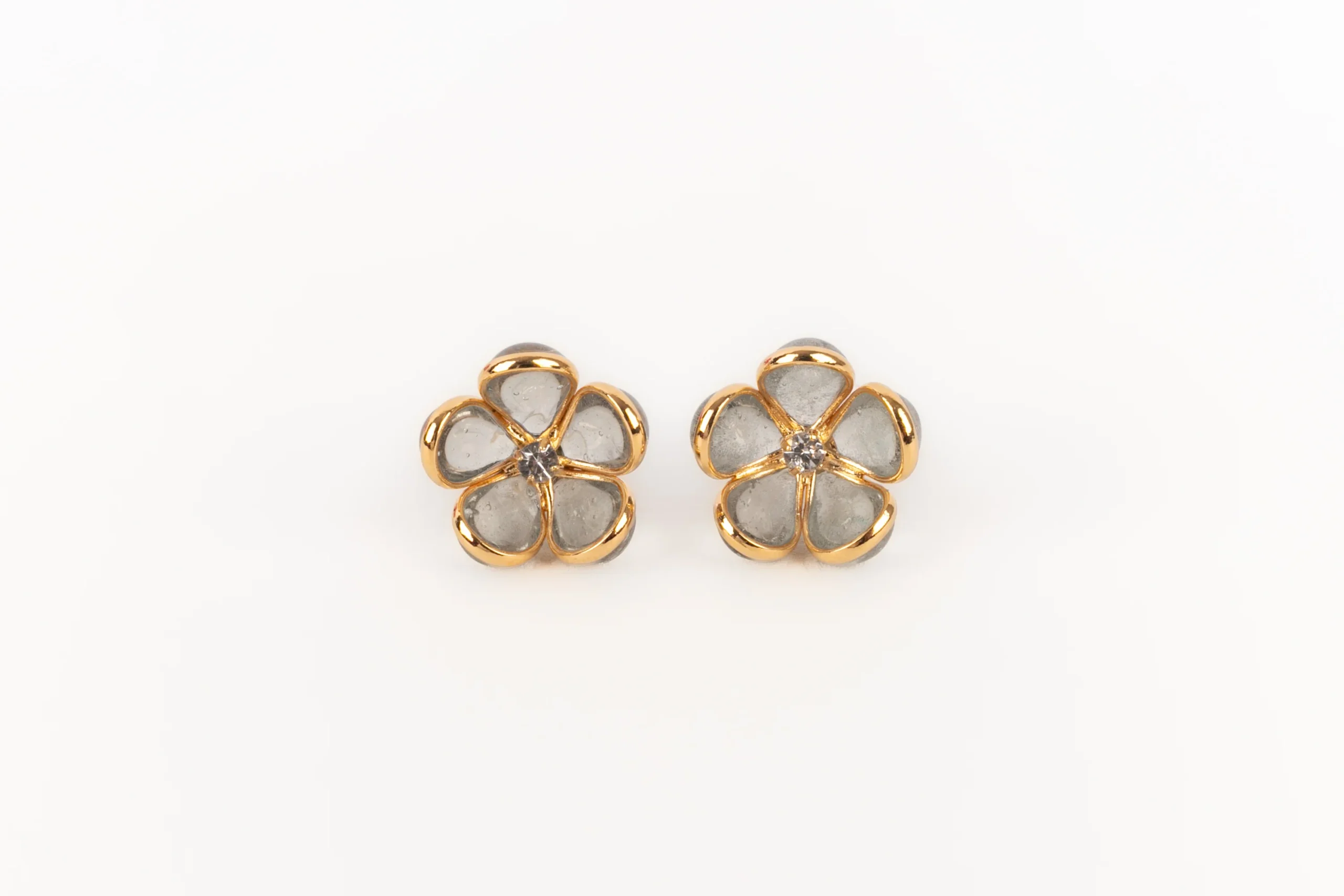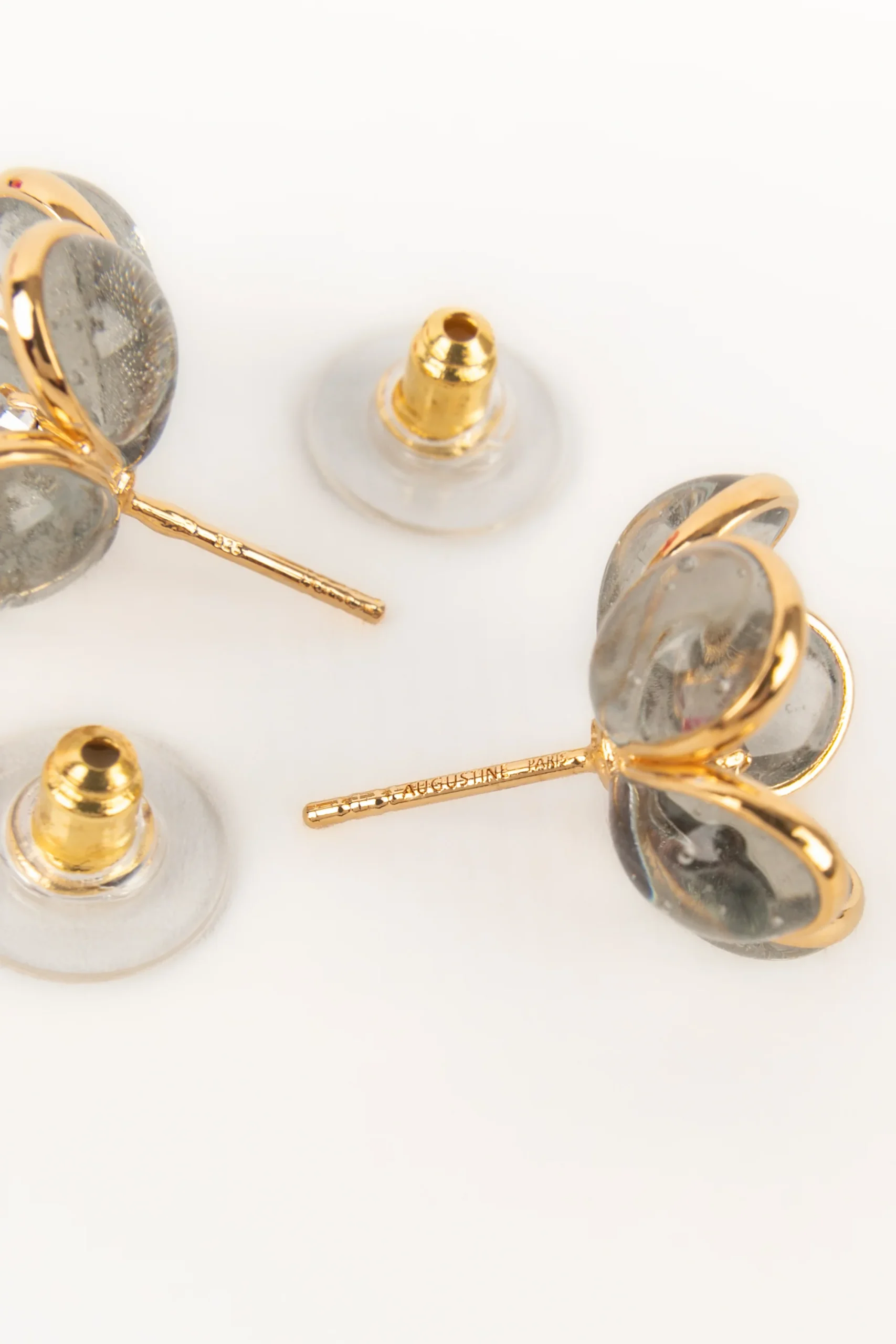 AUGUSTINE -(Made in France) Boucles d’oreilles en métal doré, strass et pâte de verre transparente. Condition : Très bon état Dimensions : Hauteur : 1,8 cm