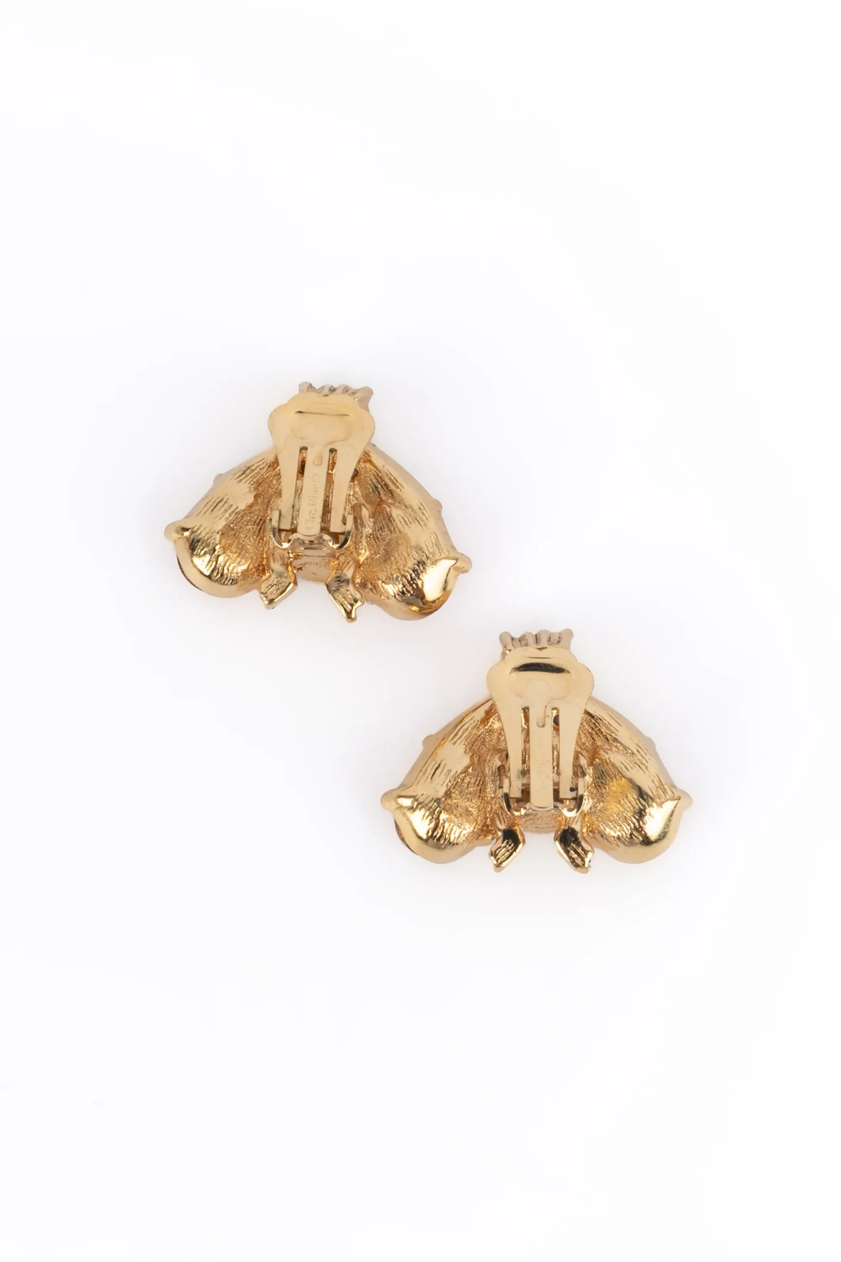 DIOR – Boucles d’oreilles clips en métal doré figurant des abeilles pavées de strass. Bijou datant du début des années 1990 sous la direction artistique de Gianfranco Ferré.