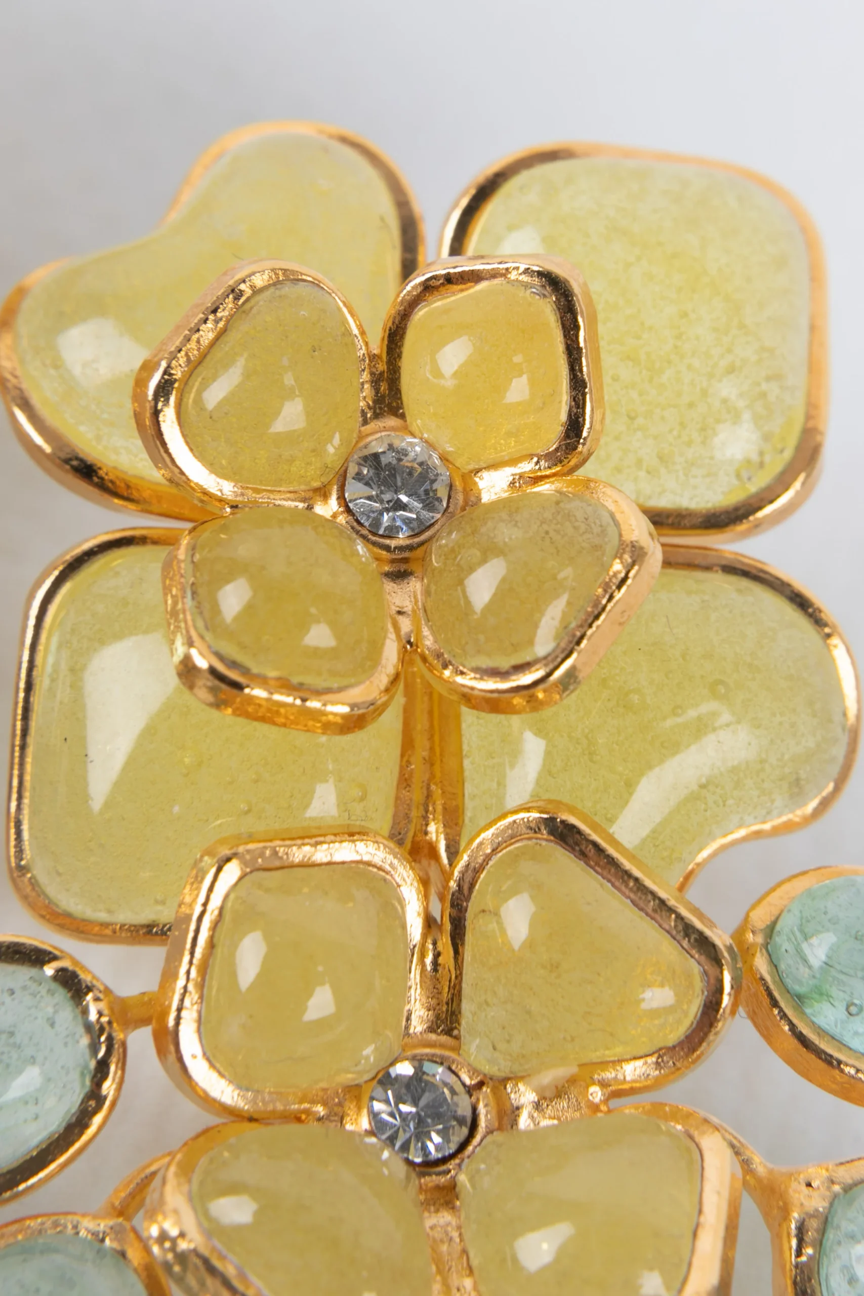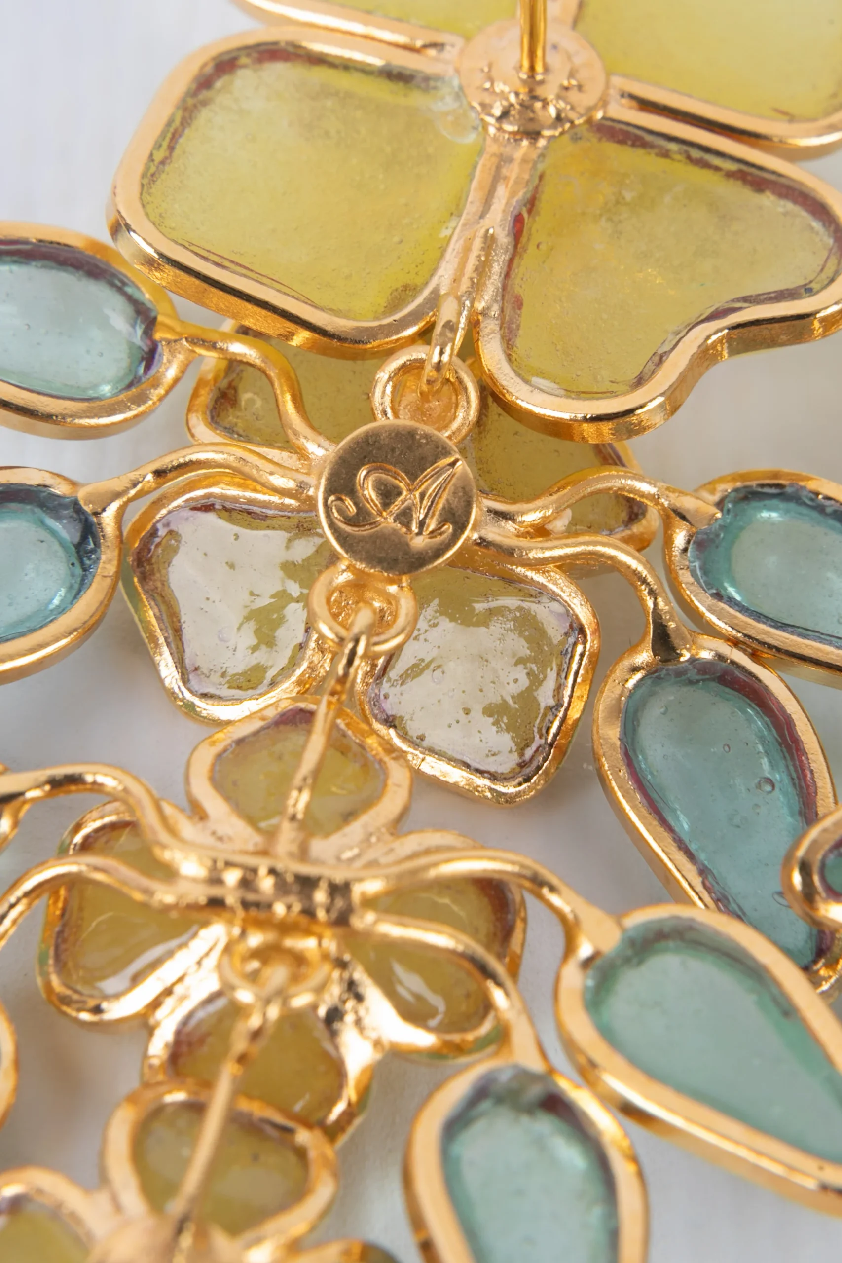 AUGUSTINE – Boucles d’oreilles en métal doré et pâte de verre jaune.