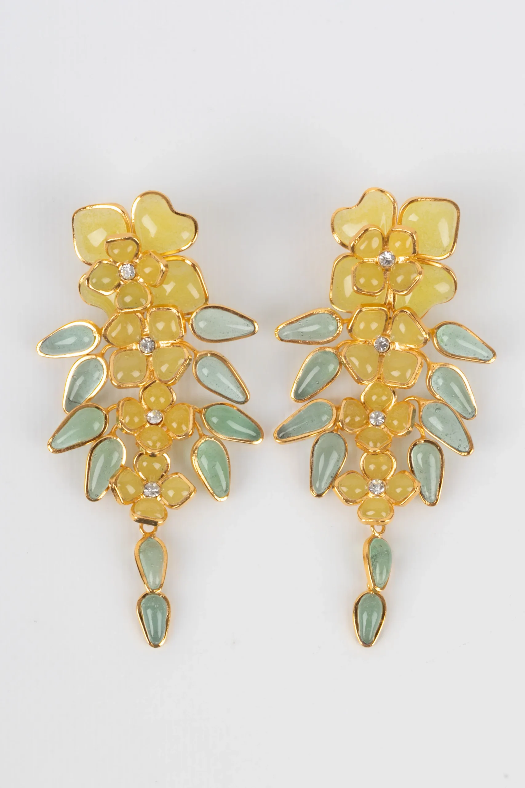 AUGUSTINE – Boucles d’oreilles en métal doré et pâte de verre jaune. Condition : Très bon état Dimensions : Longueur : 9 cm
