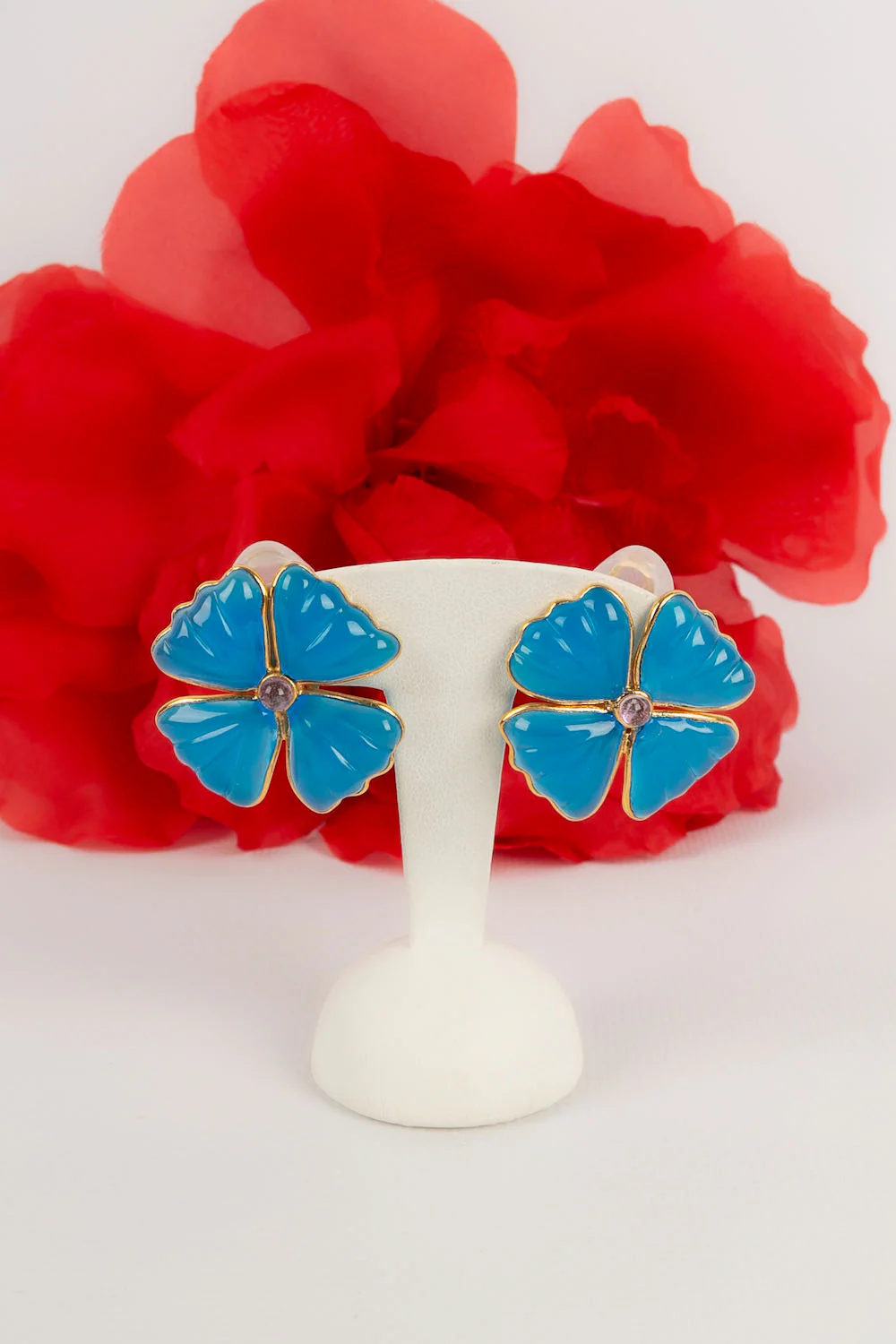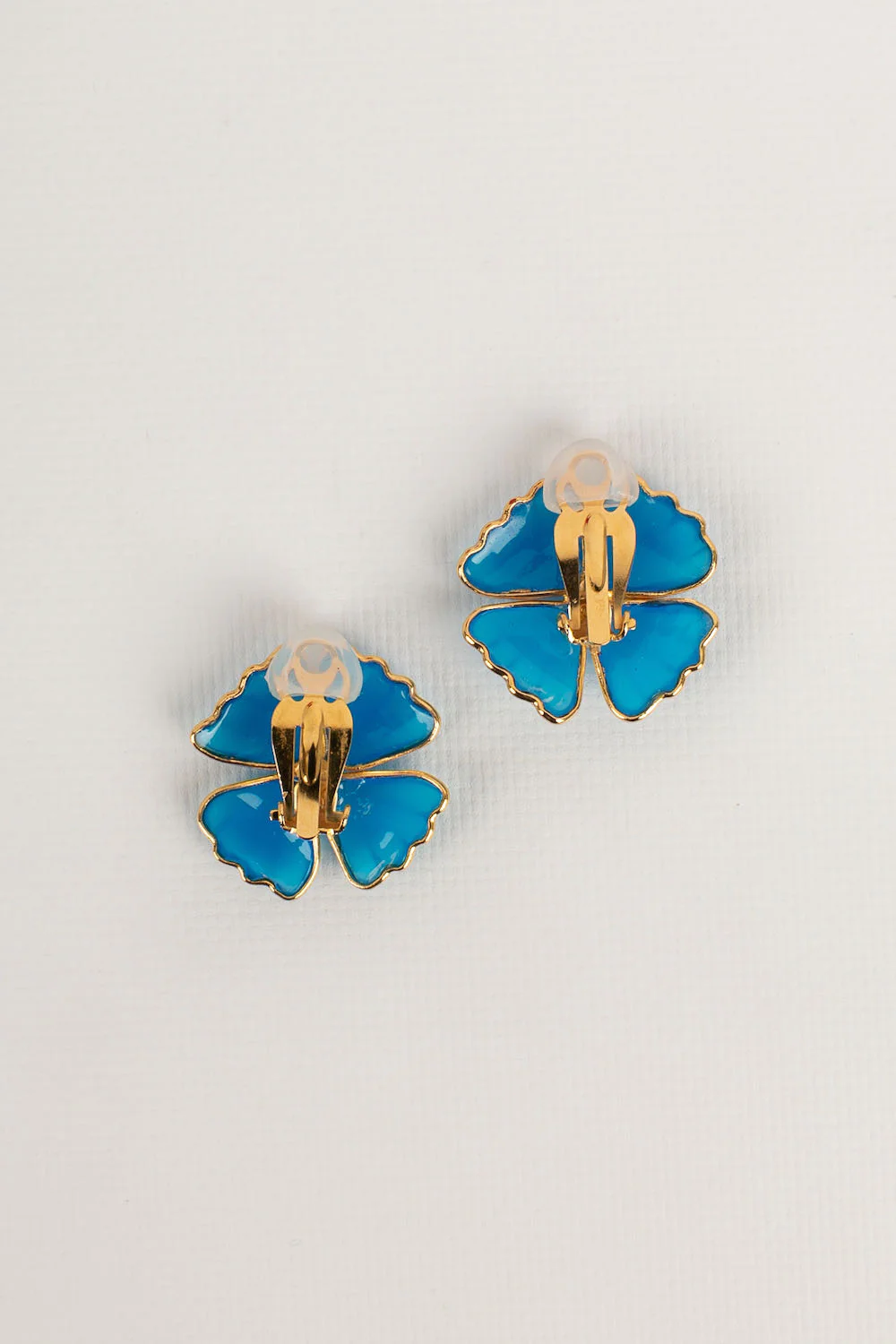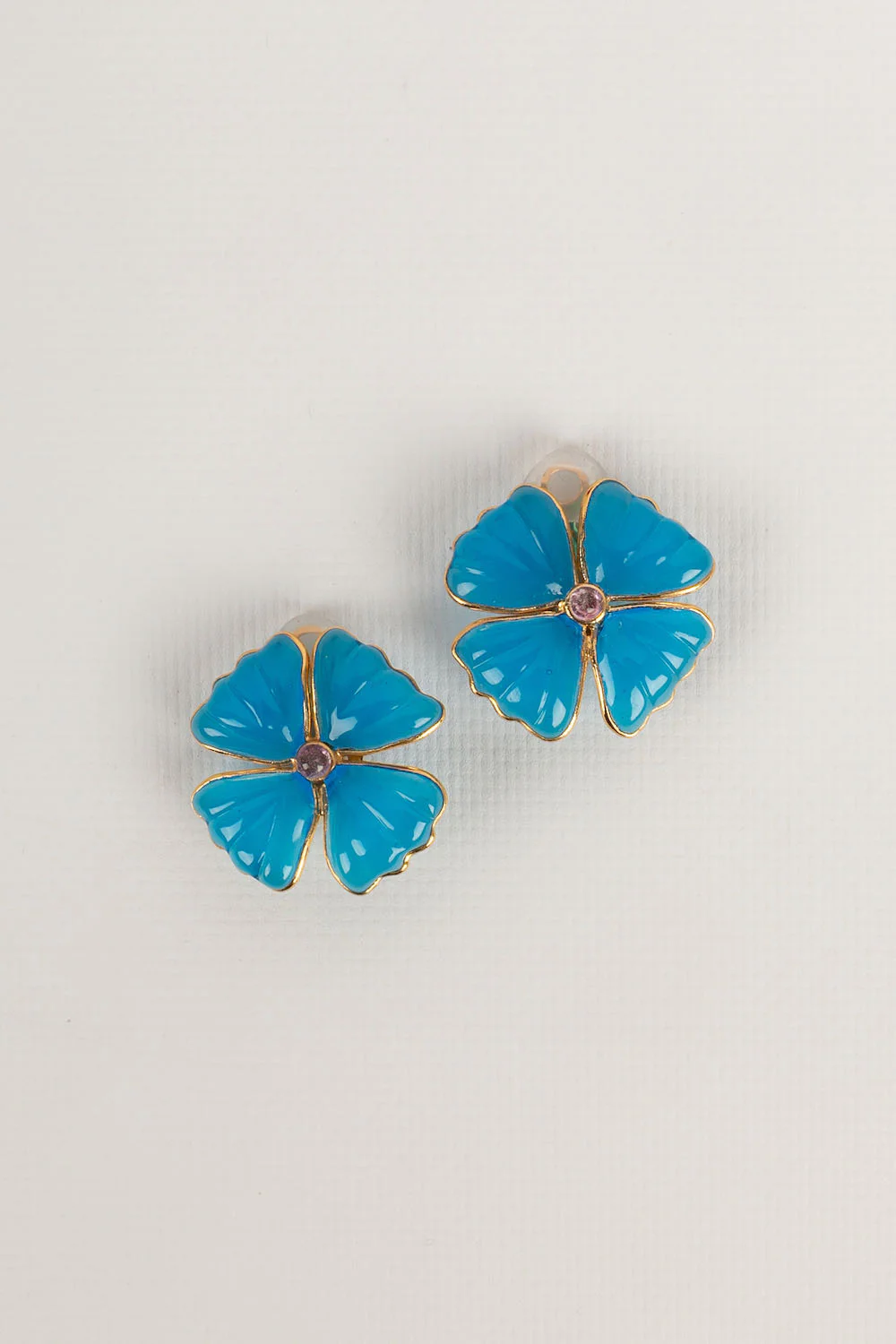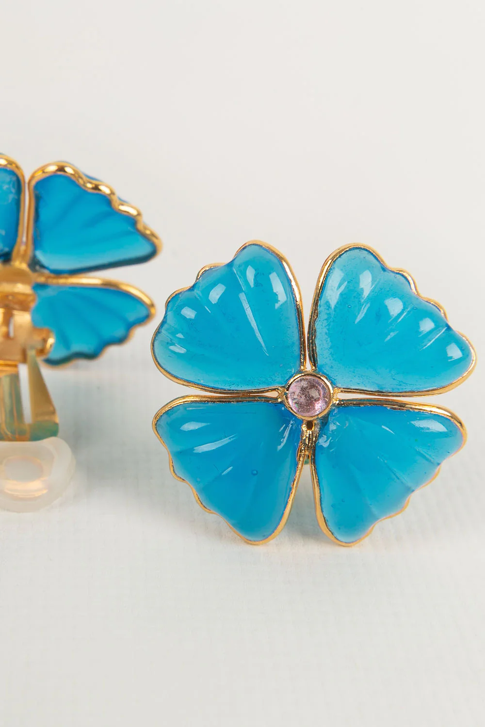 AUGUSTINE -(Made in France) Boucles d’oreilles clips en métal doré et pâte de verre.