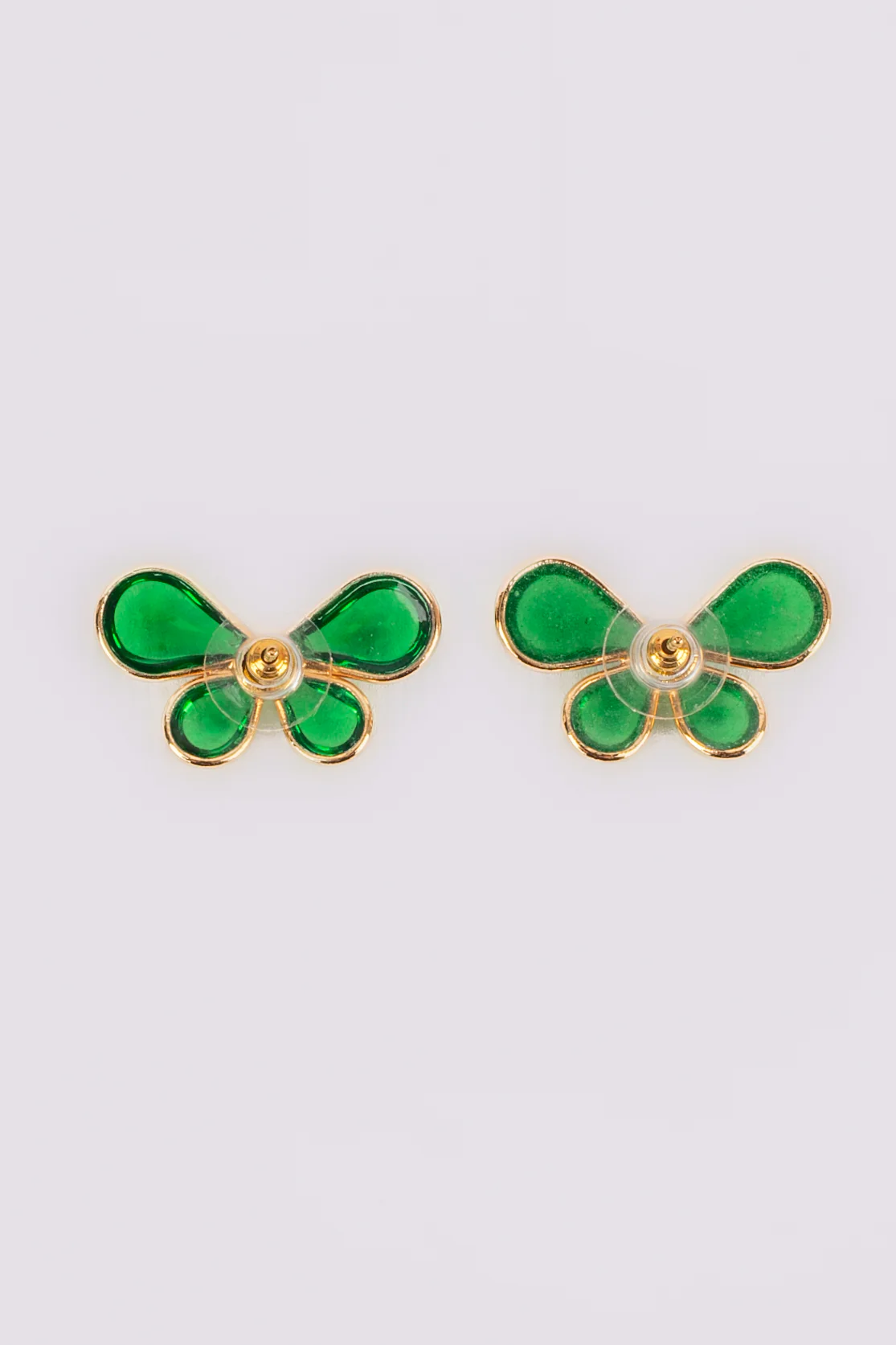 AUGUSTINE -(Made in France) Boucles d’oreilles papillon en métal doré et pâte de verre verte foncée. Condition : Très bon état Dimensions : Hauteur : 1,7 cm