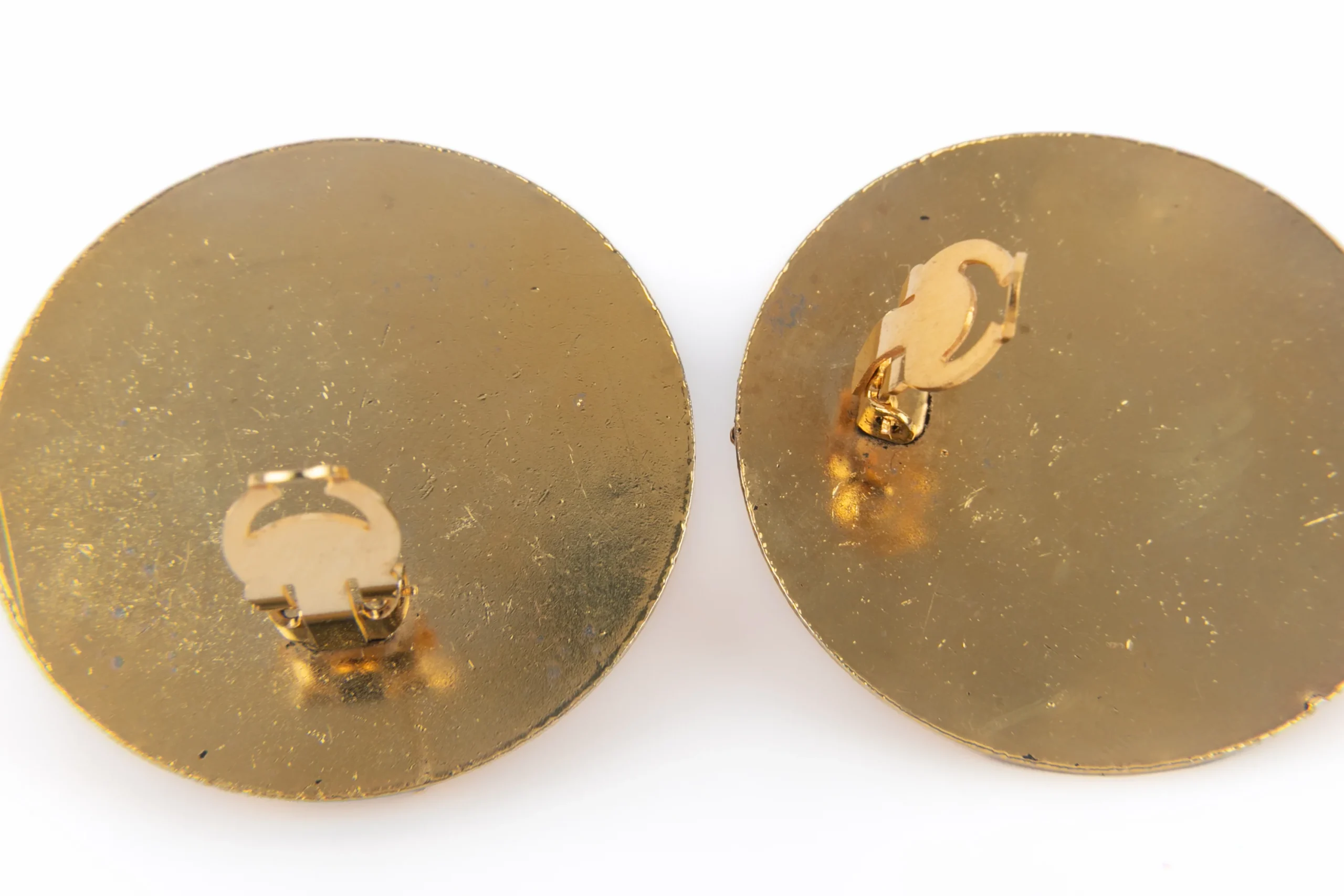 CHANEL – (Made in France) Boucles d’oreilles clips, rondes figurant une tête de lion en métal doré. Bijou non signé. Collection Chanel Haute Couture circa 1980. Condition : Très bon état Dimensions : Diamètre : 4,5 cm