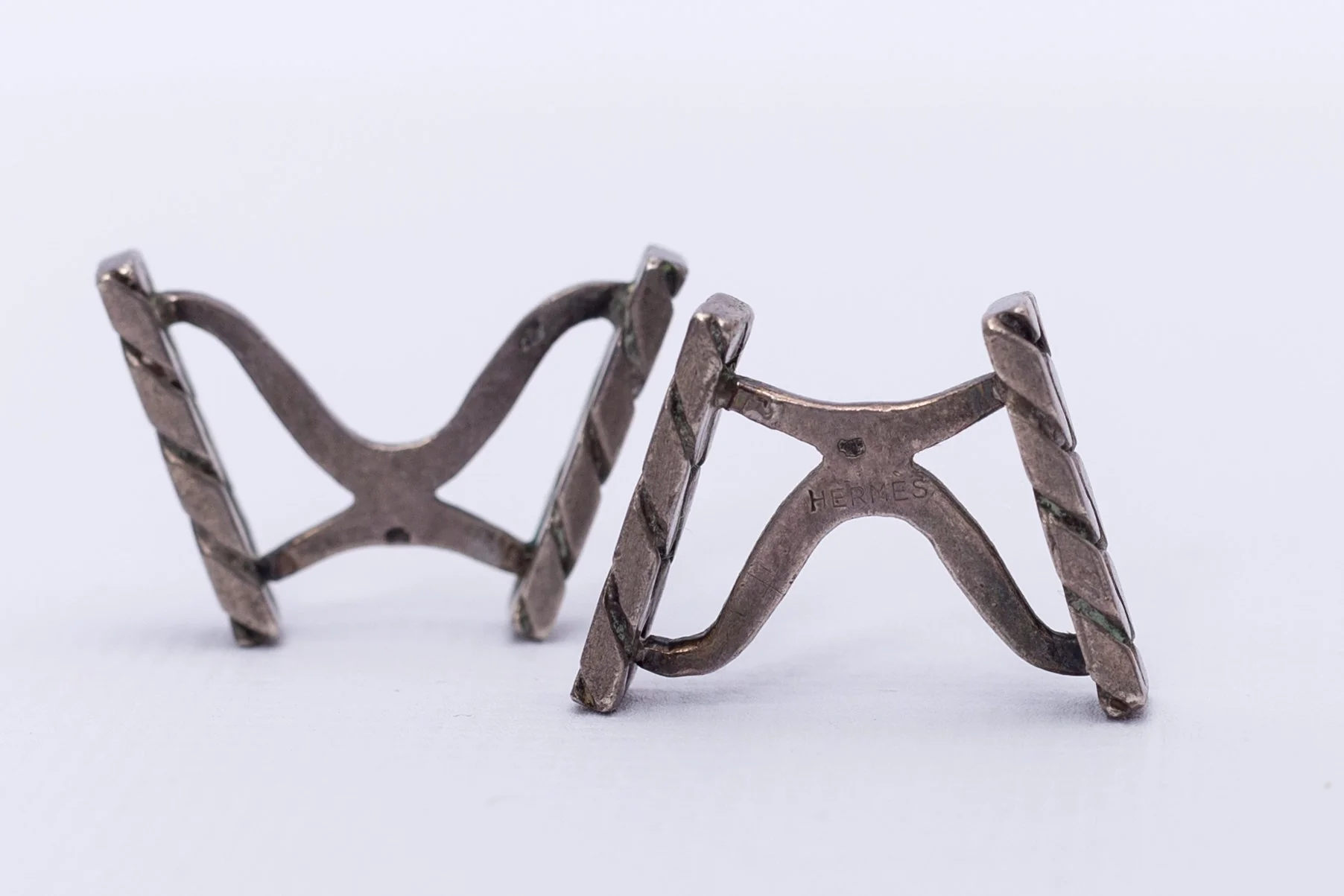 HERMÈS -Made in France) Boutons de manchette en argent.