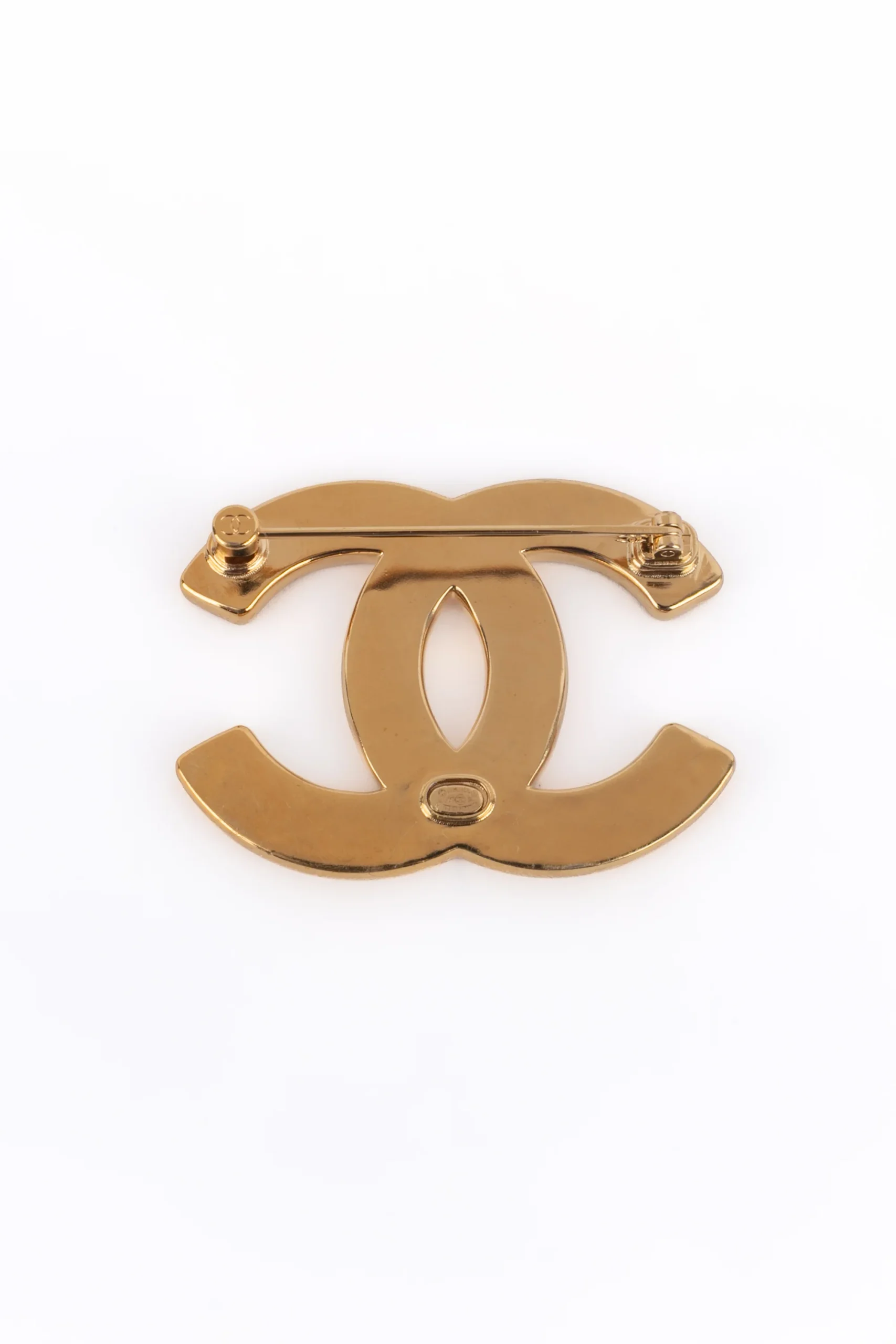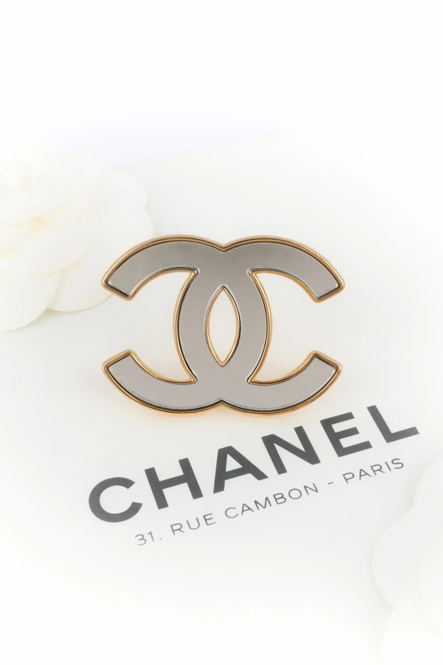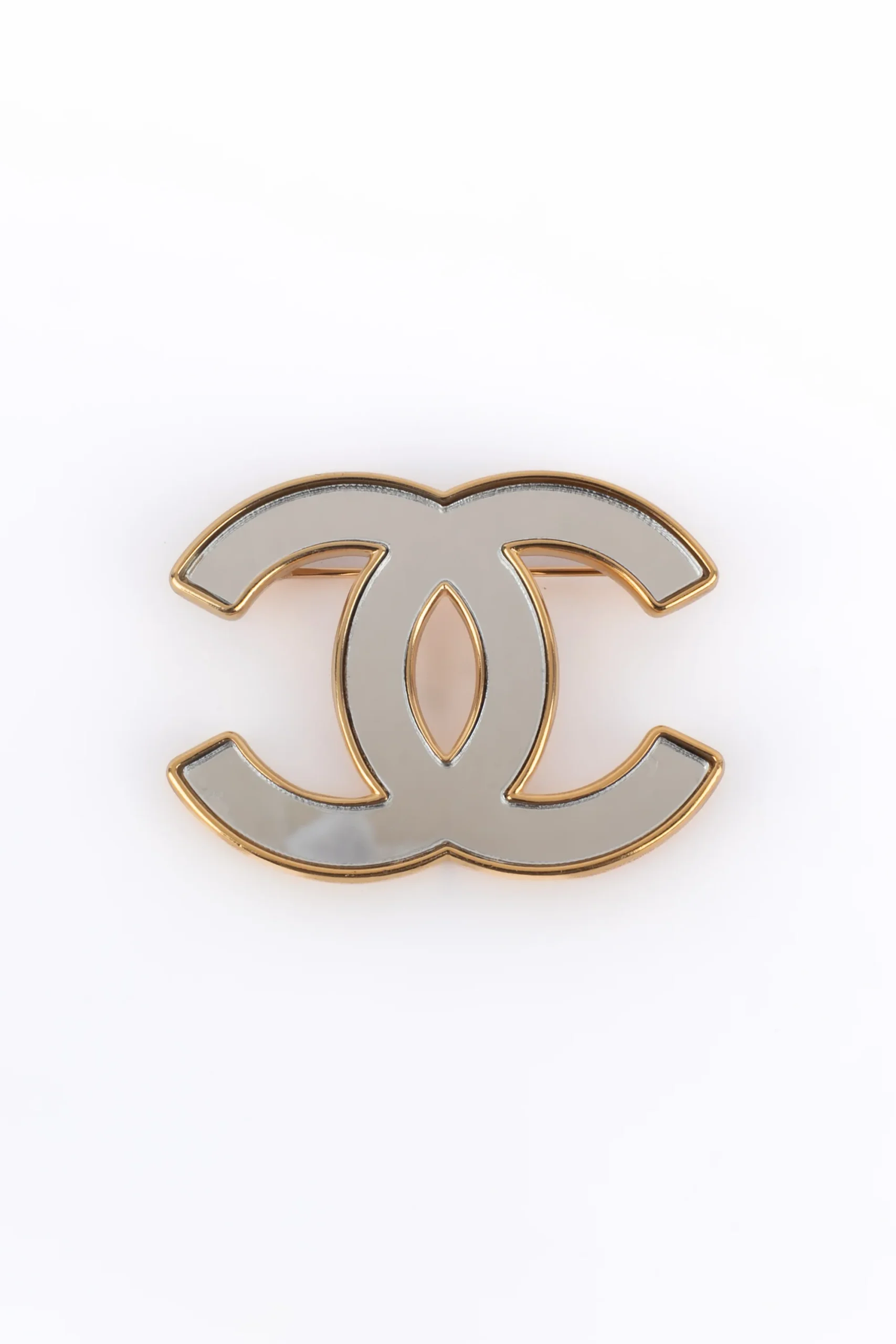 CHANEL – (Made in France) Broche cc en métal doré à effet miroir. Collection 2024 sous la direction artistique de Virginie Viard.