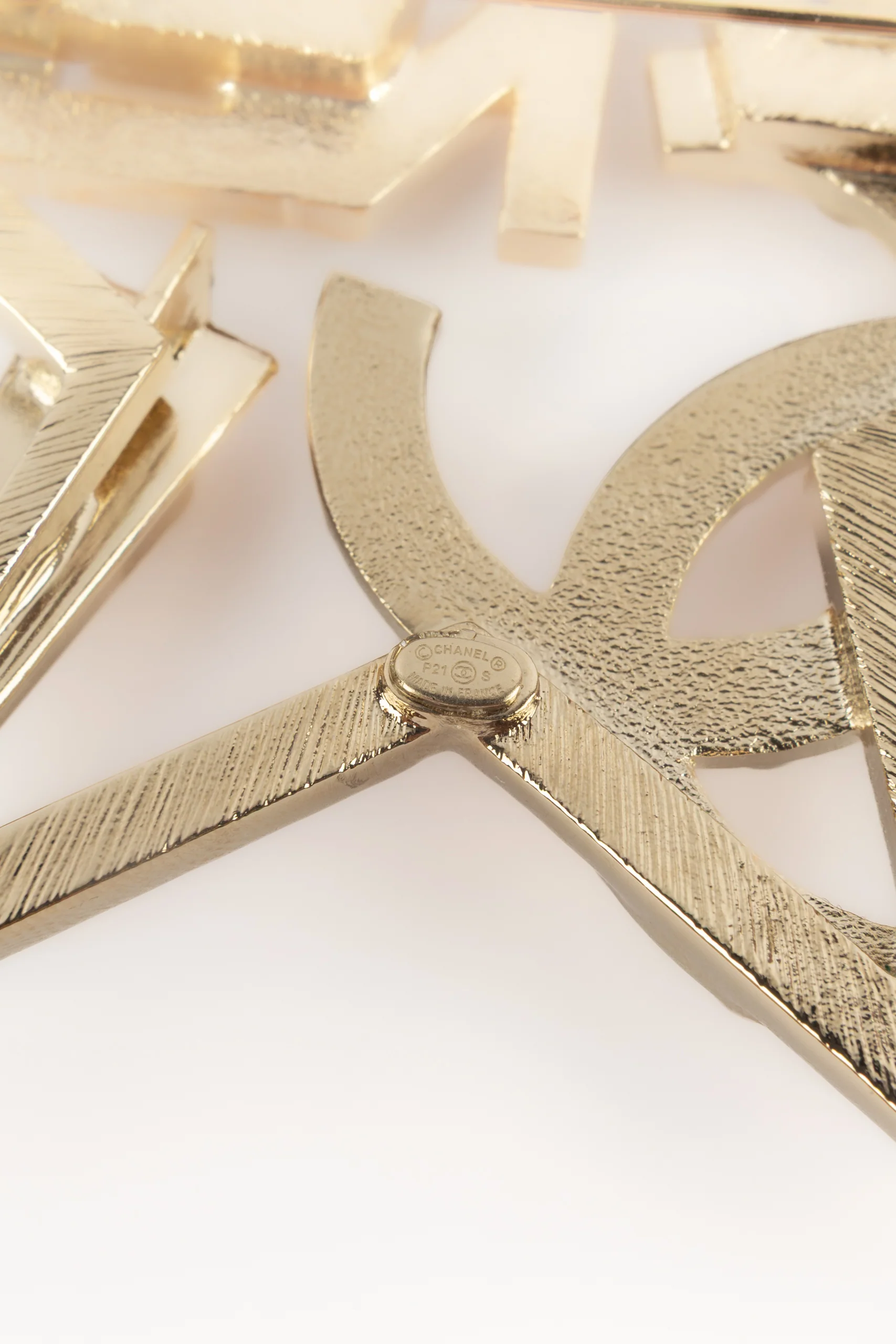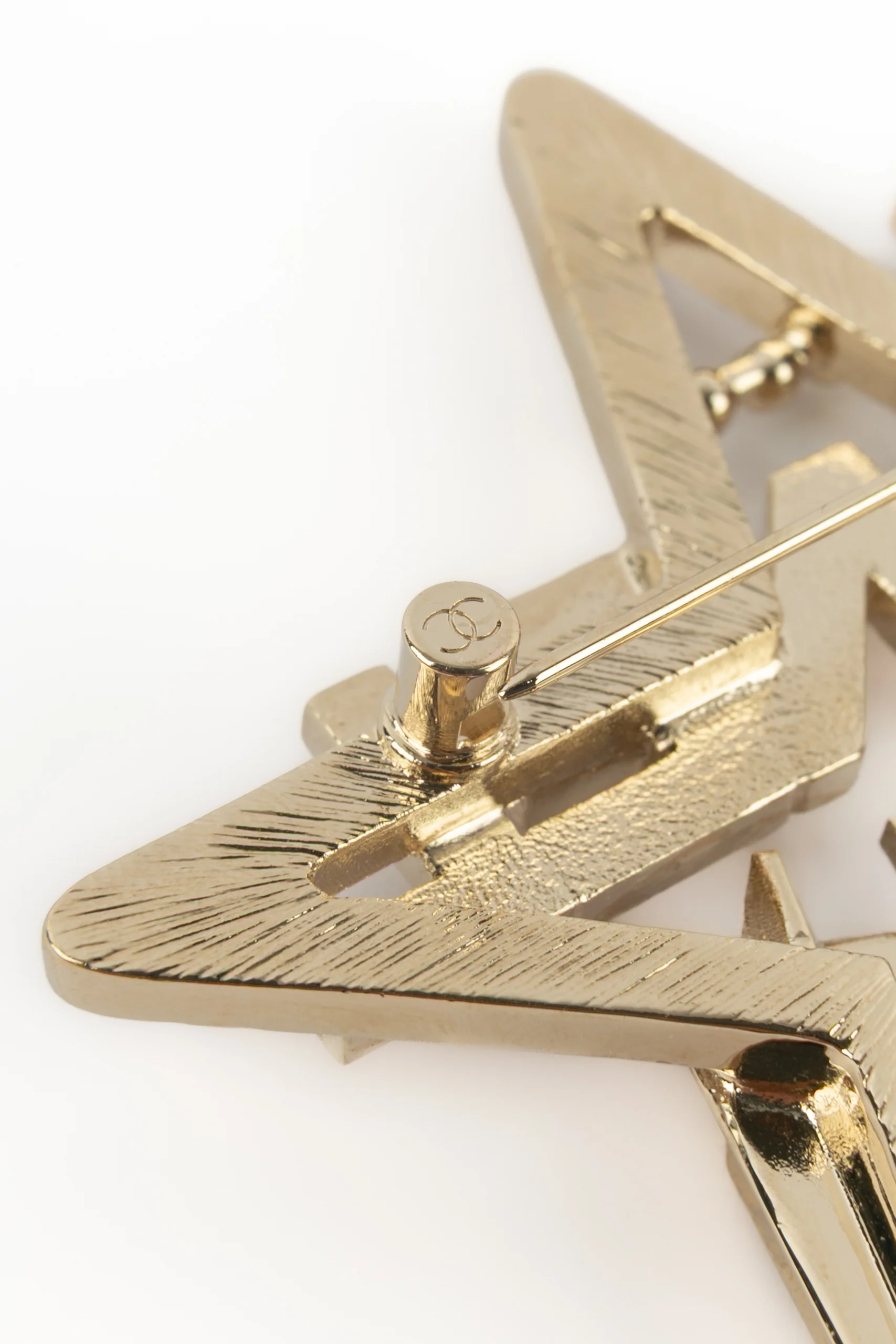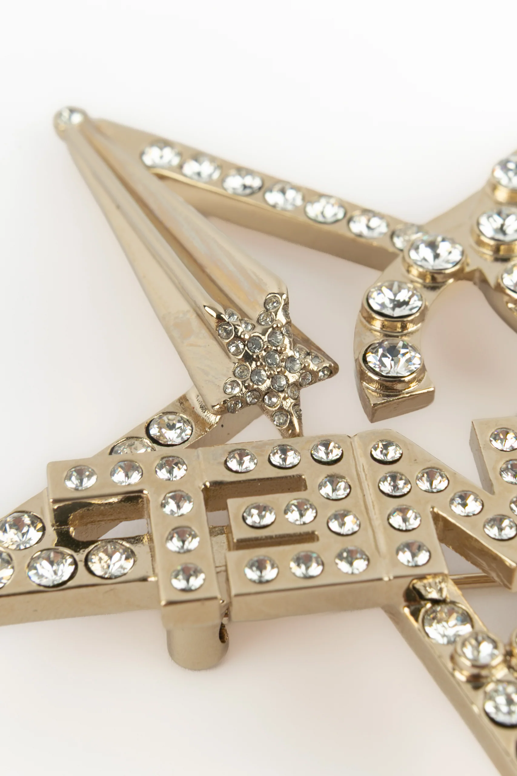 CHANEL – (Made in France) Broche étoile en métal champagne pavée de strass. Collection 2021.
