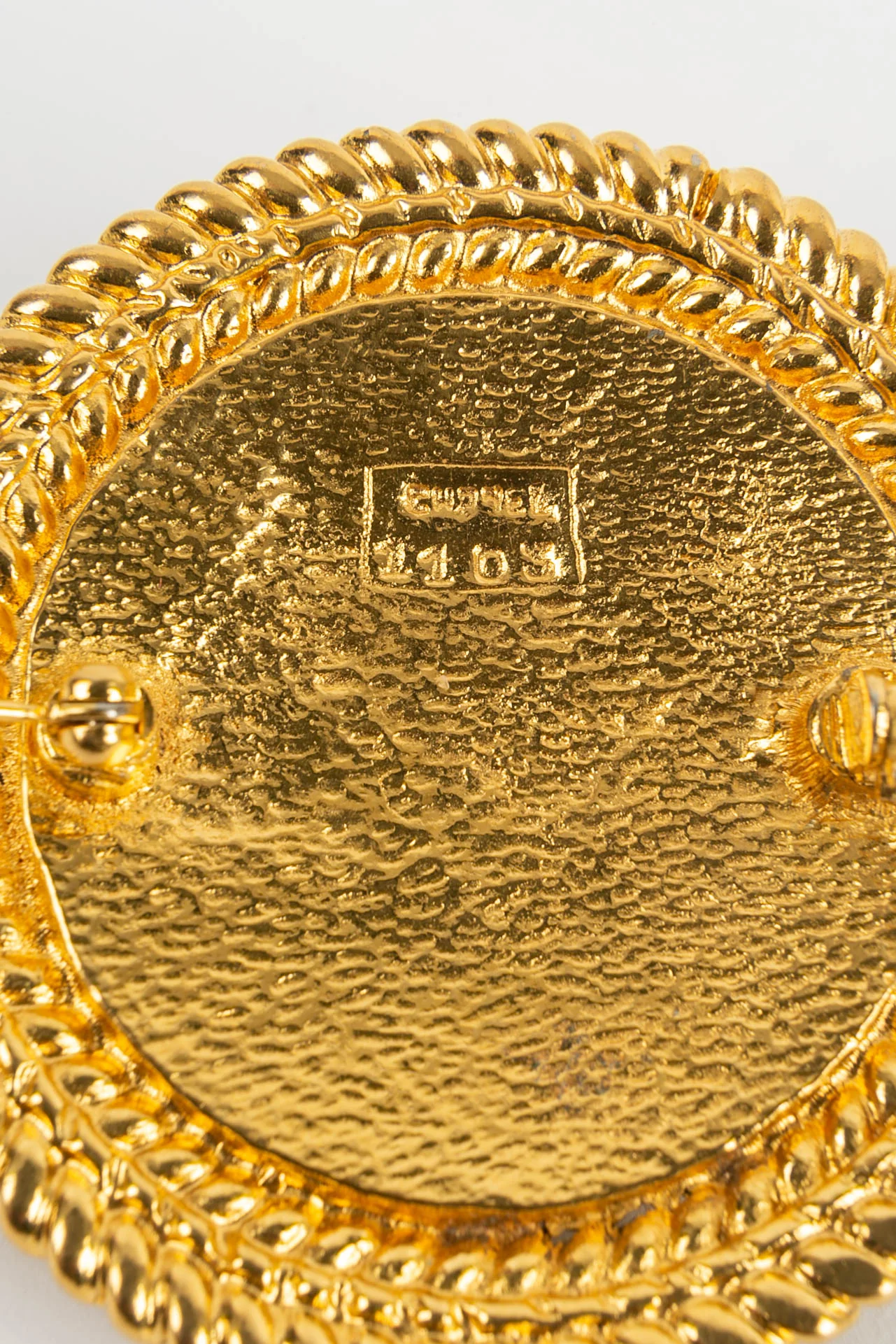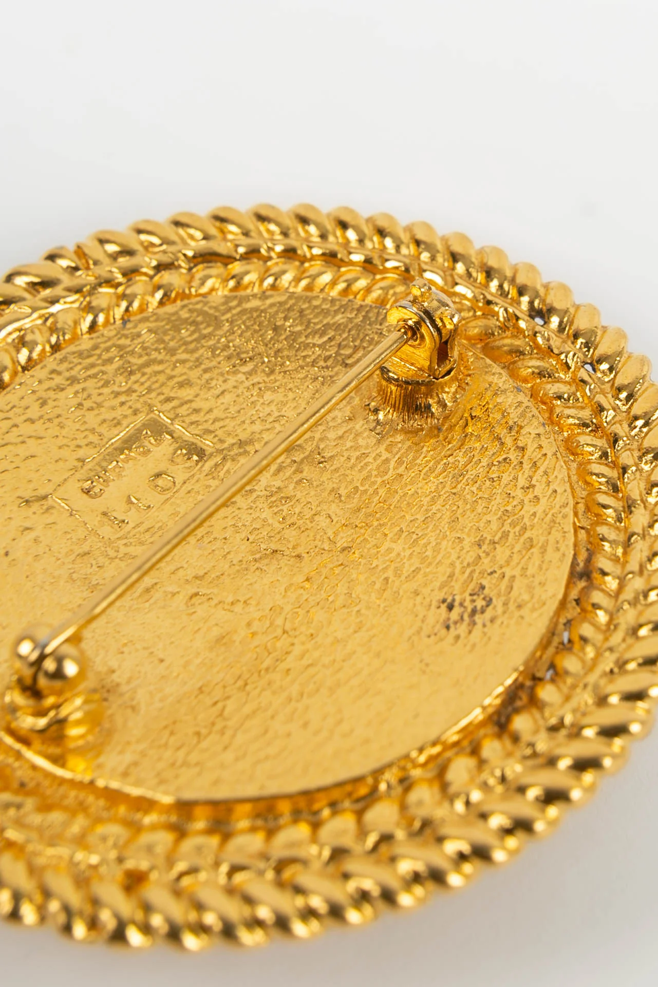 CHANEL -Broche en métal doré et pâte de verre colorée.