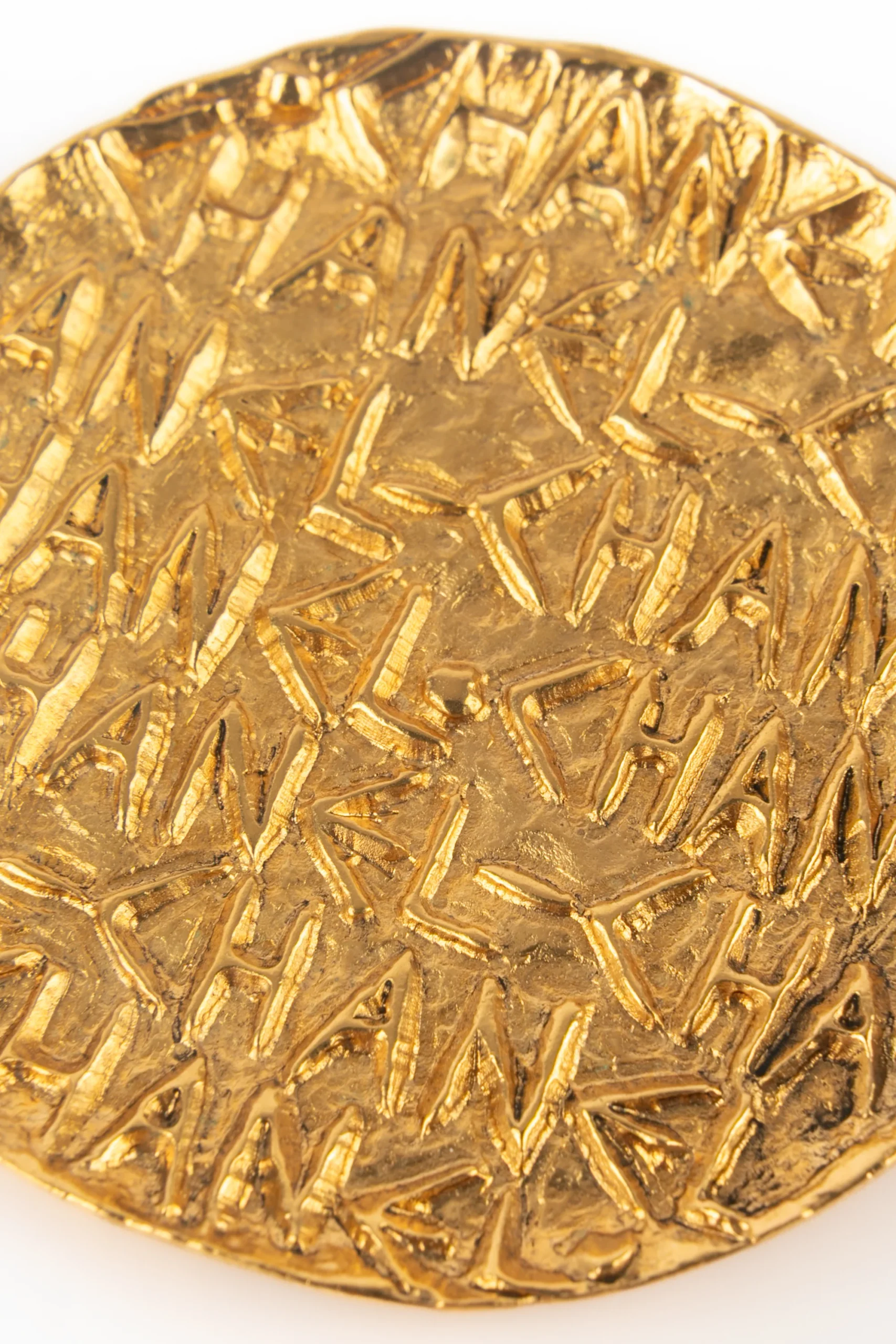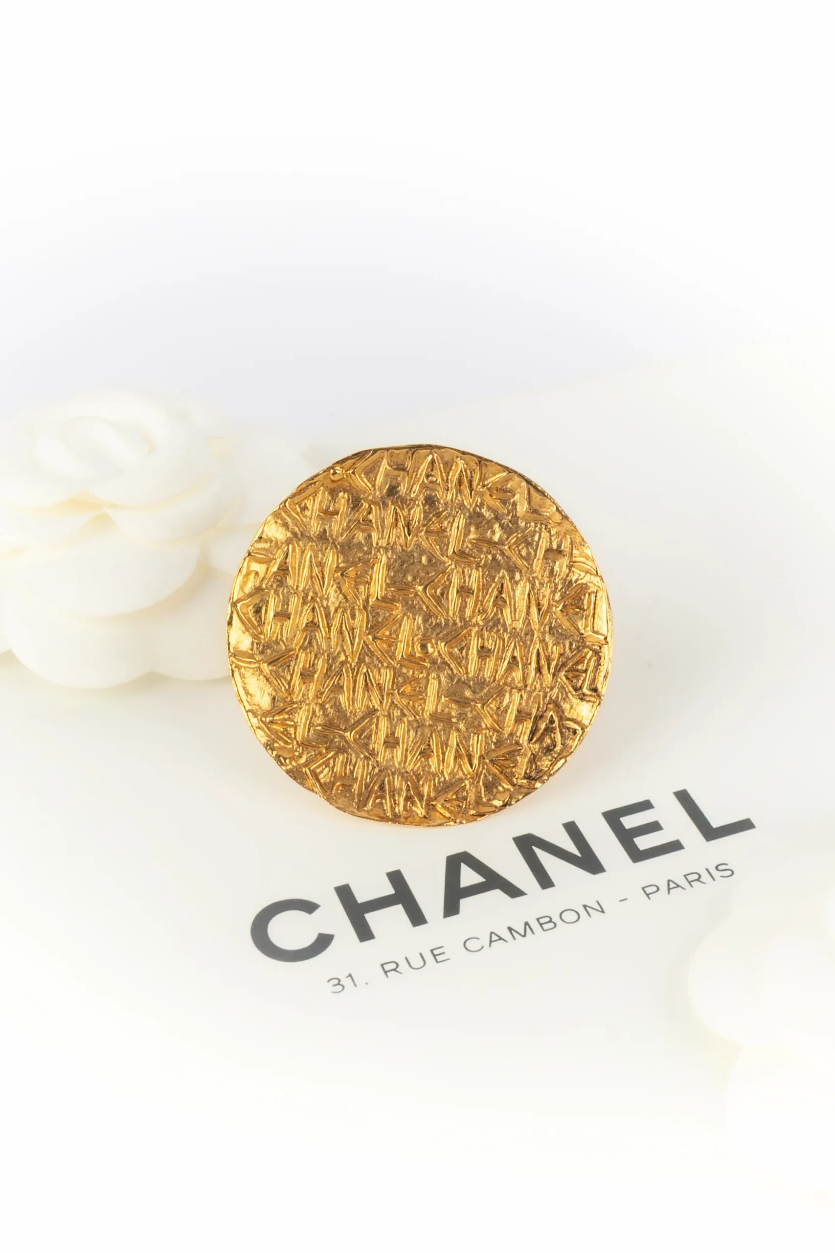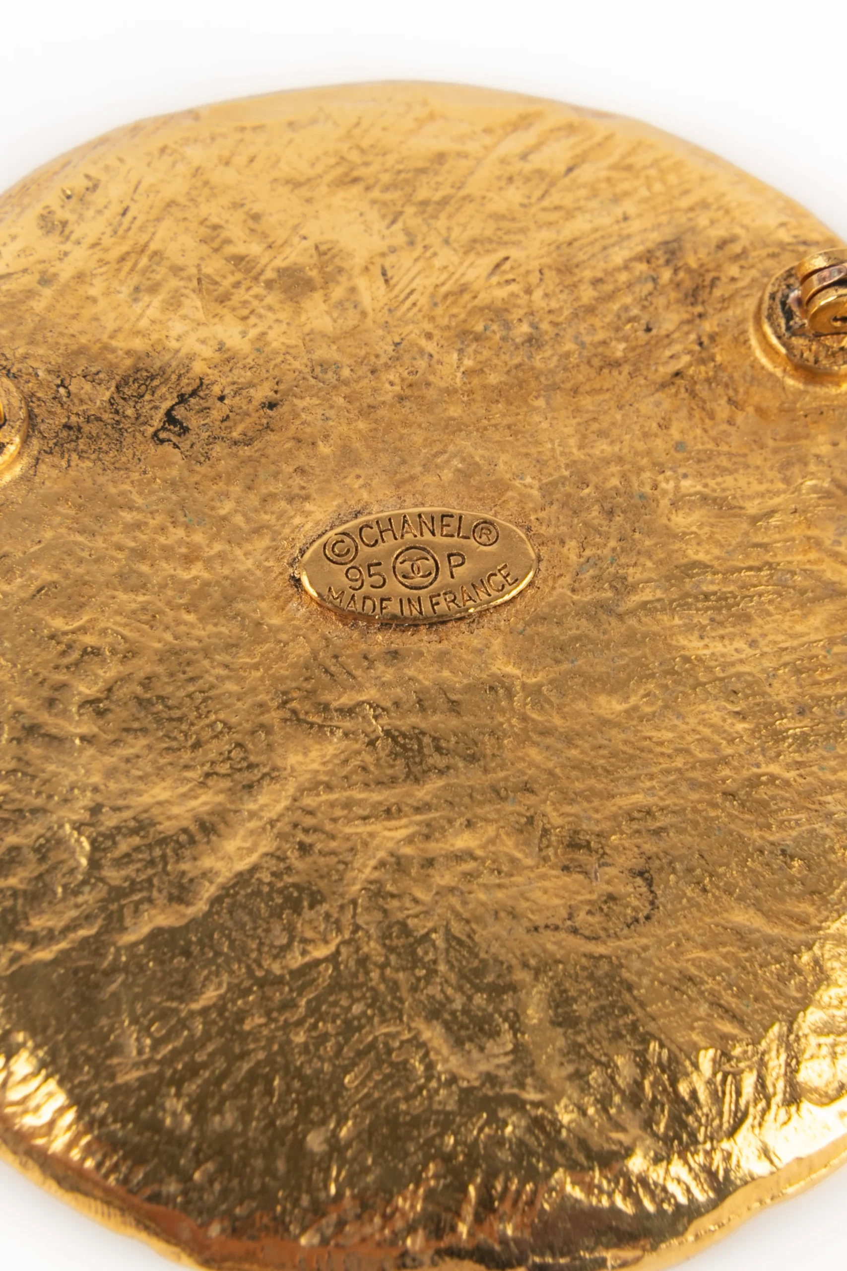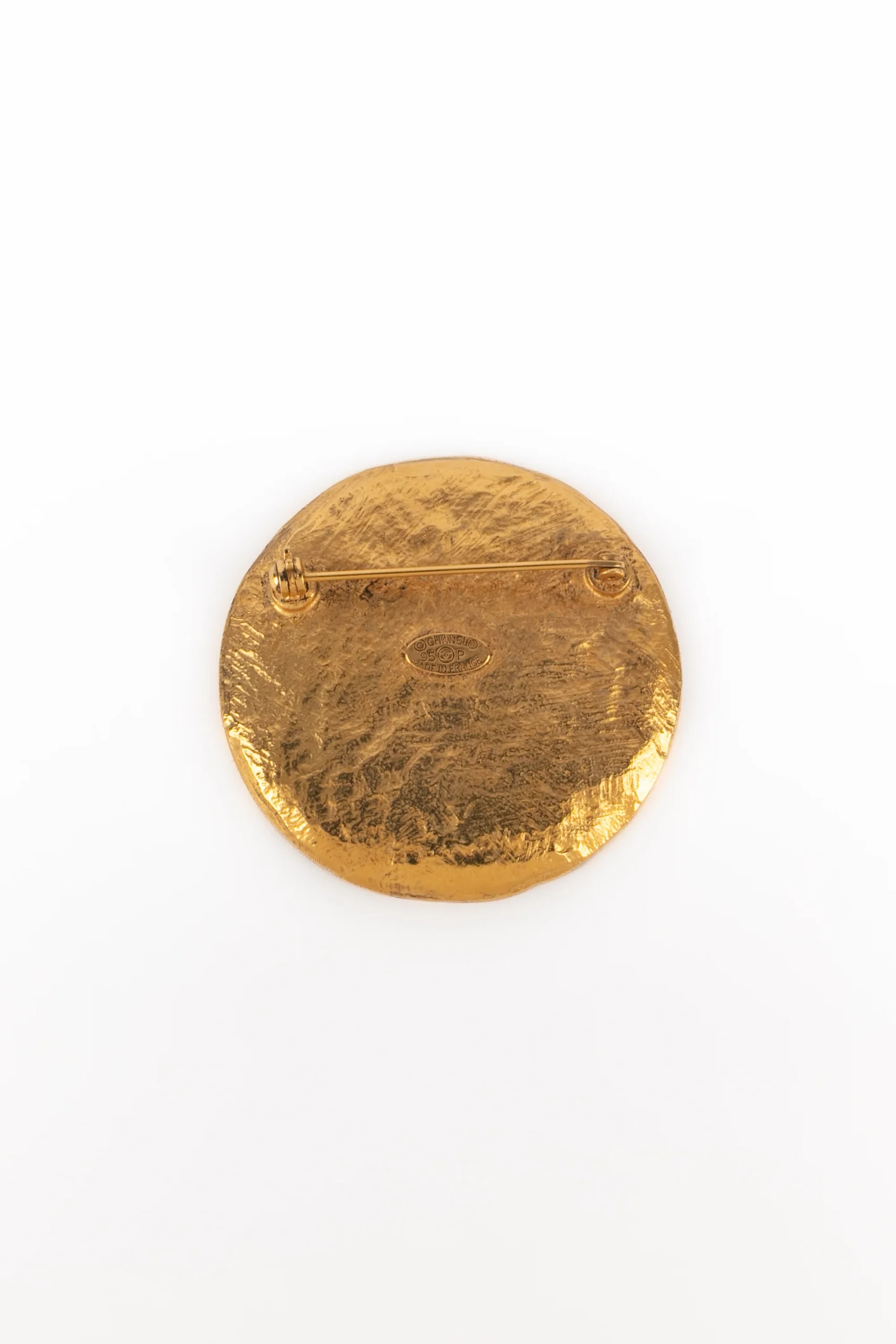 CHANEL -(Made in France) Broche ronde en métal doré. Collection Printemps-Eté 1995 sous la direction artistique de Karl Lagerfeld.