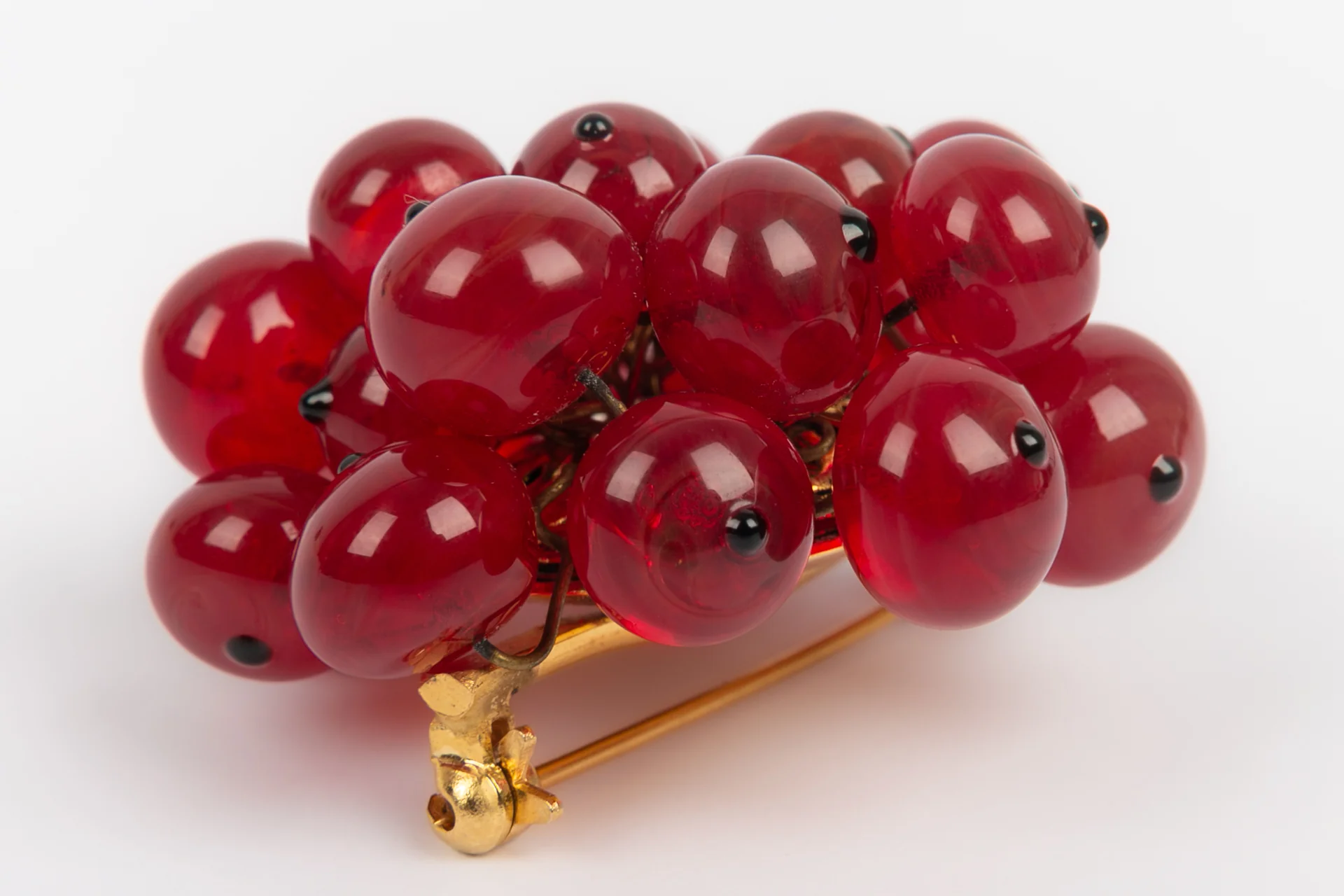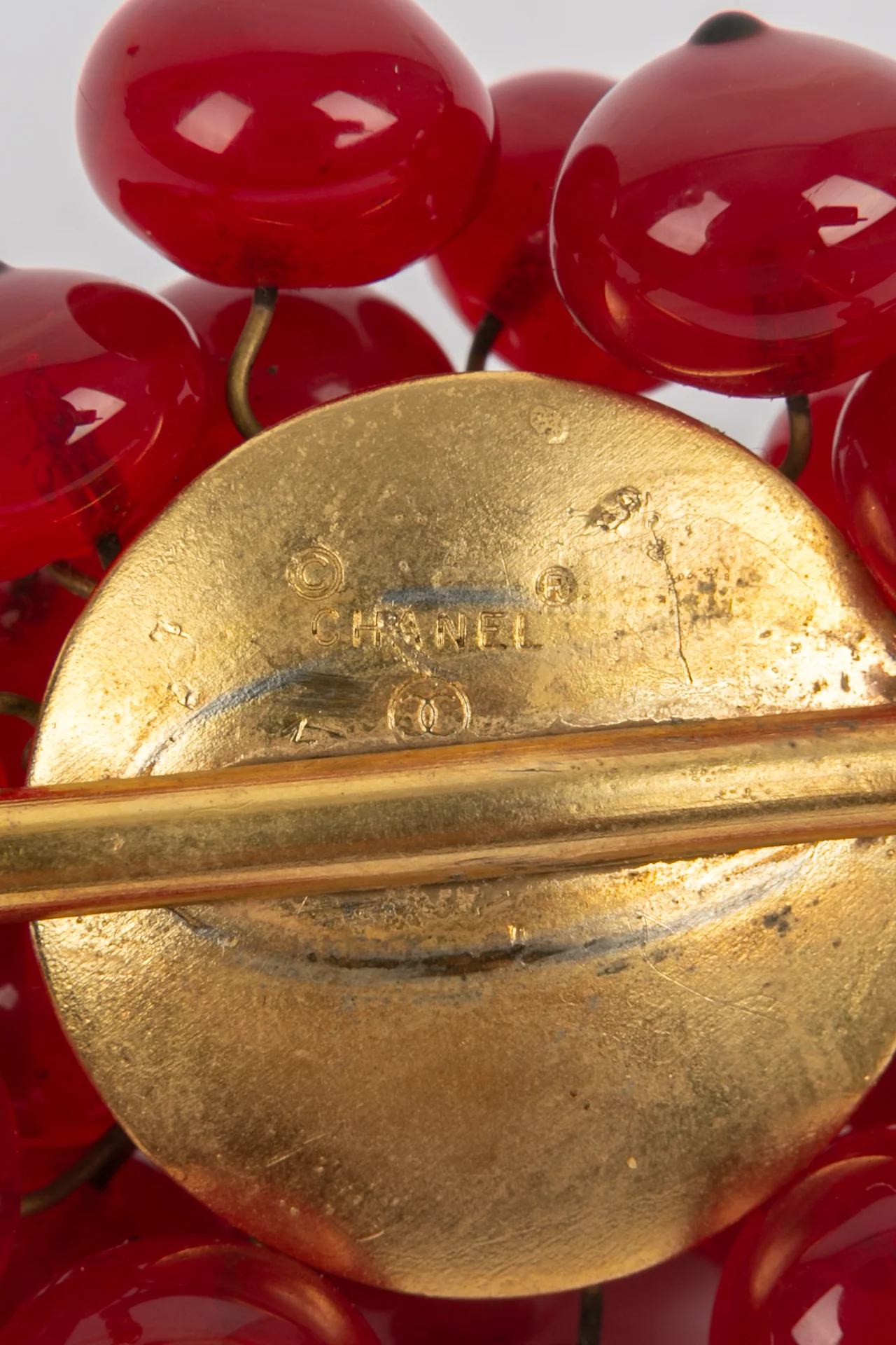 CHANEL -(Made in France) Broche en métal doré et pâte de verre.