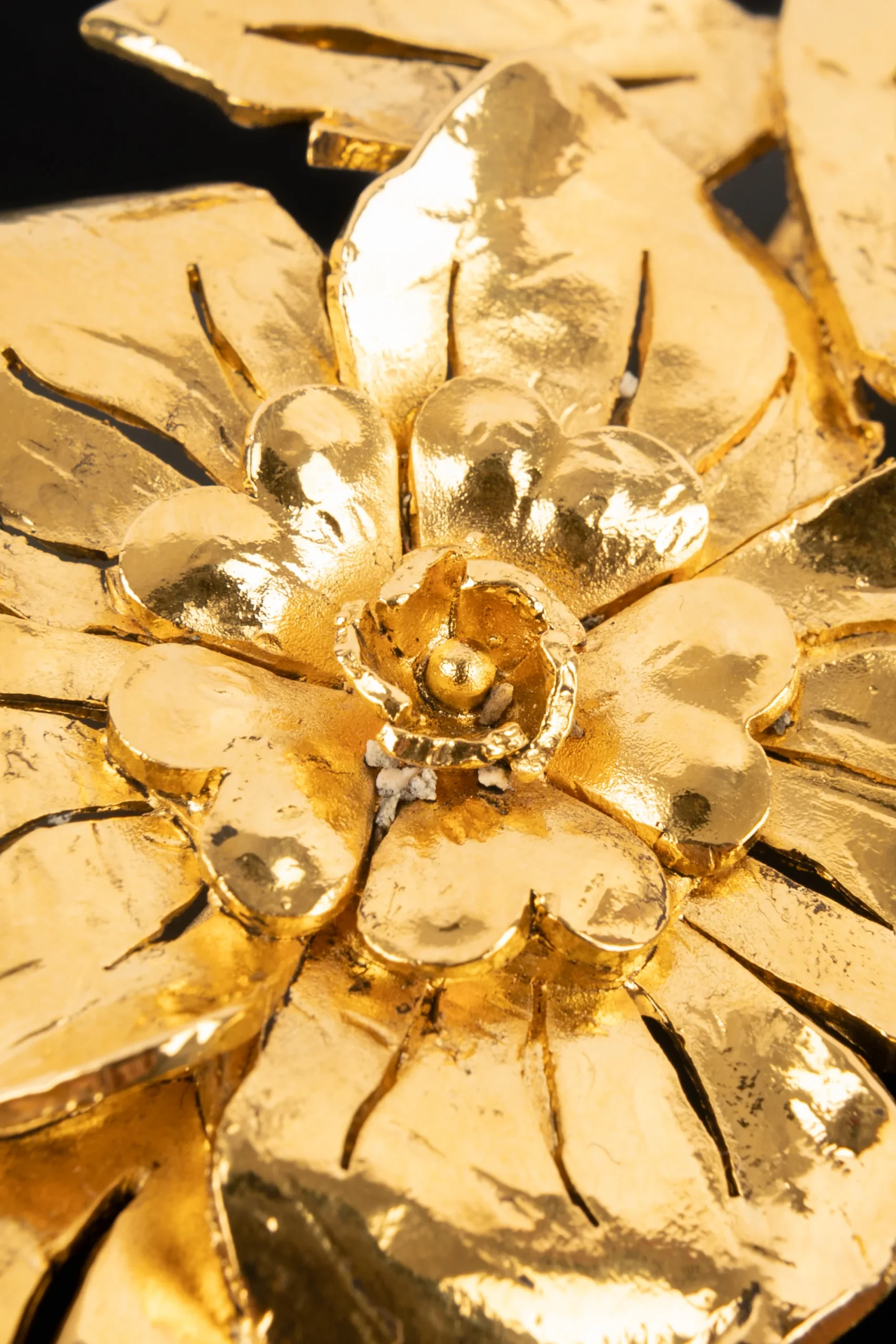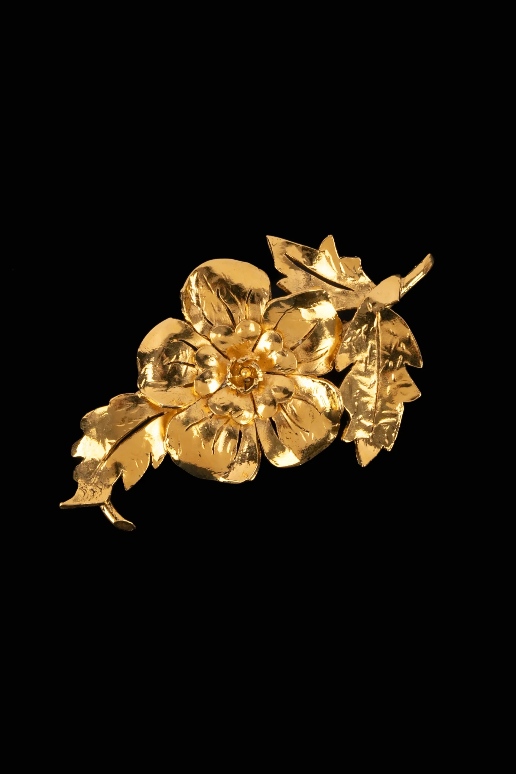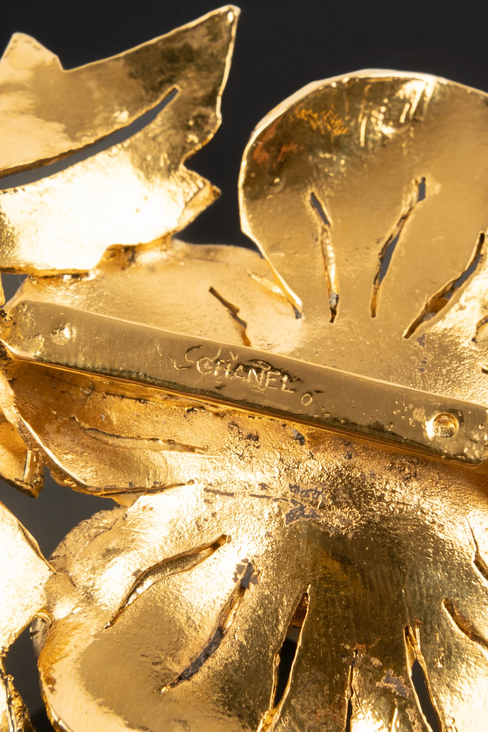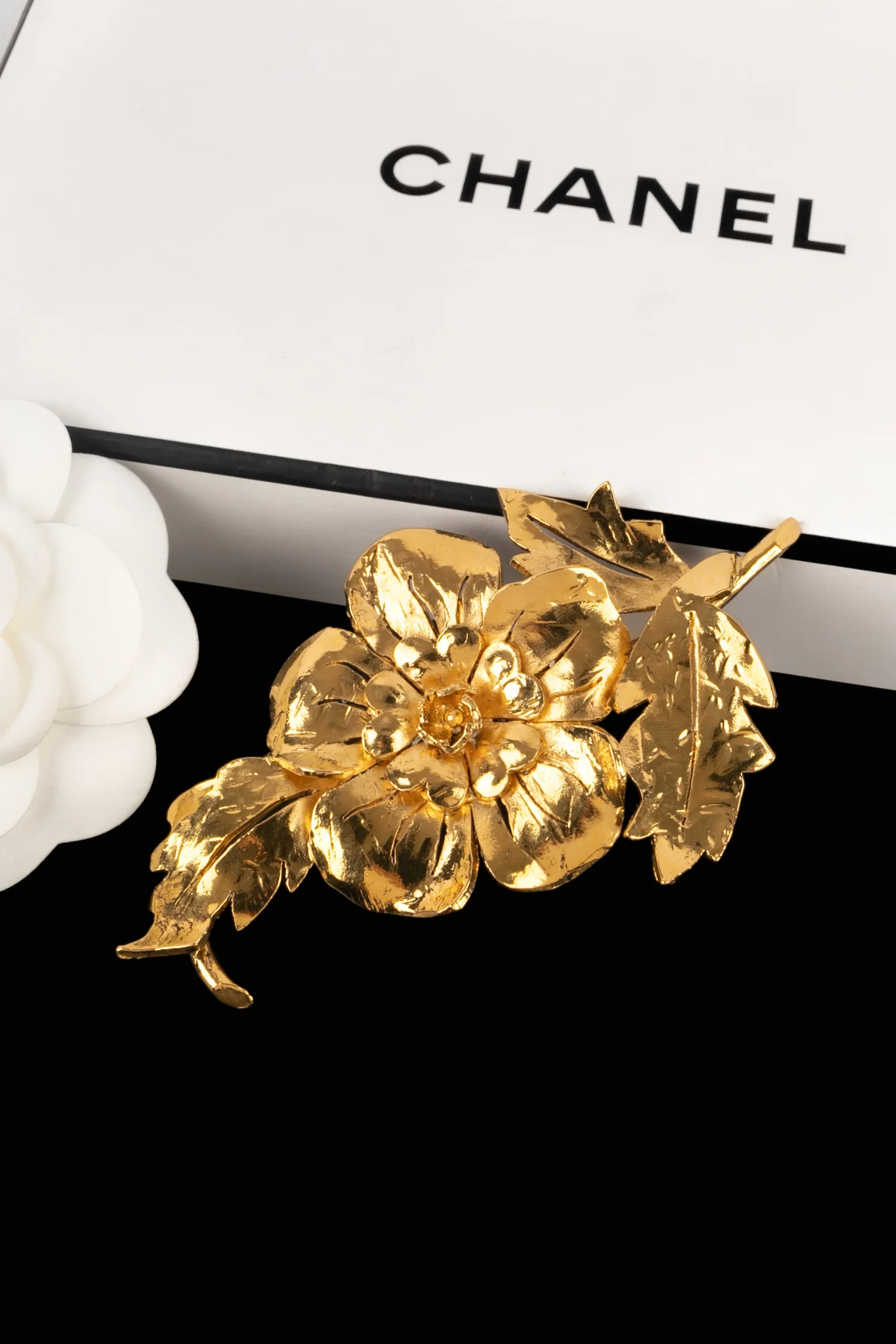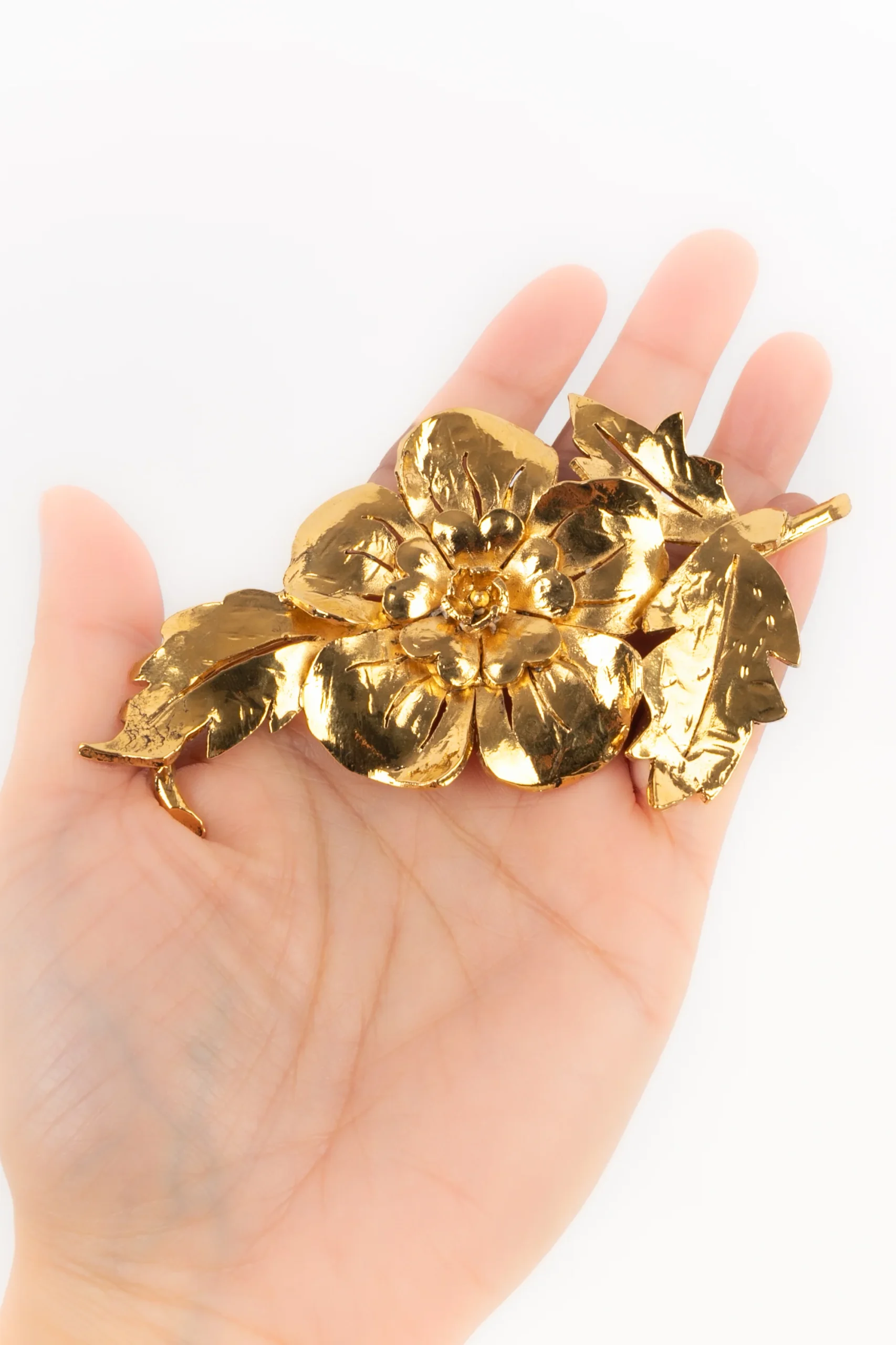 CHANEL -(Made in France) Broche représentant un motif floral en métal doré. Collection Haute Couture 1988/1989.