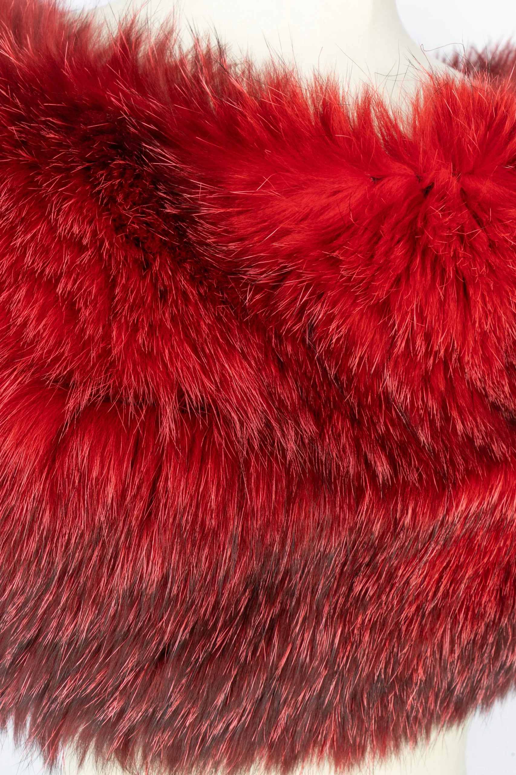 ESCADA – Cache épaule en fourrure de renard rouge, cuir et doublure en soie.