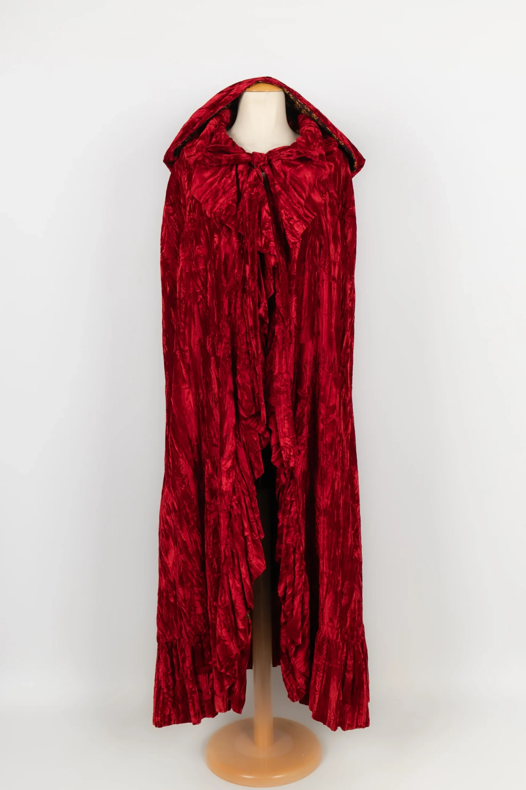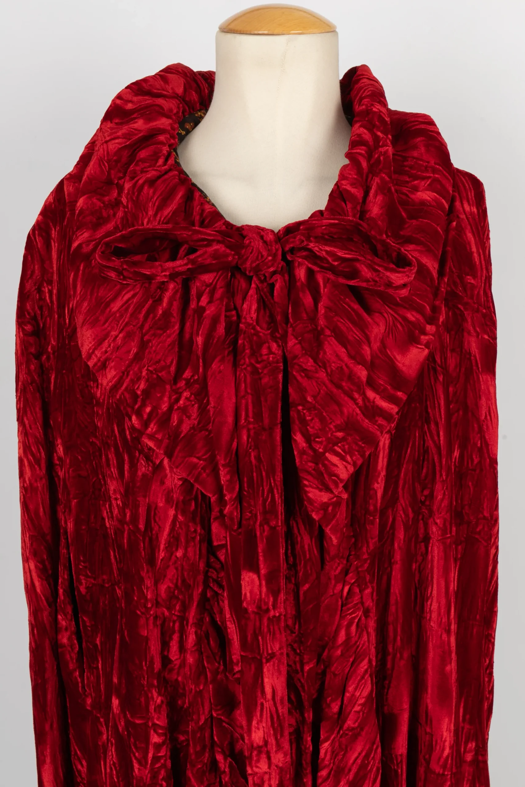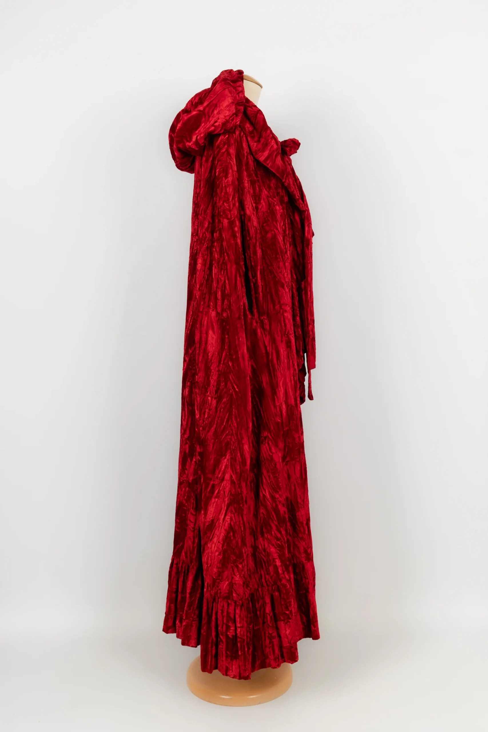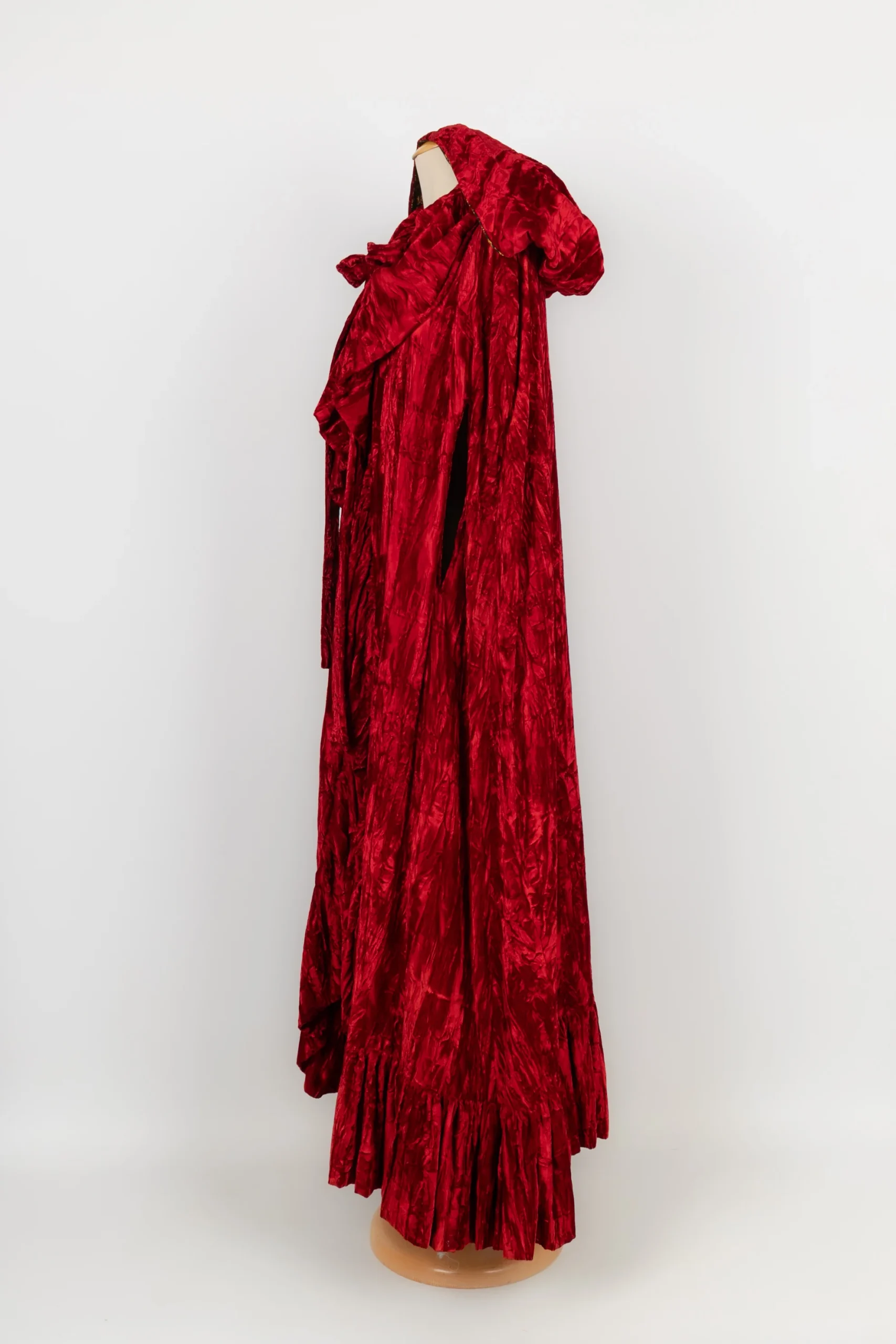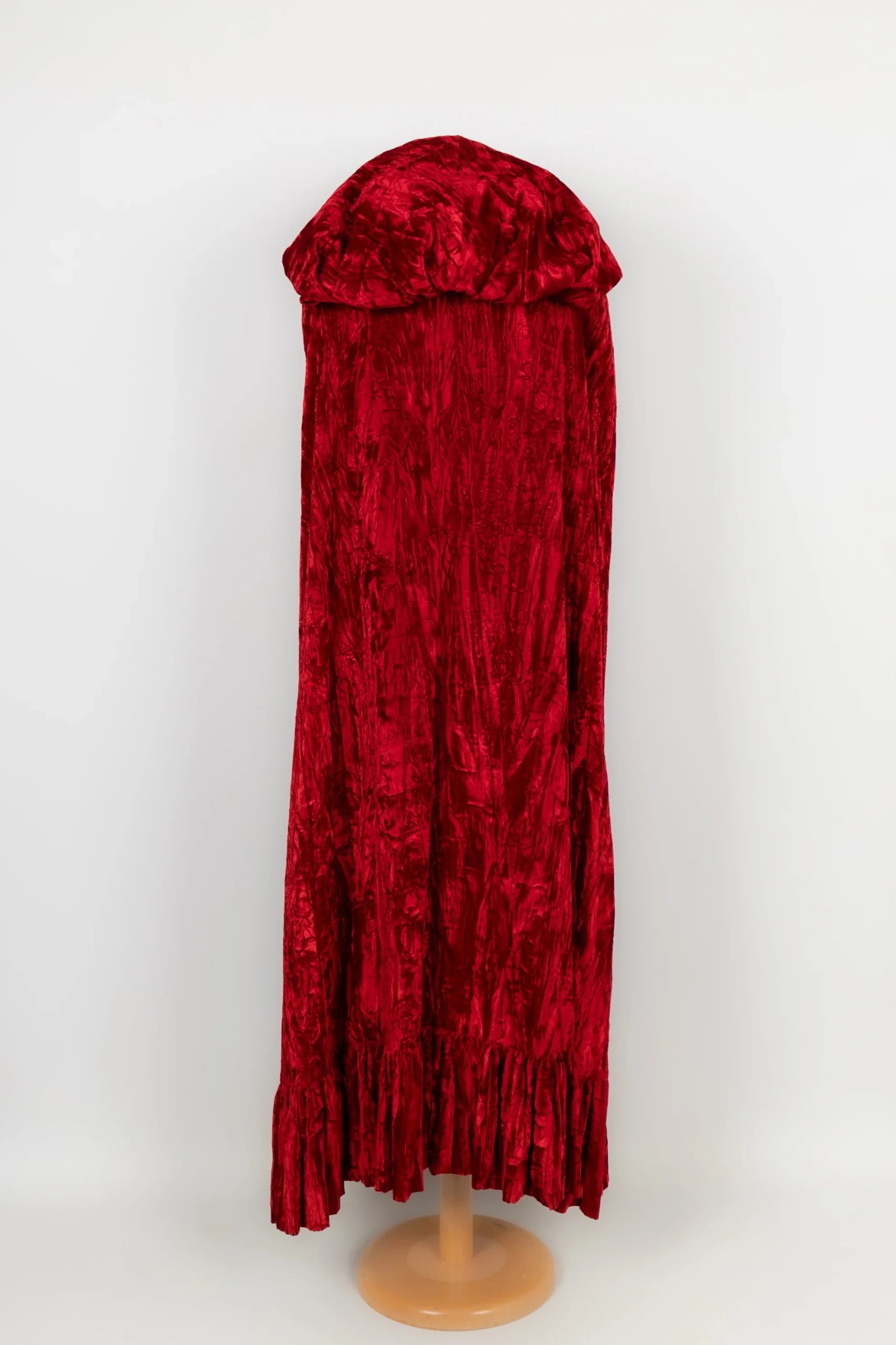 ANONYME -Cape en velours rouge effet froissé. Aucune étiquette de taille ou de composition, elle convient à un 40FR.