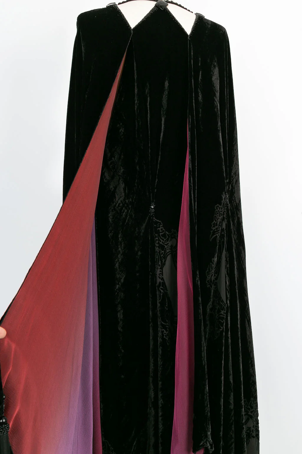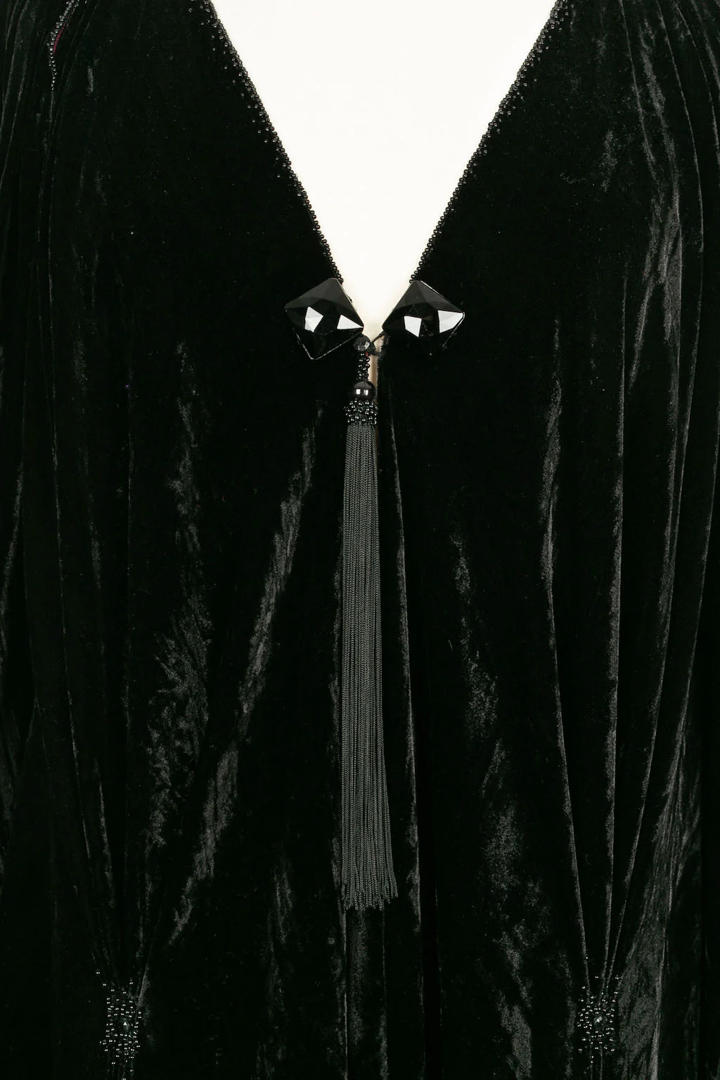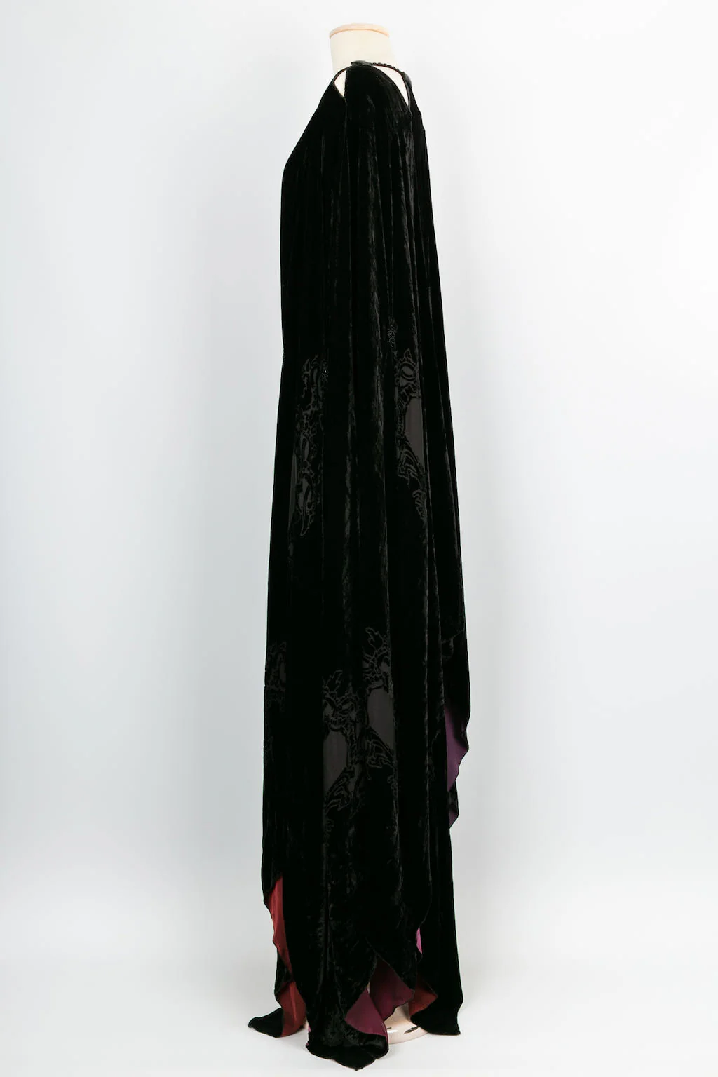 FRANCK SORBIER -Cape Haute Couture en panne de velours et velours dévoré, agrémentée de passementerie et de perles noires. Doublure en soie. Pas d’étiquette de composition ou de taille indiquée, elle correspond à un 36FR/38FR.