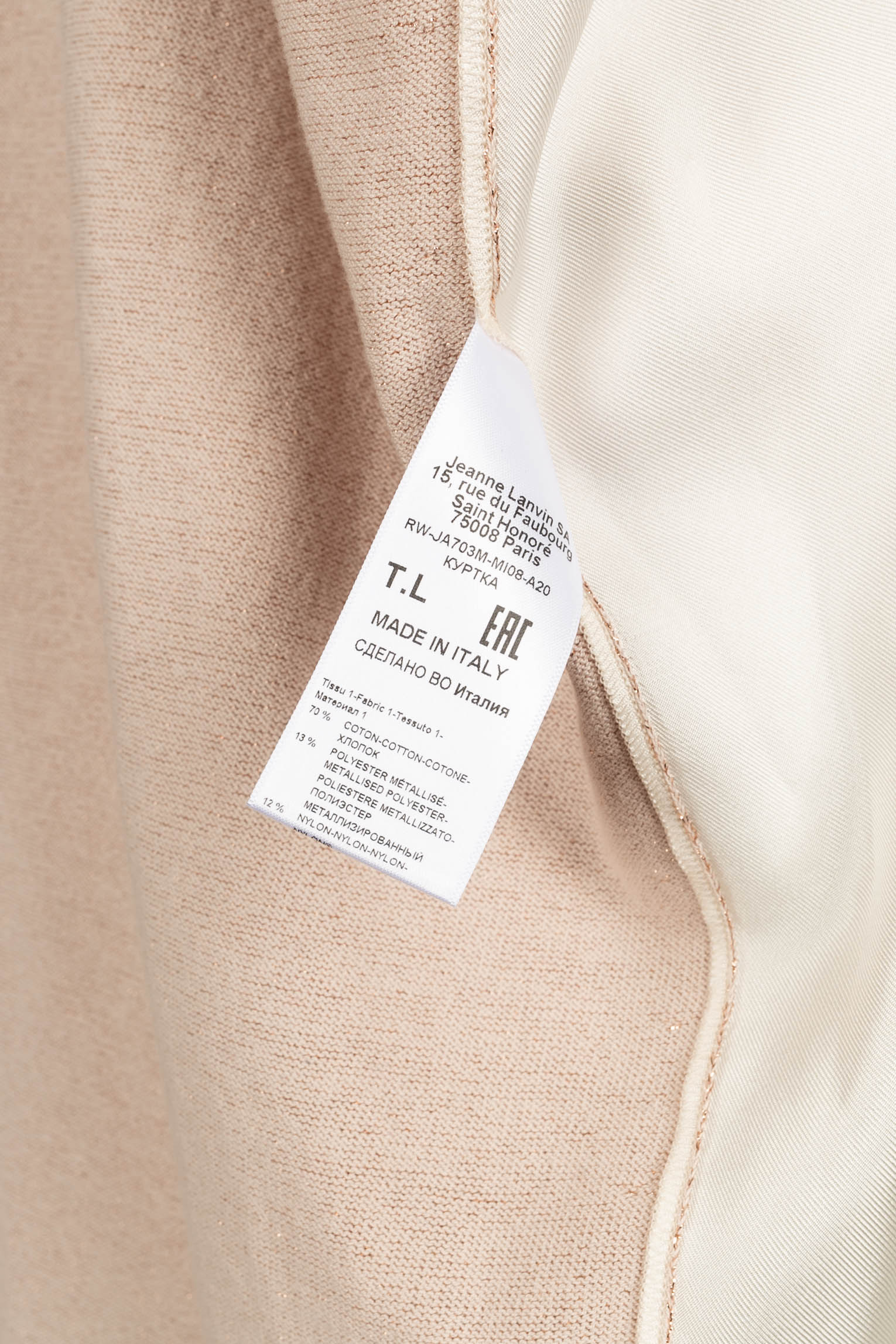 Largeur d’épaules : 50 cm – Poitrine : 68 cm – Longueur des manches : 60 cm – Longueur : 70 cm
