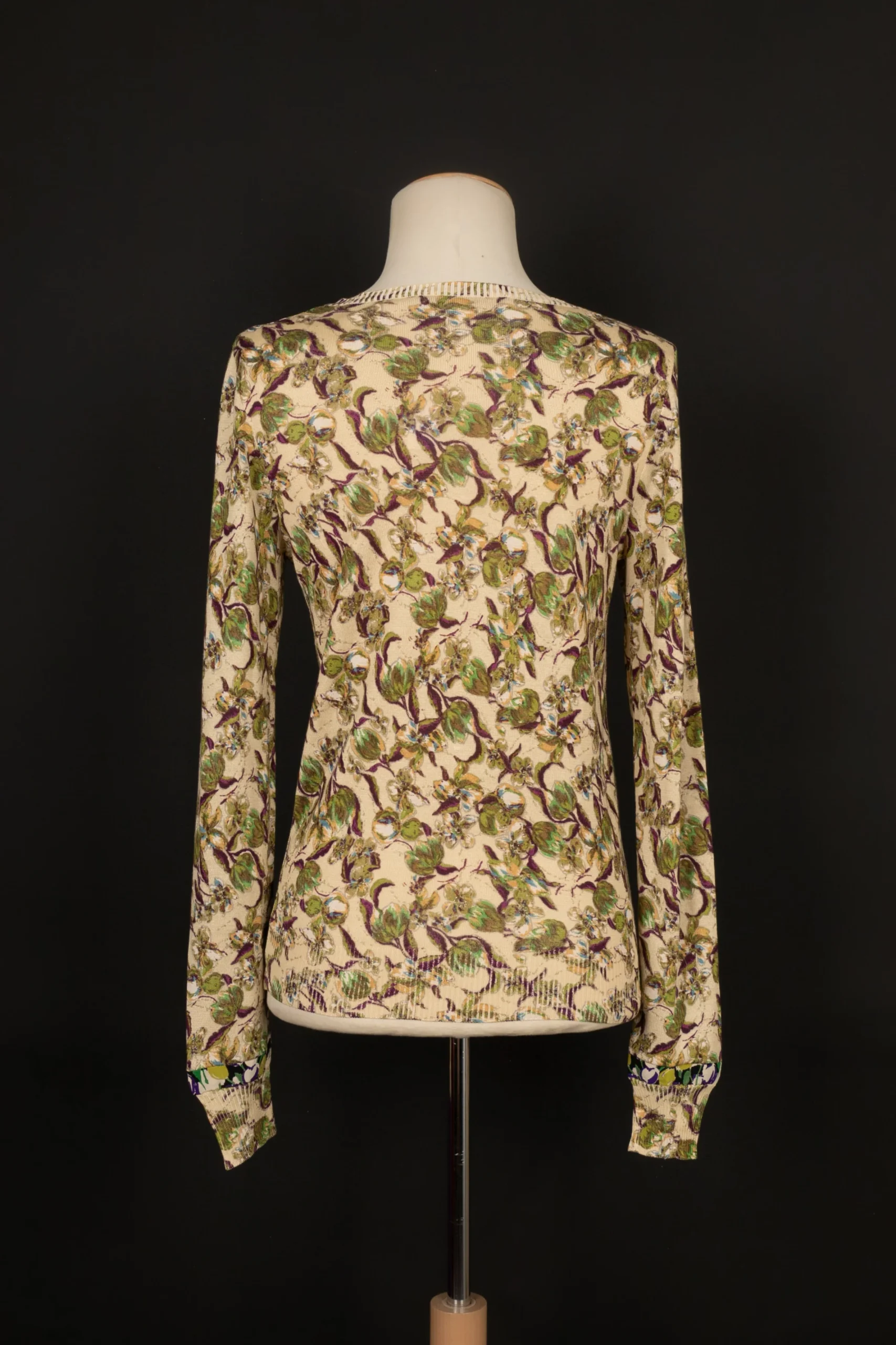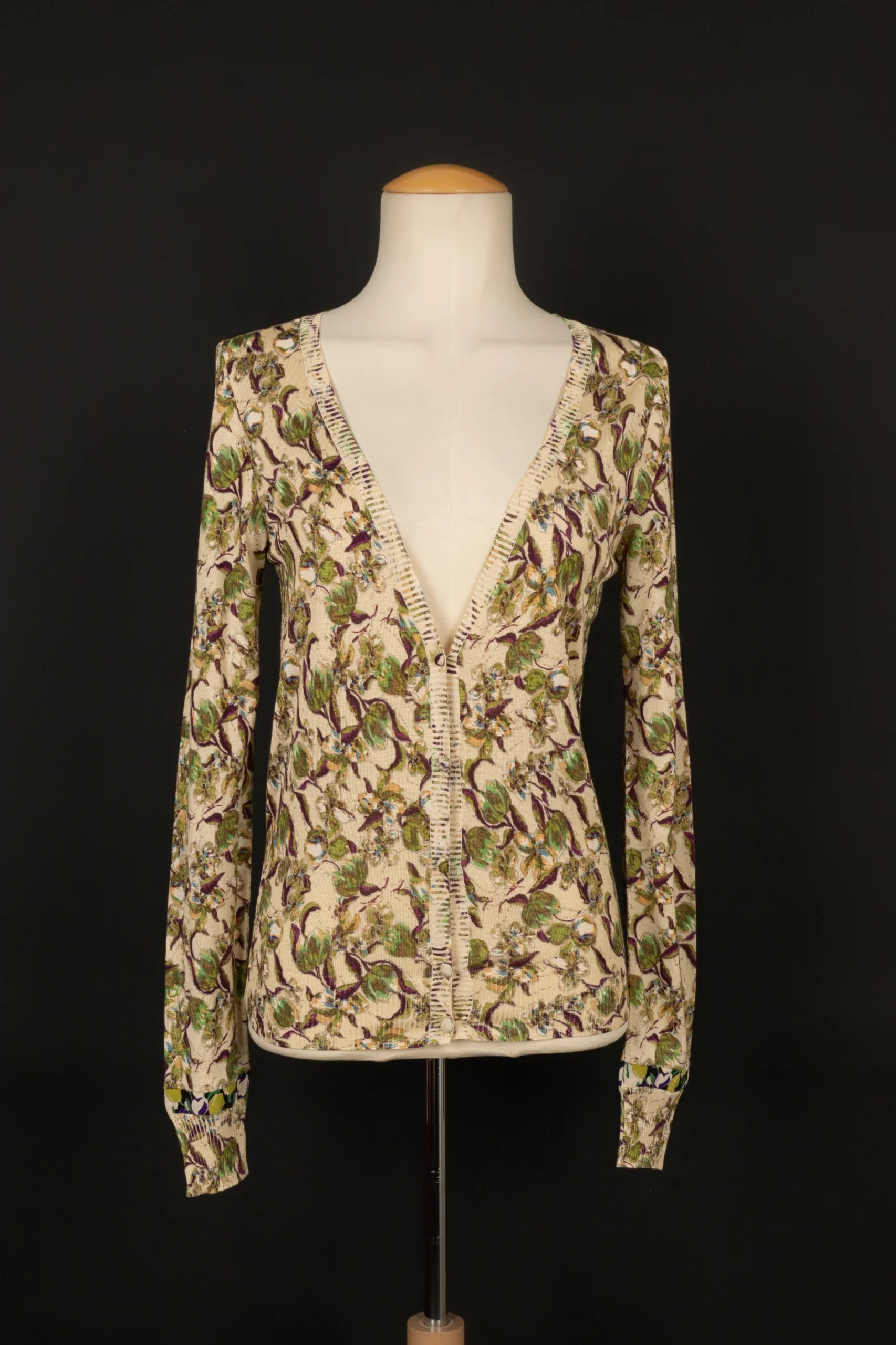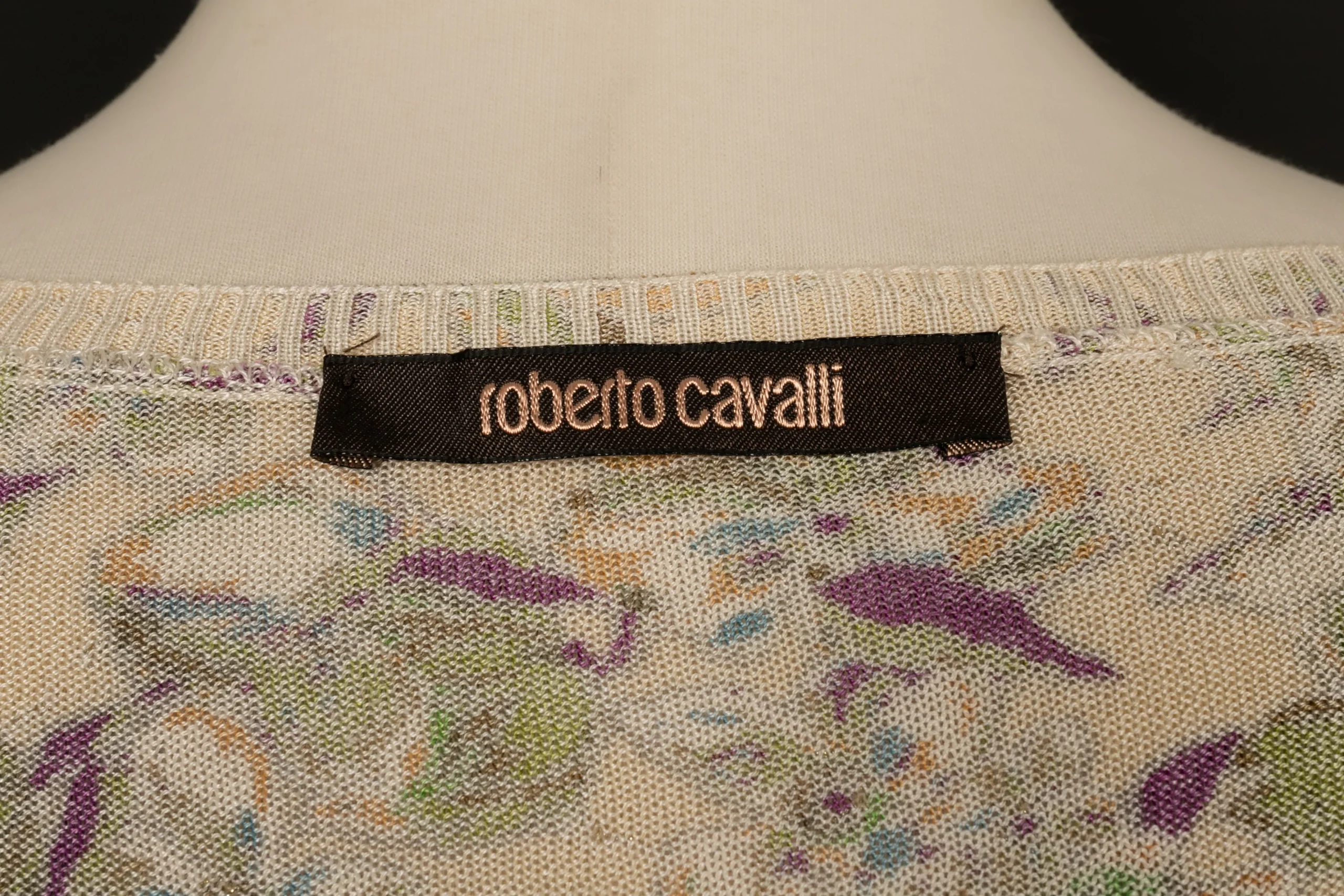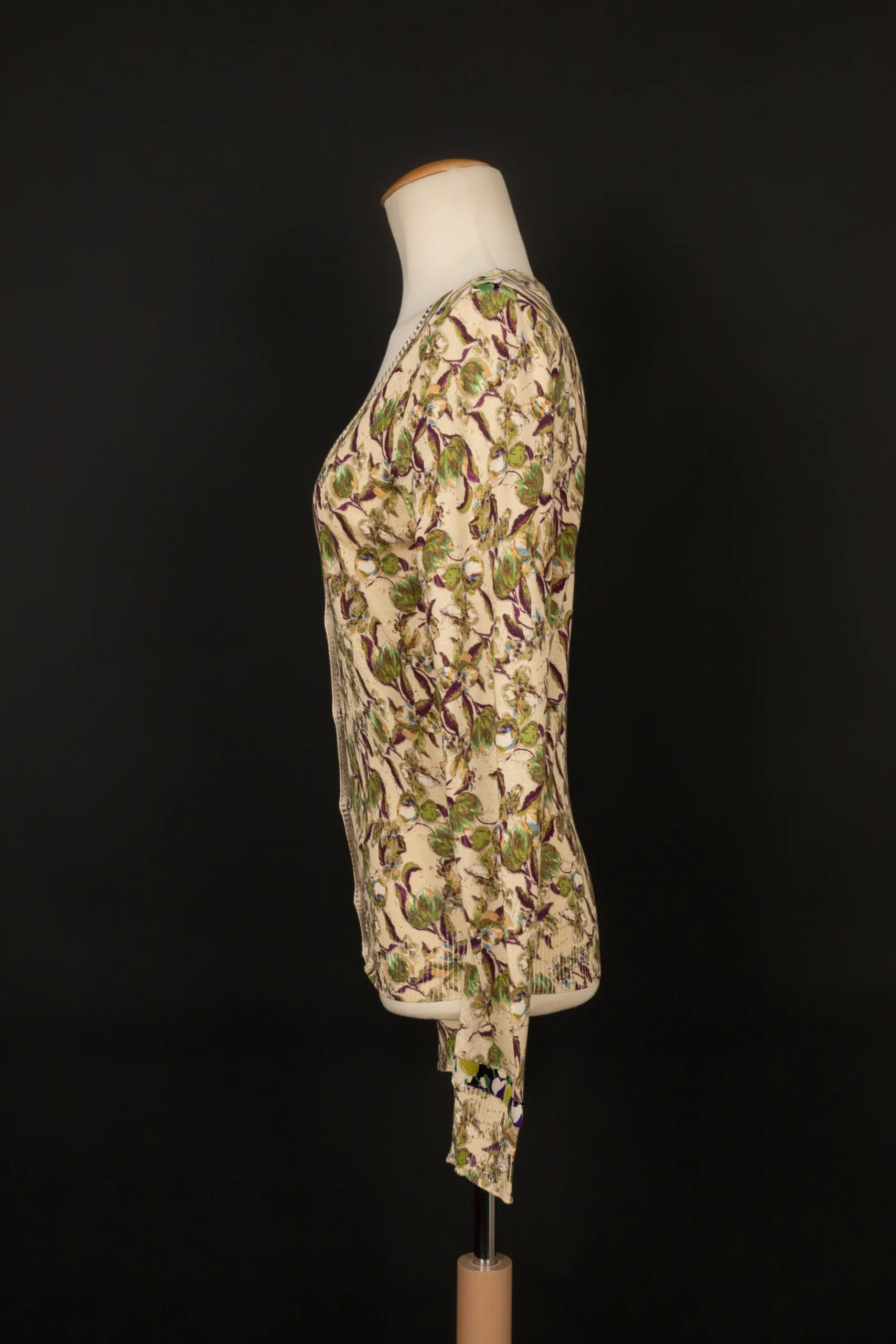 CAVALLI -(Made in Italy) Cardigan en soie à motif floral. Taille indiquée 38FR.