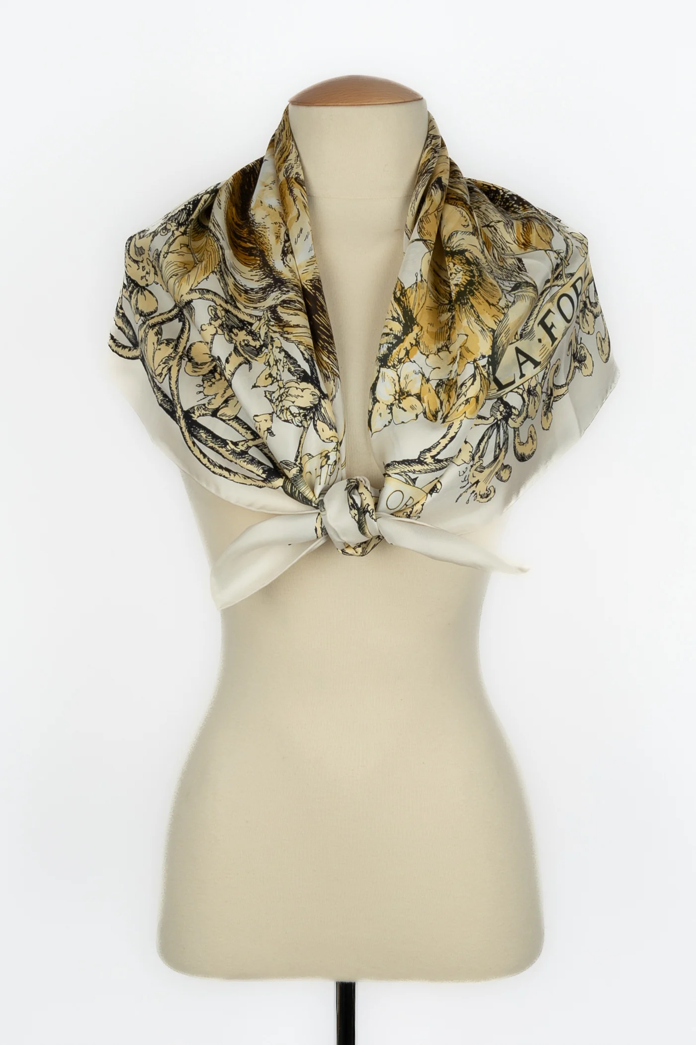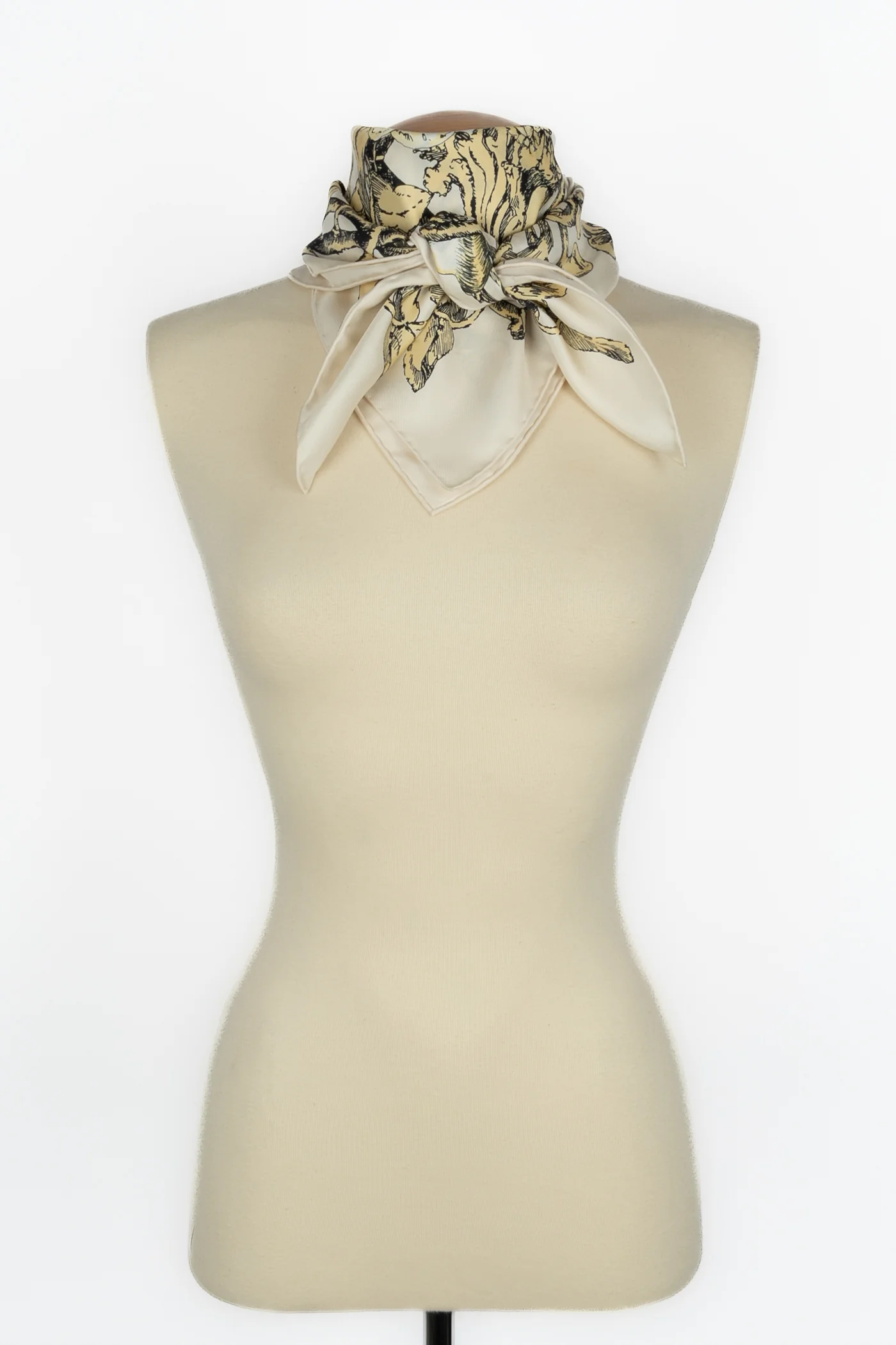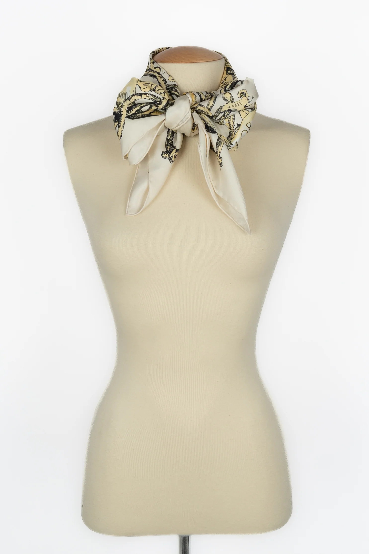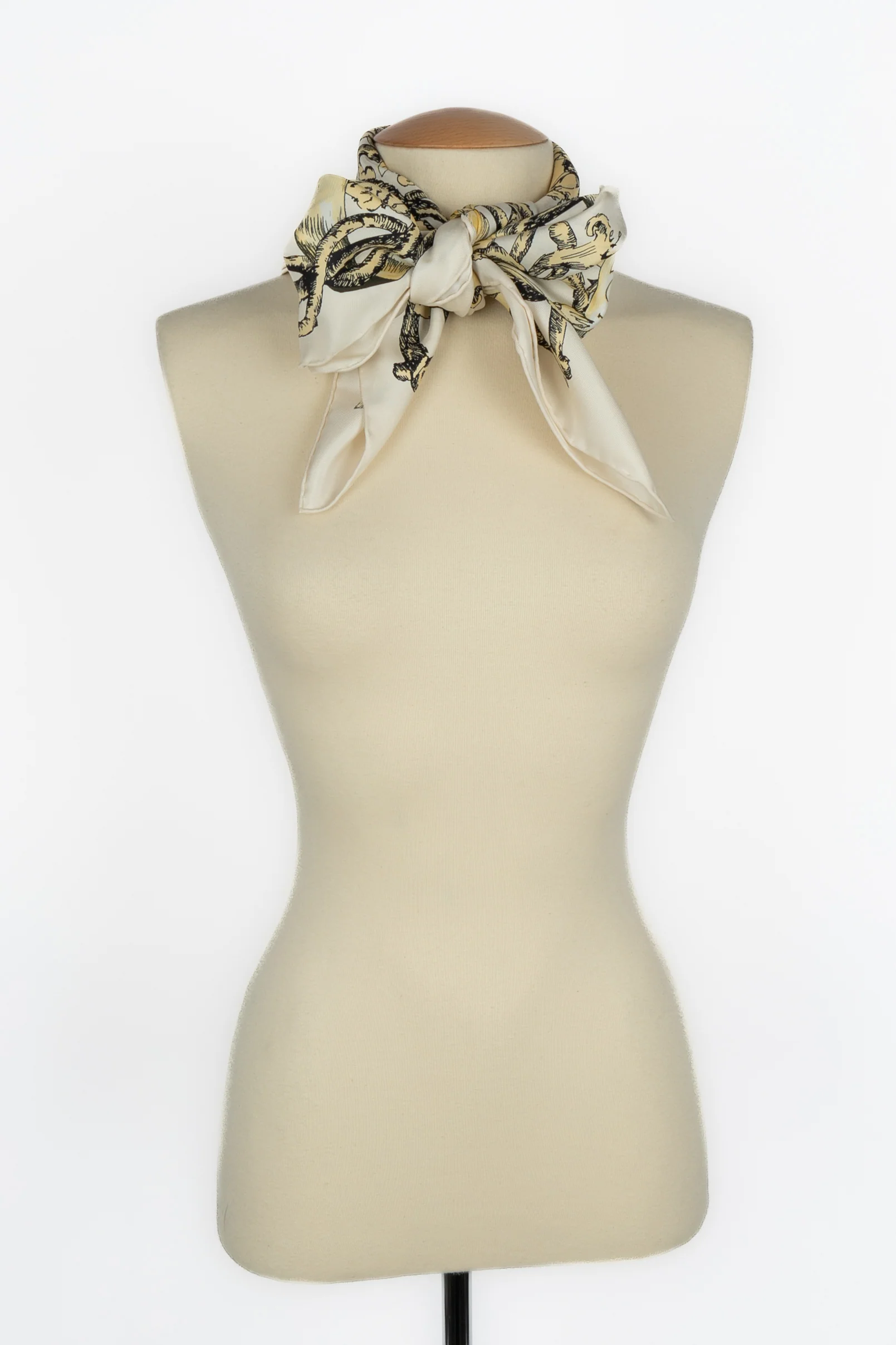 DIOR -Foulard en twill de soie noir et or rendant hommage à la fascination de Christian Dior pour l’astrologie. Il évoque l’une des cartes de tarot. Condition : Très bon état Dimensions : 90 cm x 90 cm