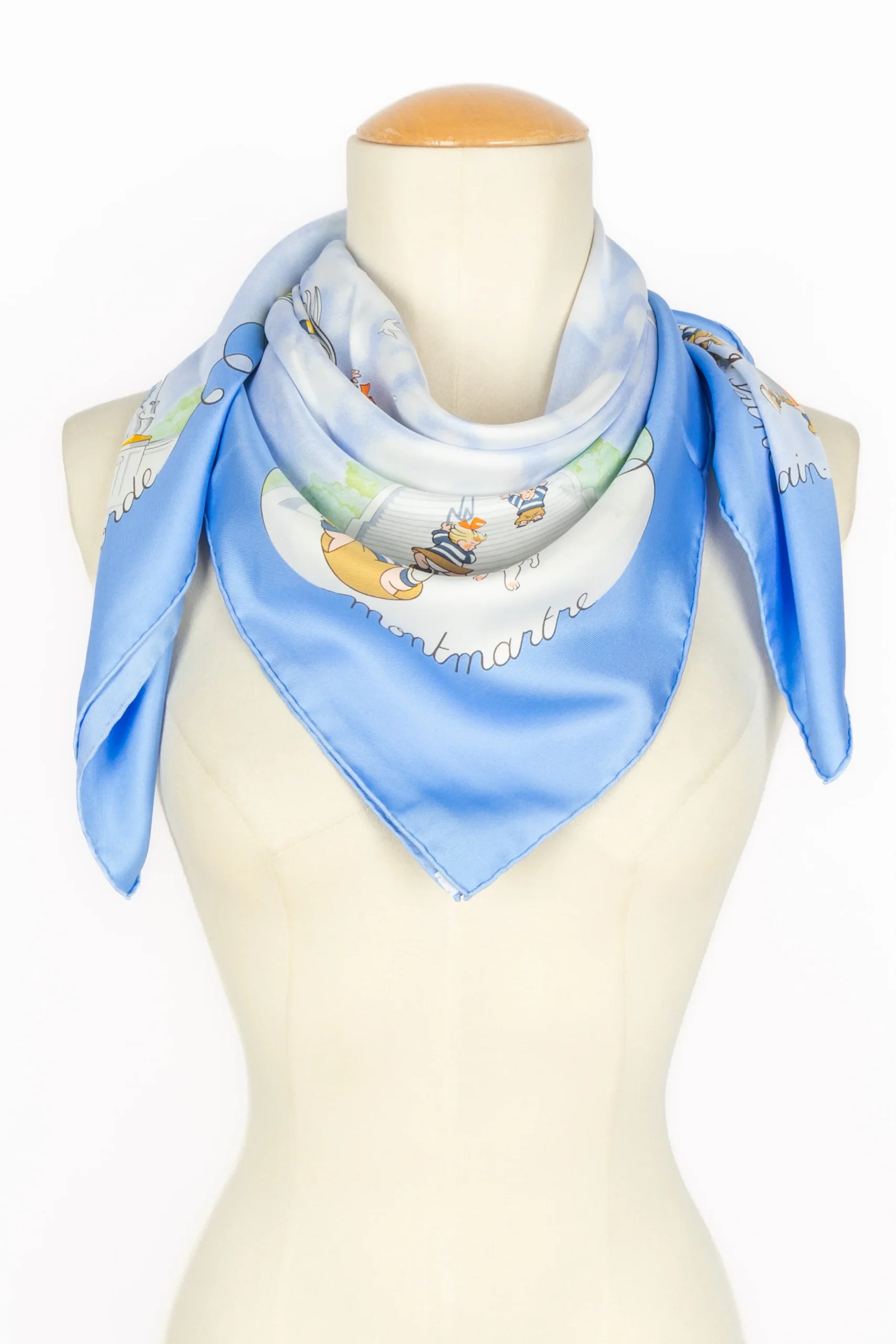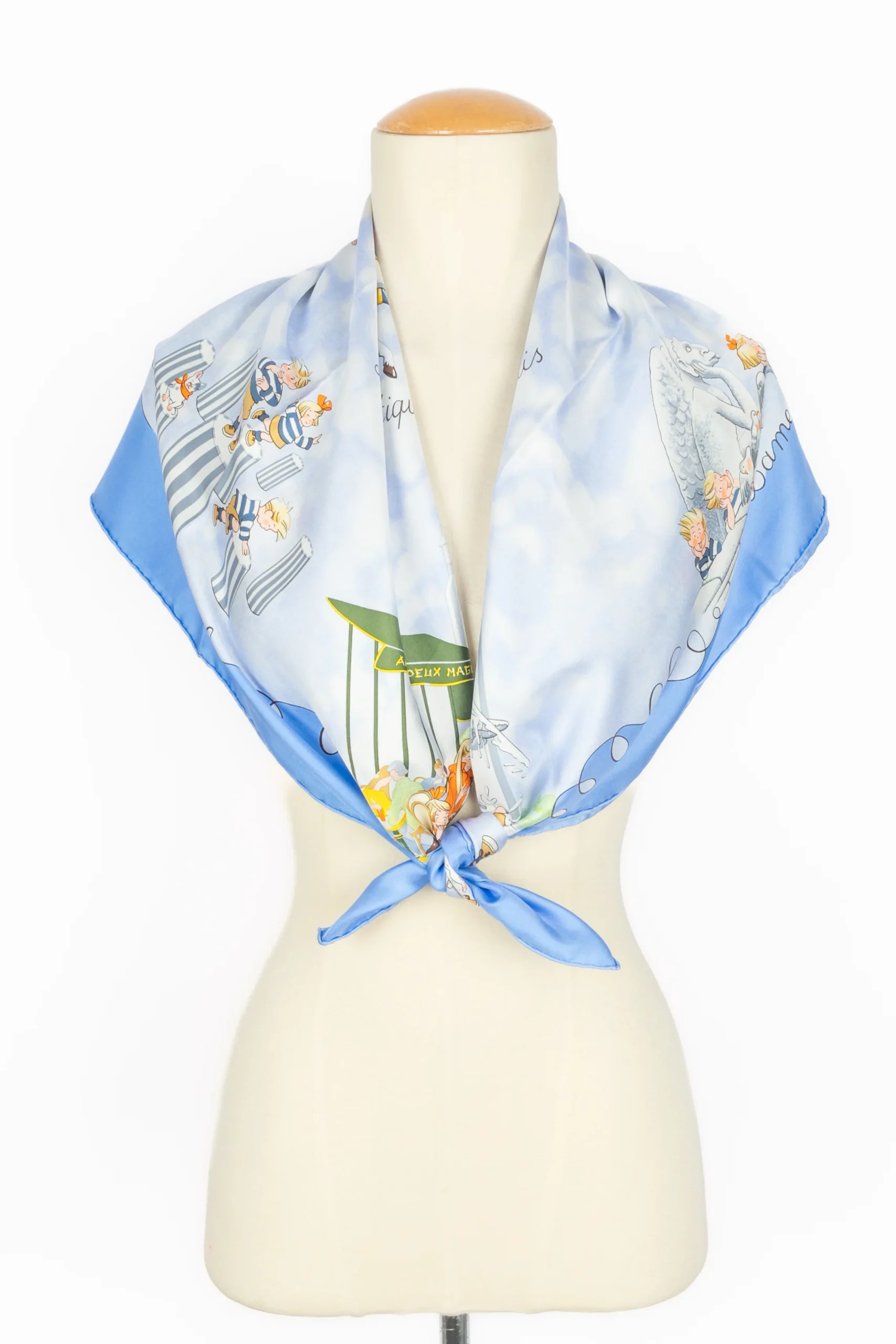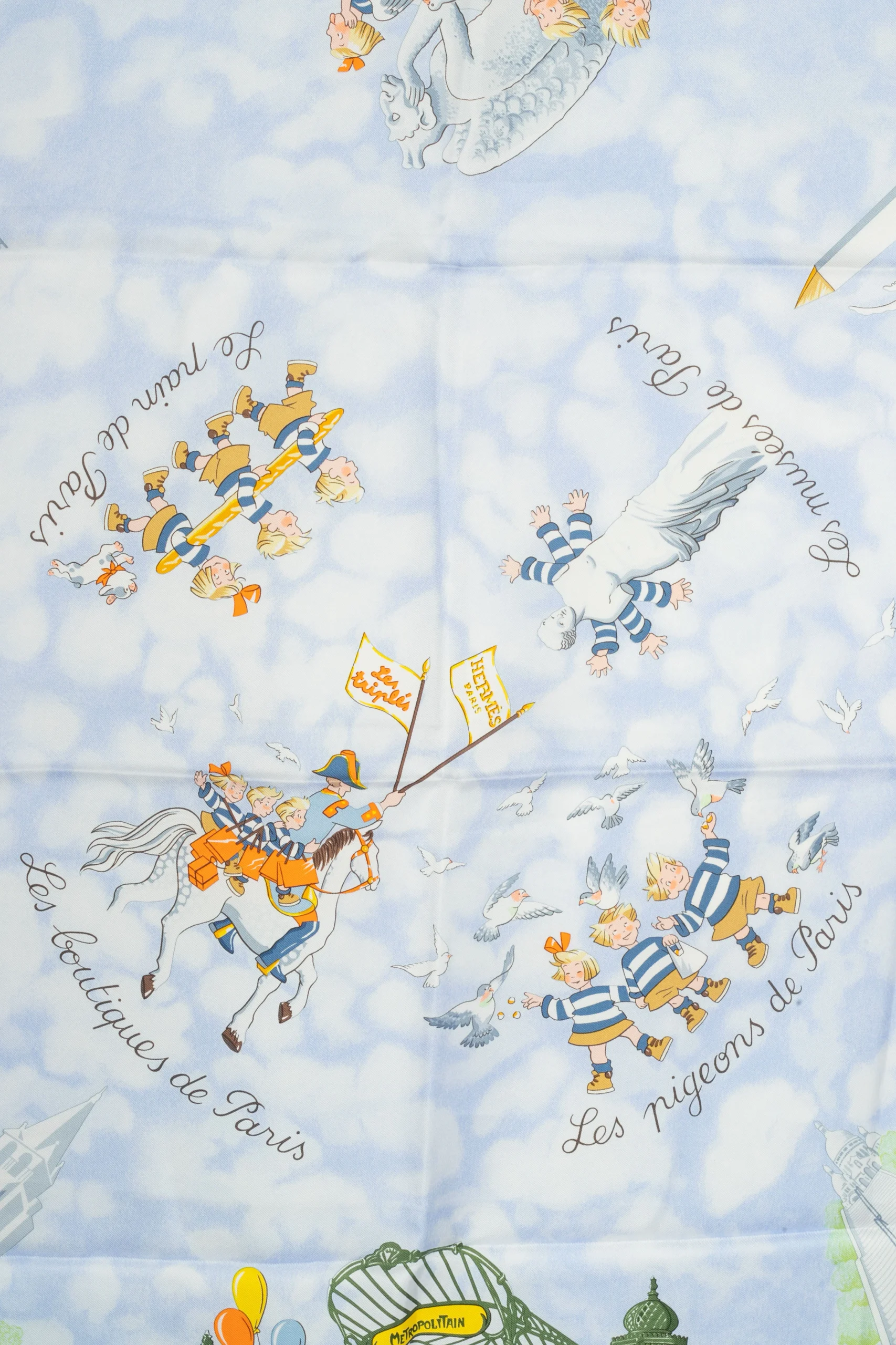 HERMÈS -(Made in France) Carré en twill de soie intitulé « Les triplés », dessiné par Nicole Lambert et édité en 2005. Condition : Très bon état Dimensions : 90 cm x 90 cm