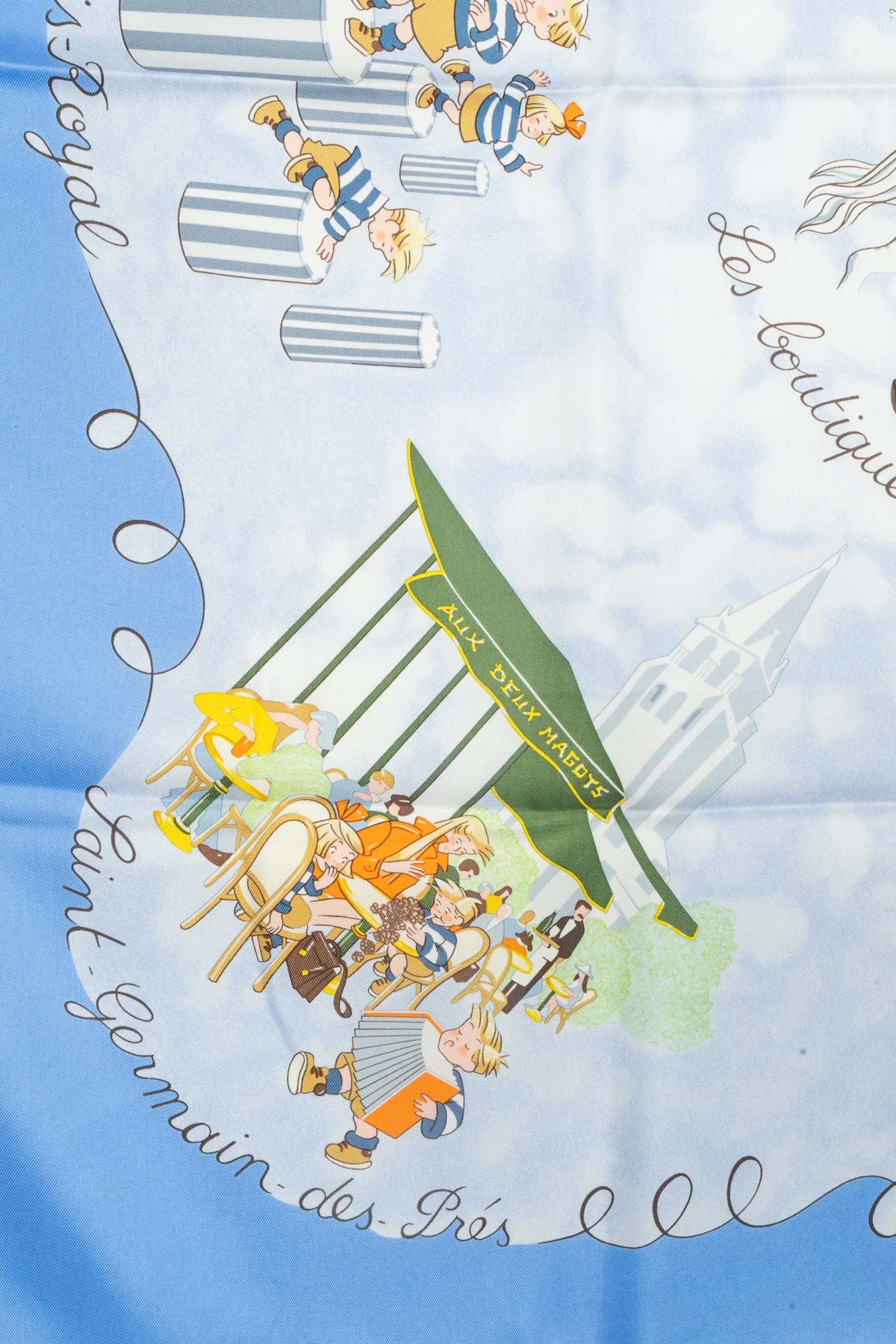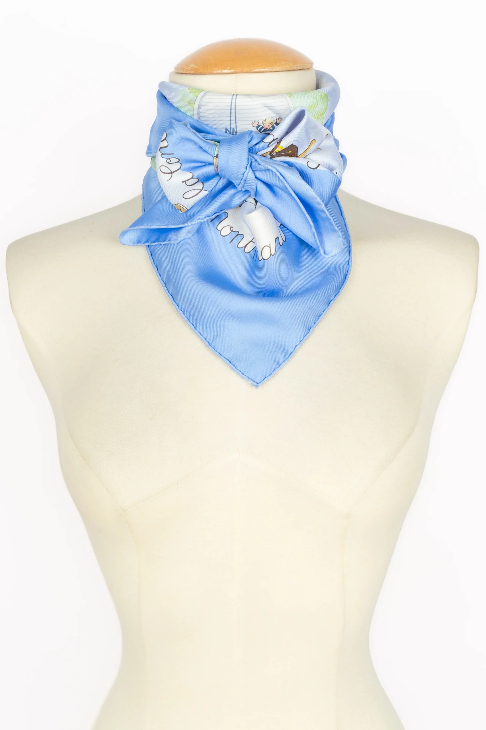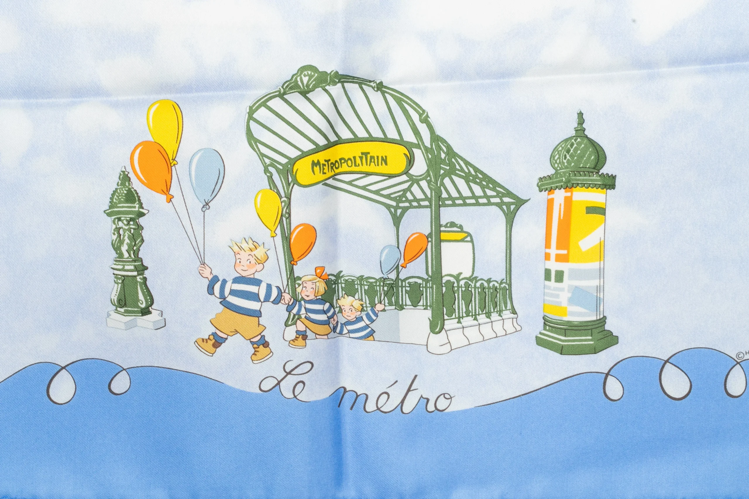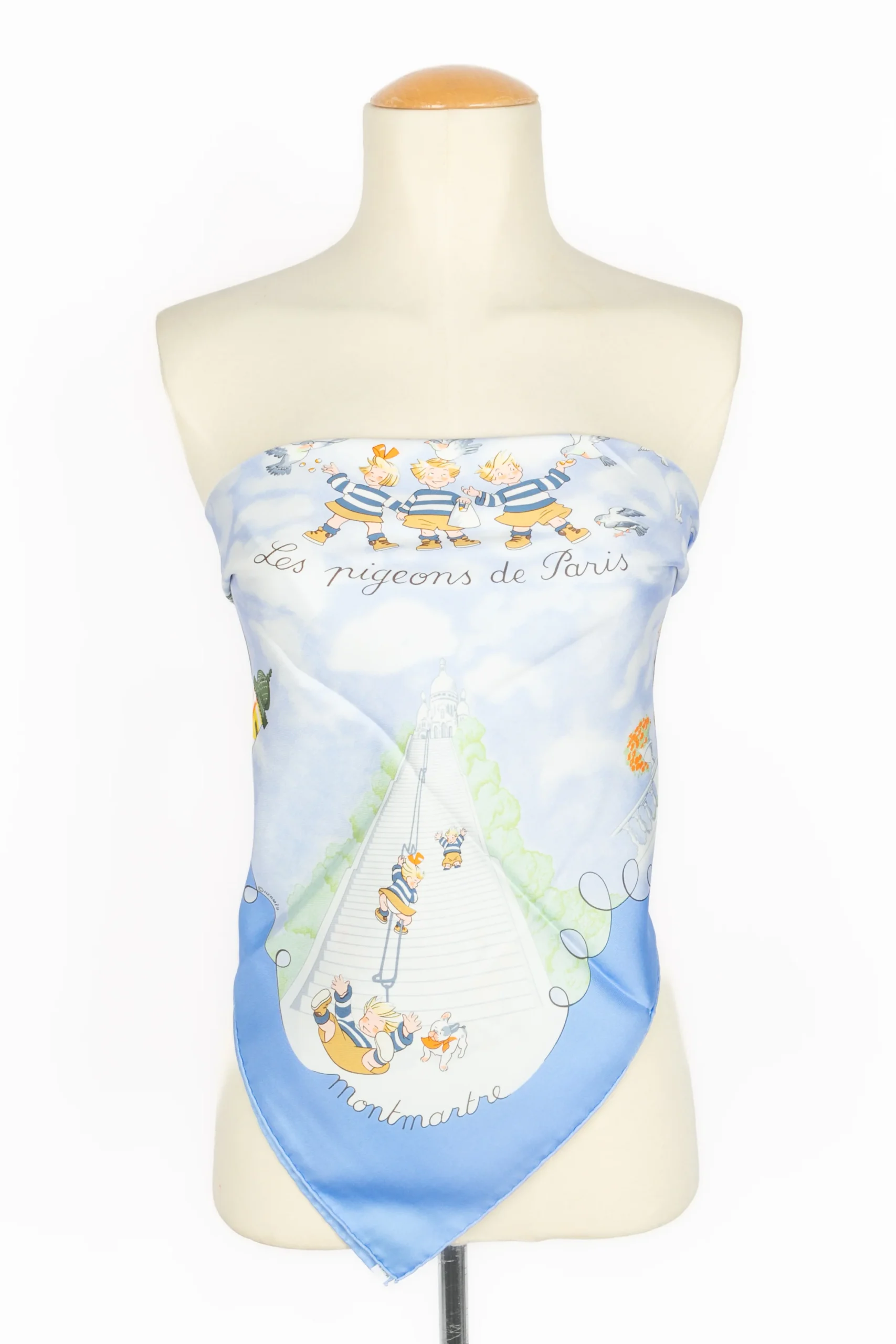 HERMÈS -(Made in France) Carré en twill de soie intitulé « Les triplés », dessiné par Nicole Lambert et édité en 2005. Condition : Très bon état Dimensions : 90 cm x 90 cm