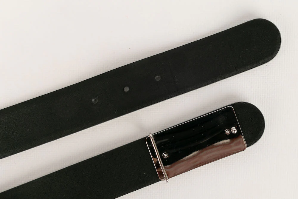 CHANEL -Ceinture en cuir et strass. Aucun marquage sur le cuir, elle provient des ventes privées. Condition : Très bon état Dimensions : Longueur totale : 81 cm – Largeur : 3,5 cm