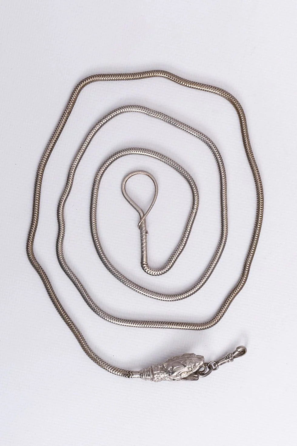 ANONYME -Ceinture vintage en métal argenté figurant une tête de serpent.