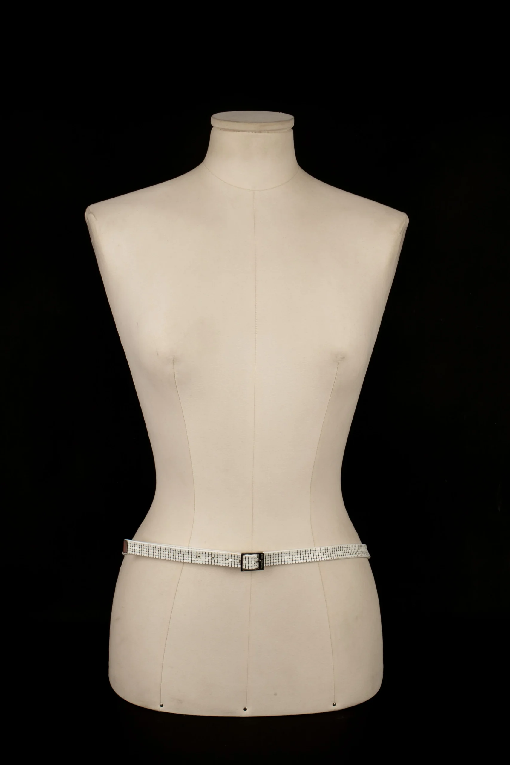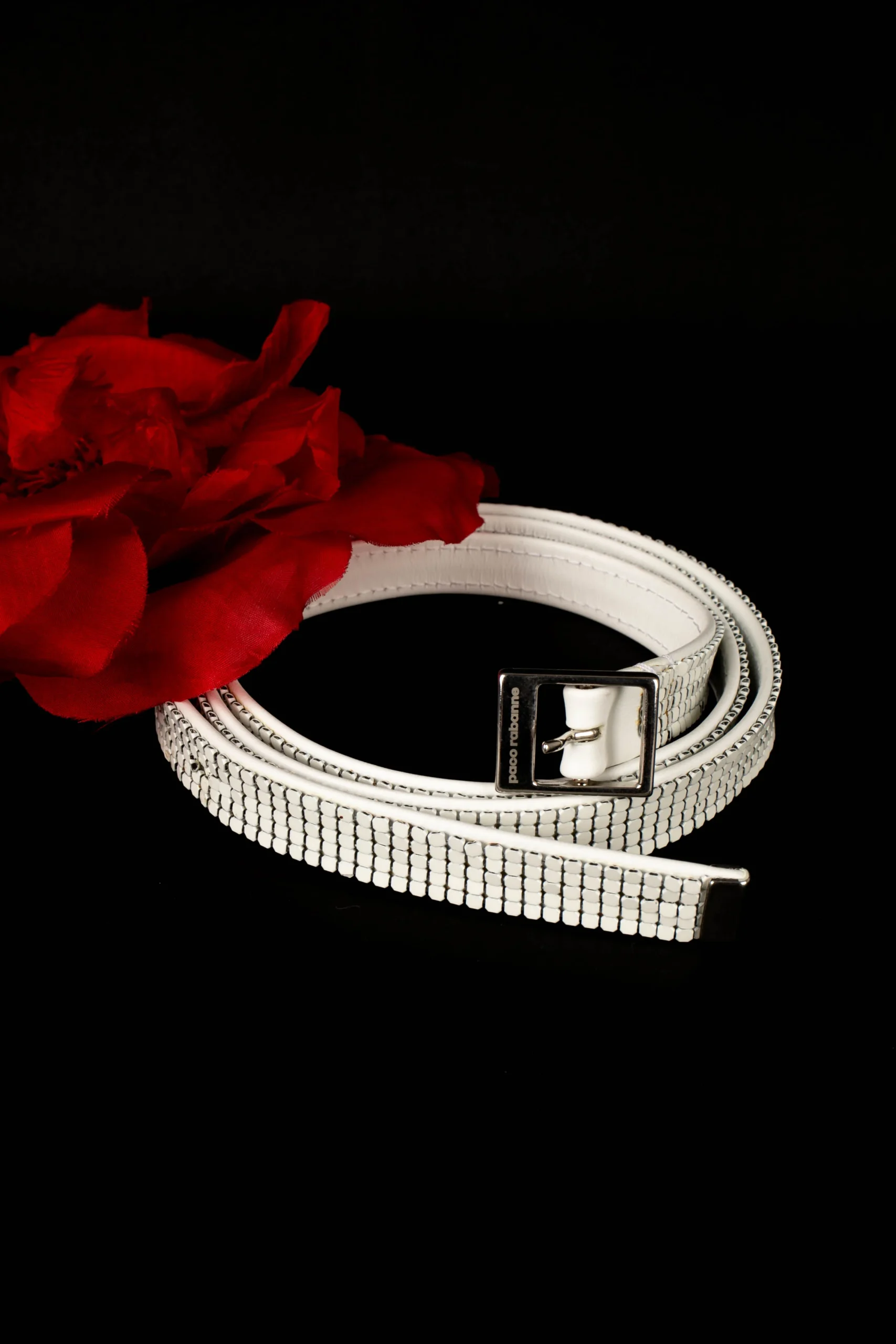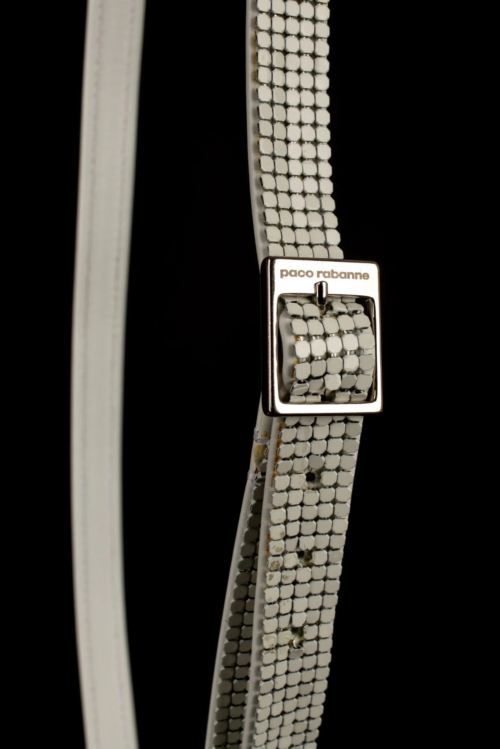 PACO RABANNE -Ceinture en cuir et métal doré dans les tons de blanc.