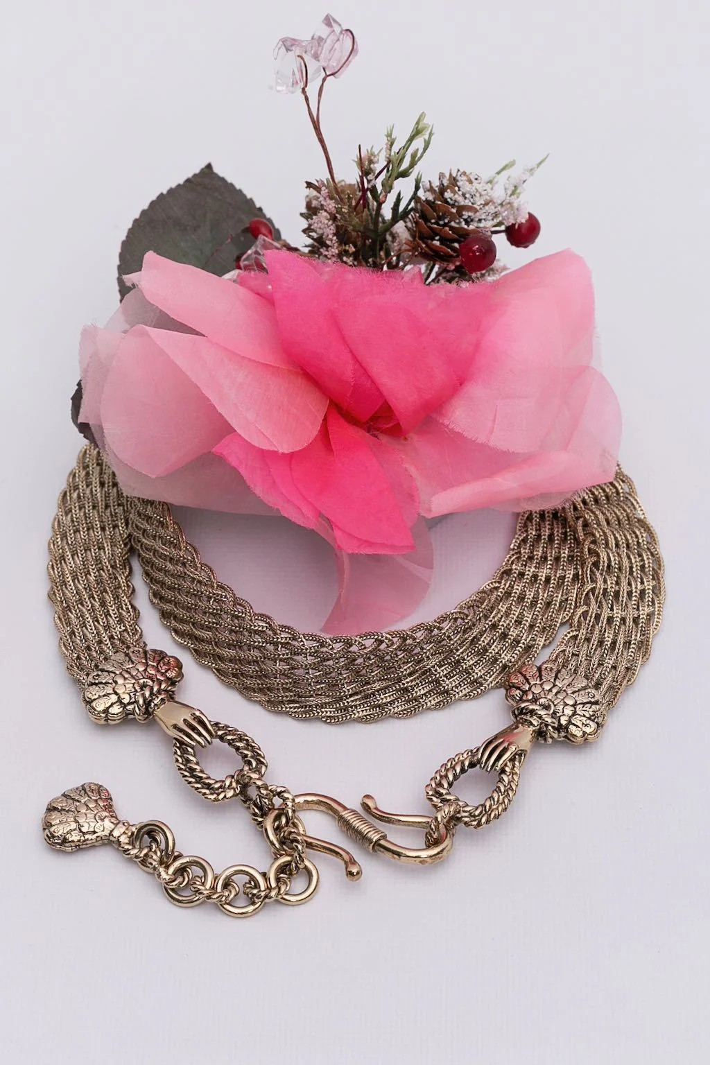 ANONYME -Ceinture vintage en métal argenté figurant des mains.