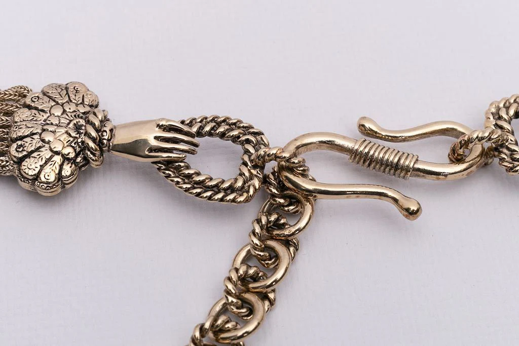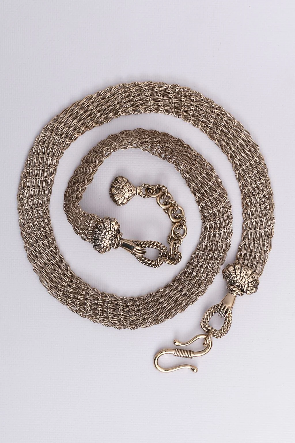 ANONYME -Ceinture vintage en métal argenté figurant des mains. Condition : Très bon état Dimensions : Longueur : 90 cm