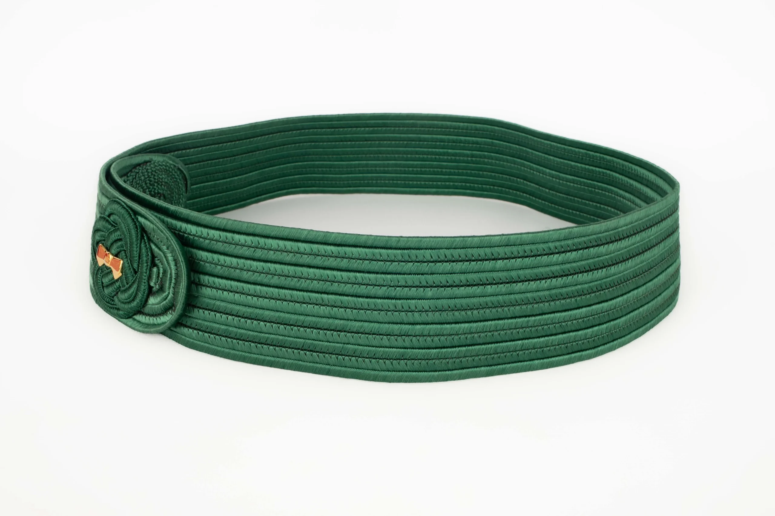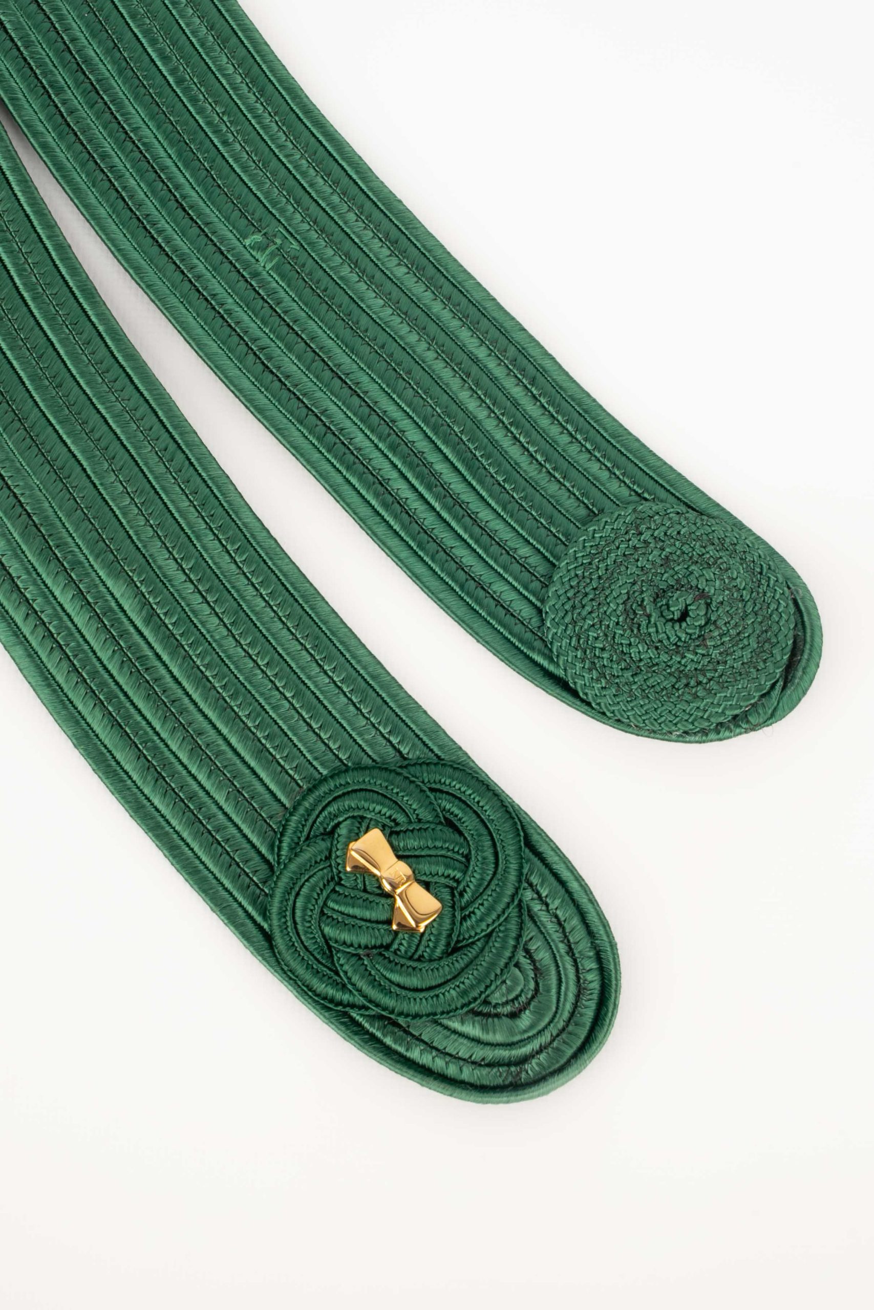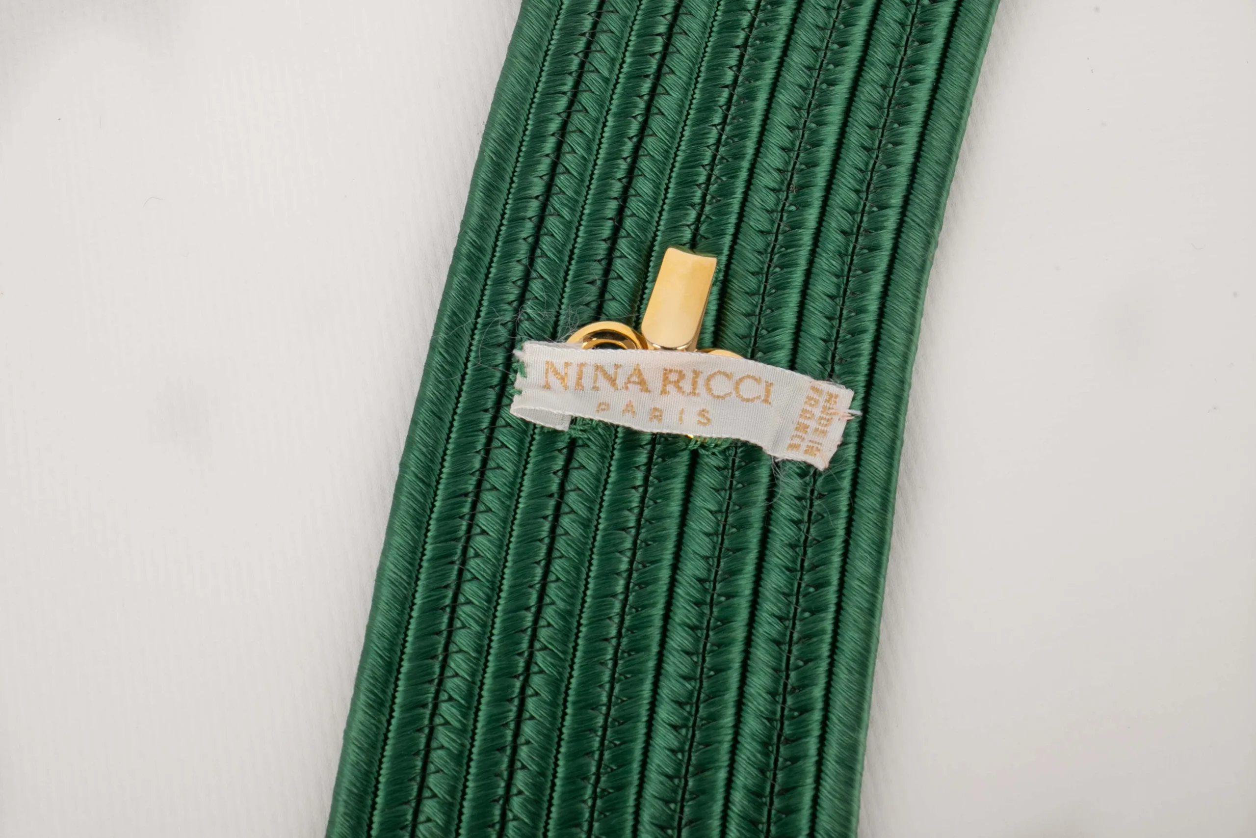 NINA RICCI -(Made in France) Ceinture en passementerie verte et logo noeud en métal doré.