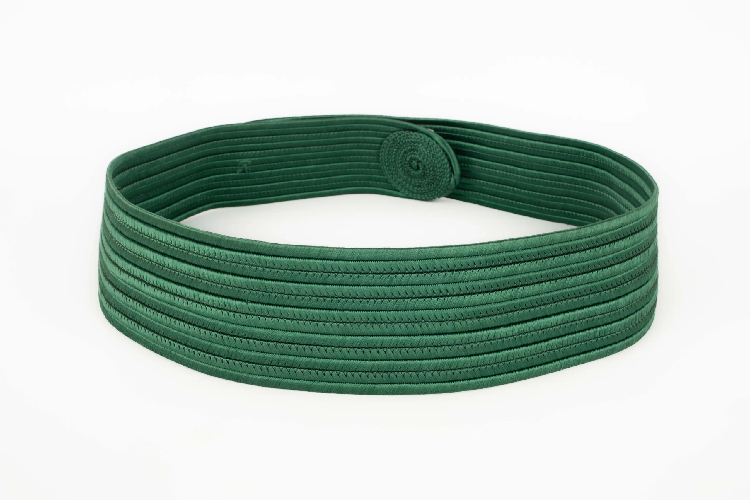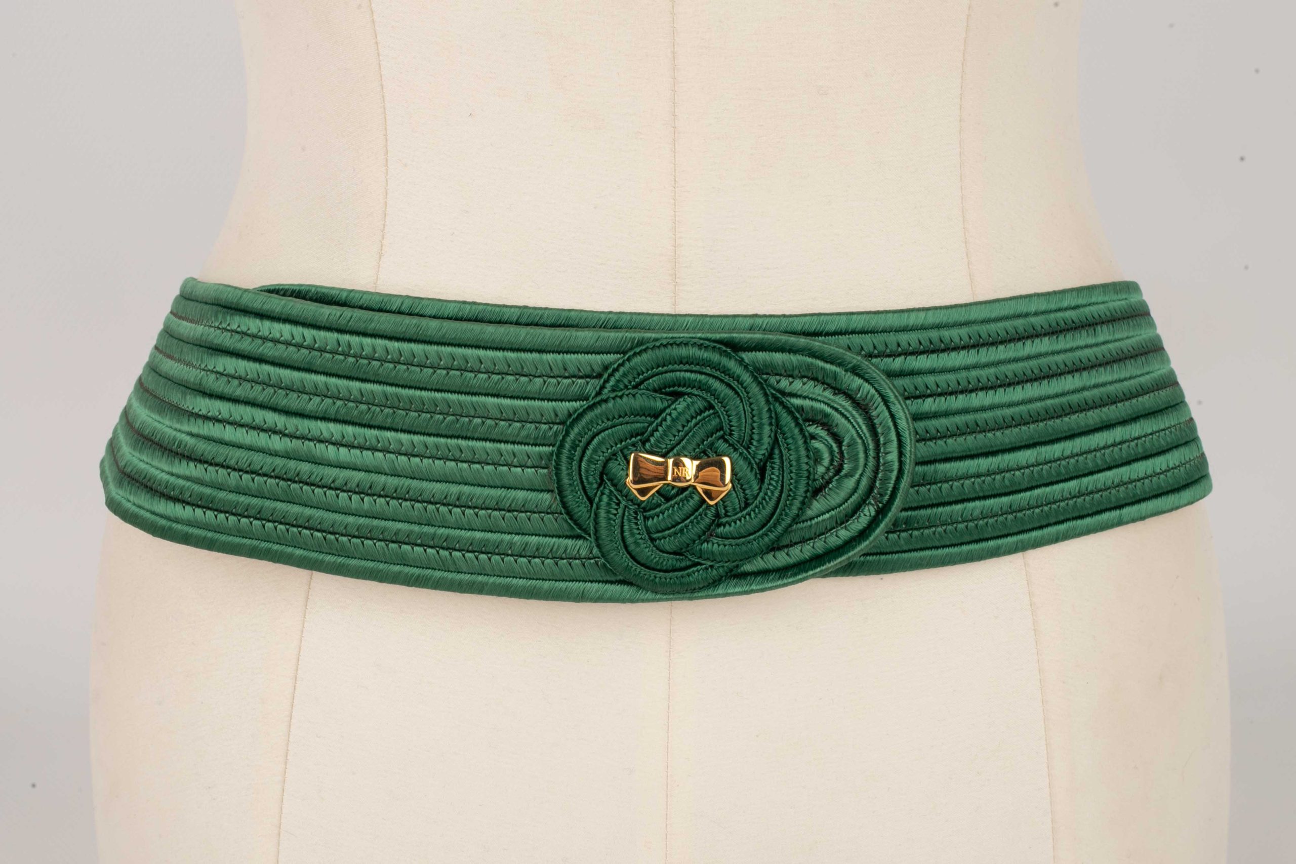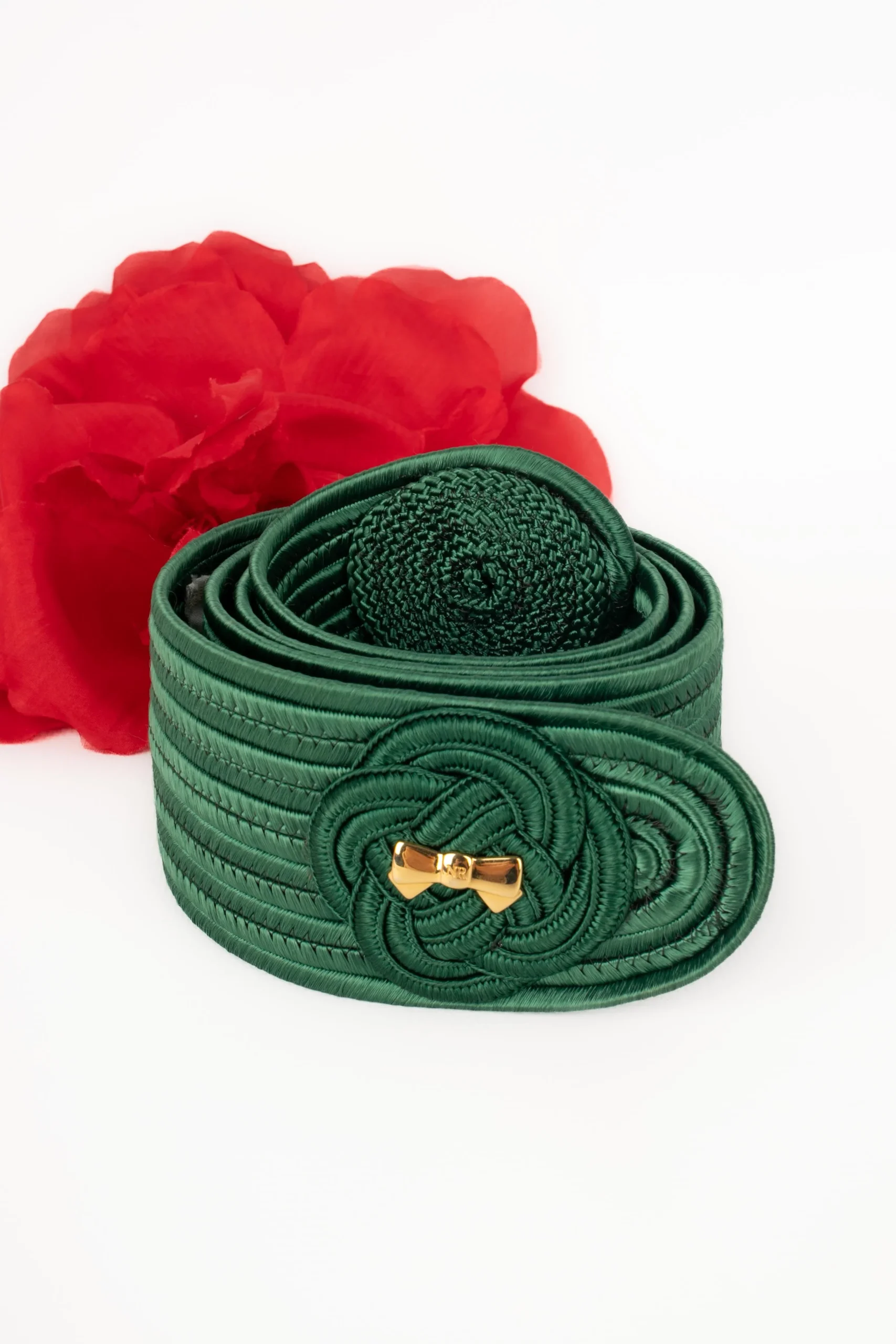 NINA RICCI -(Made in France) Ceinture en passementerie verte et logo noeud en métal doré.