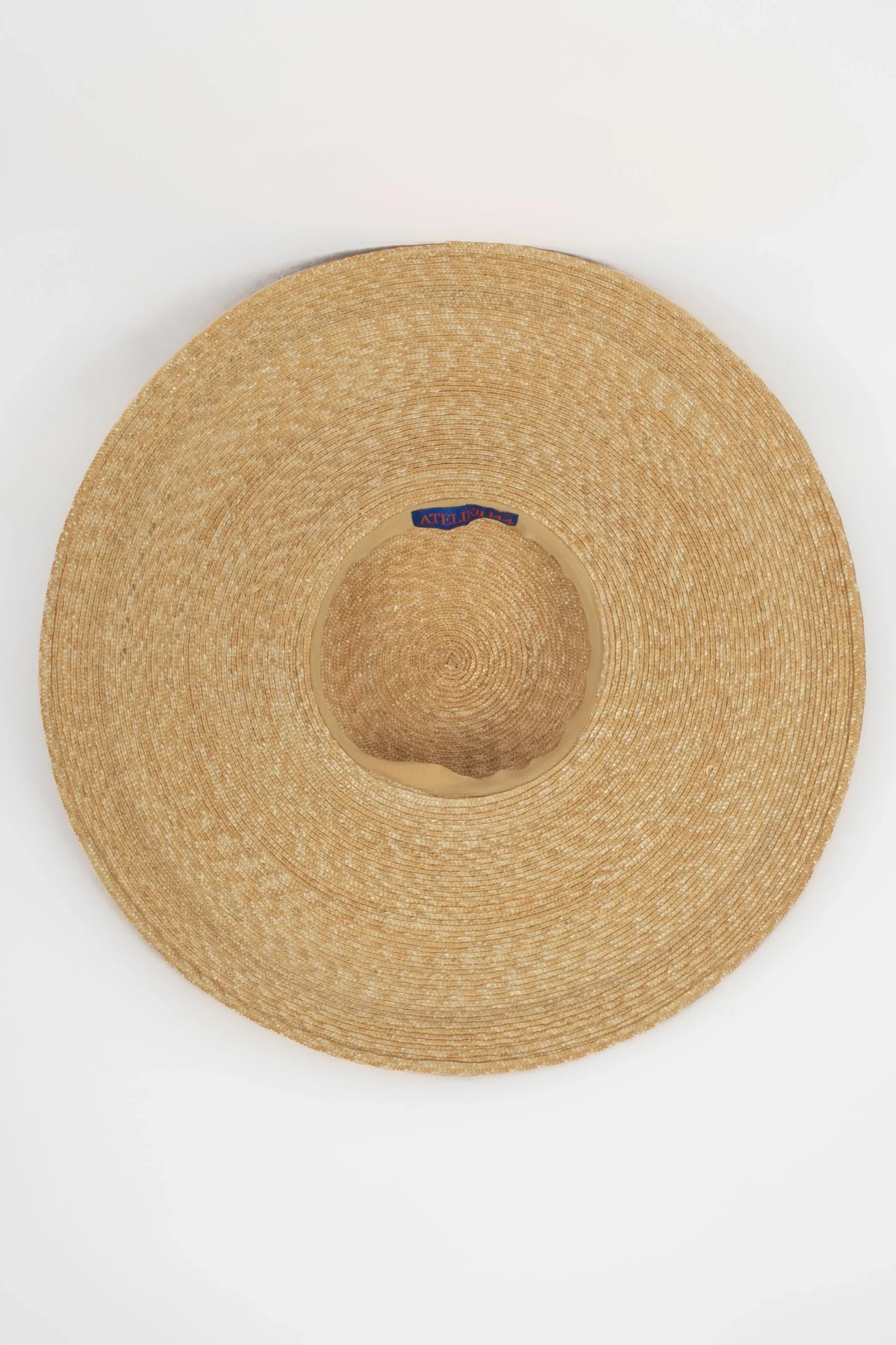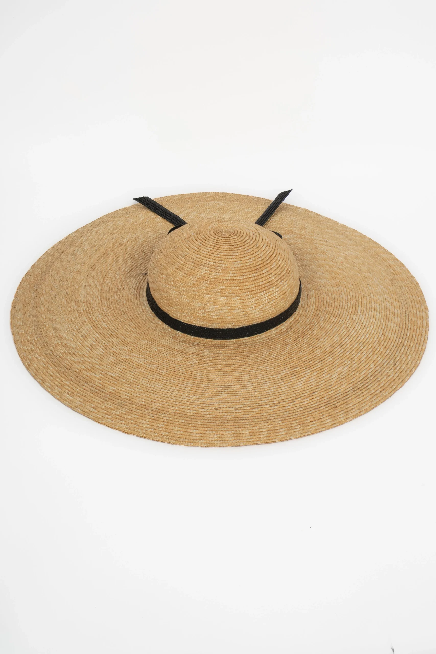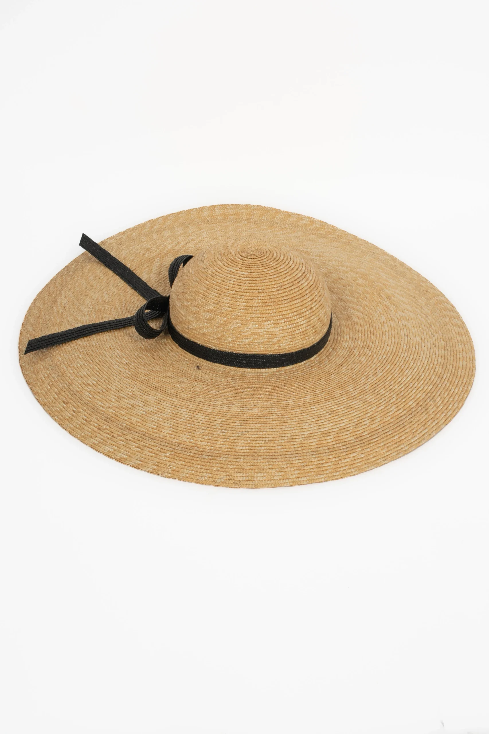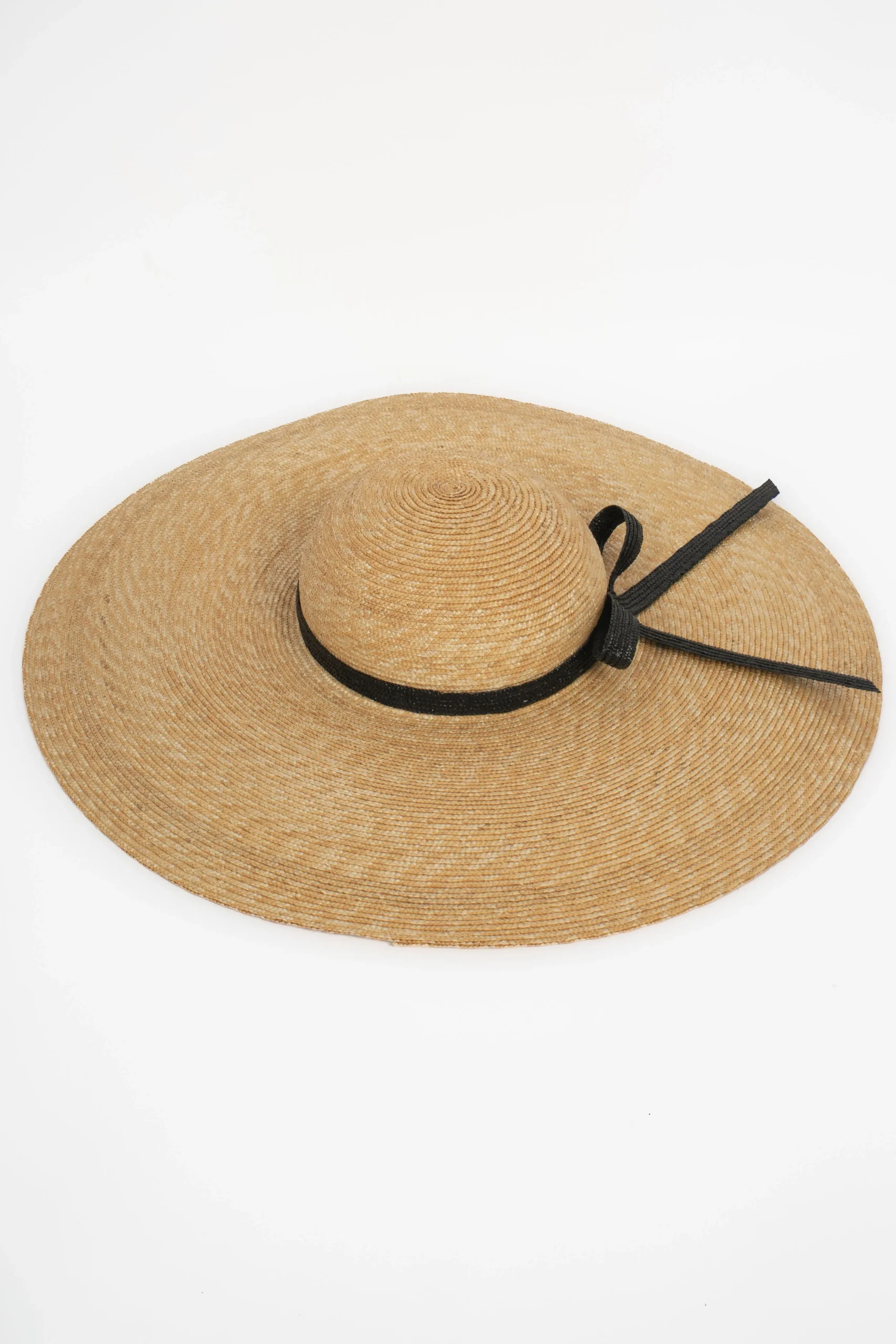 ANONYME – Très grand et large chapeau de paille orné d’un noeud de la marque Atelier 144.
