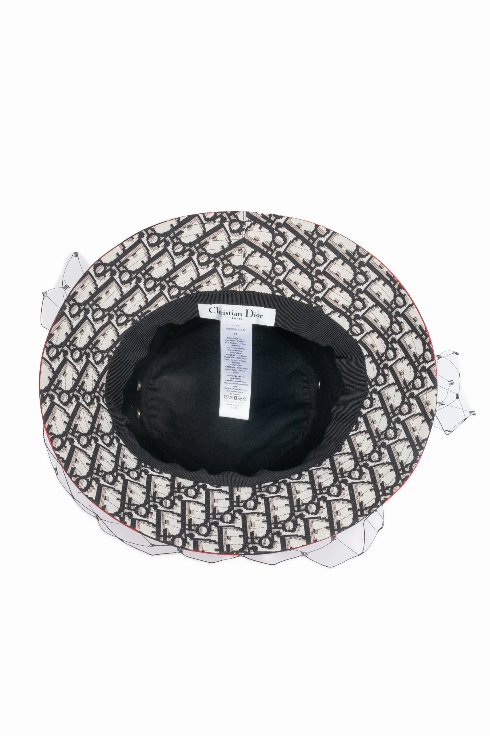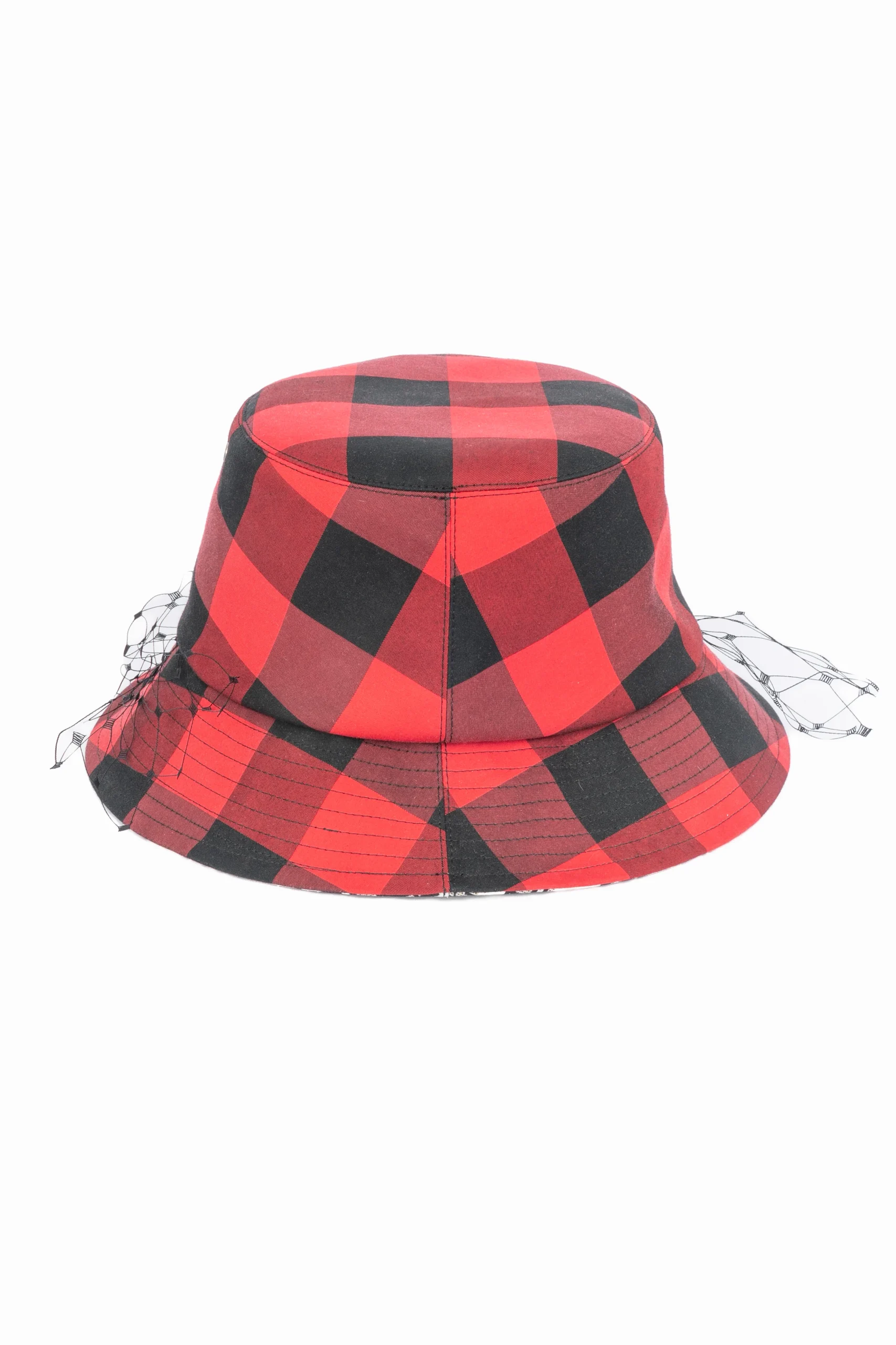 DIOR – (Made in Italy) Chapeau style bob rouge et noir à carreaux. Le retour intérieur est monogrammé. Collection Automne-Hiver 2019 sous la direction artistique de Maria Grazia Chiuri.