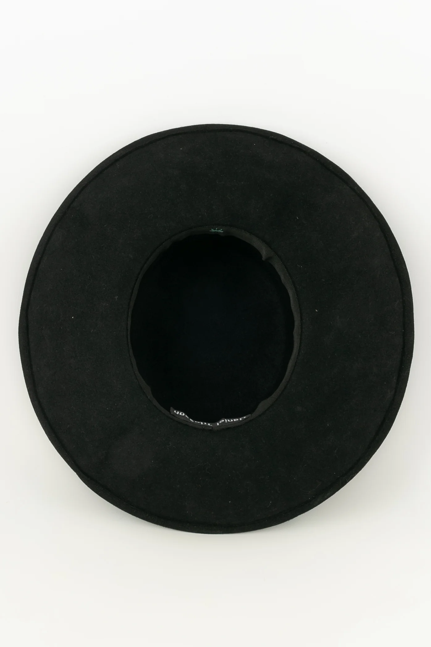 ANONYME -Chapeau en feutre noir et ruban vert à rayures. Condition : Très bon état Dimensions : Circonférence : environ 56 cm