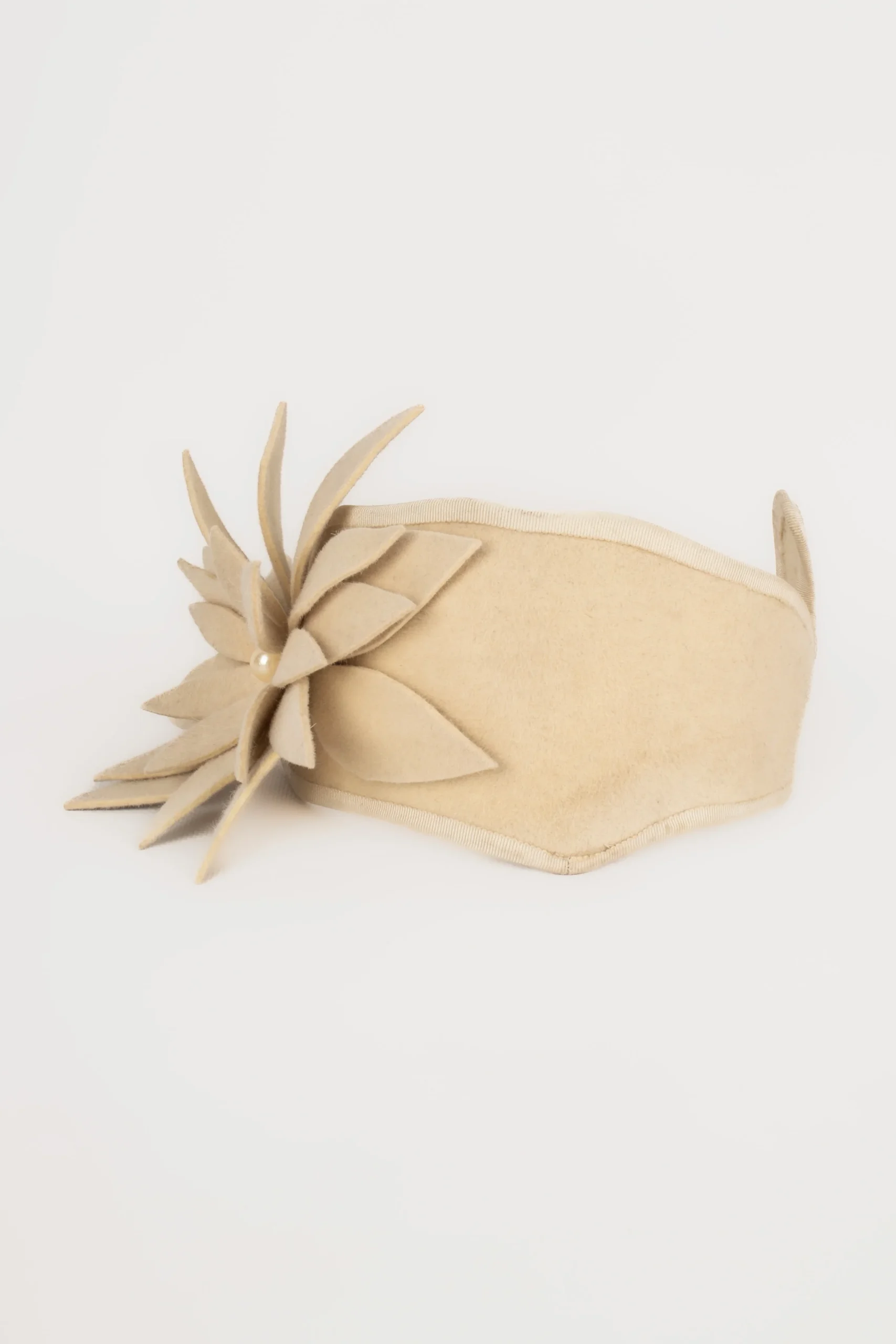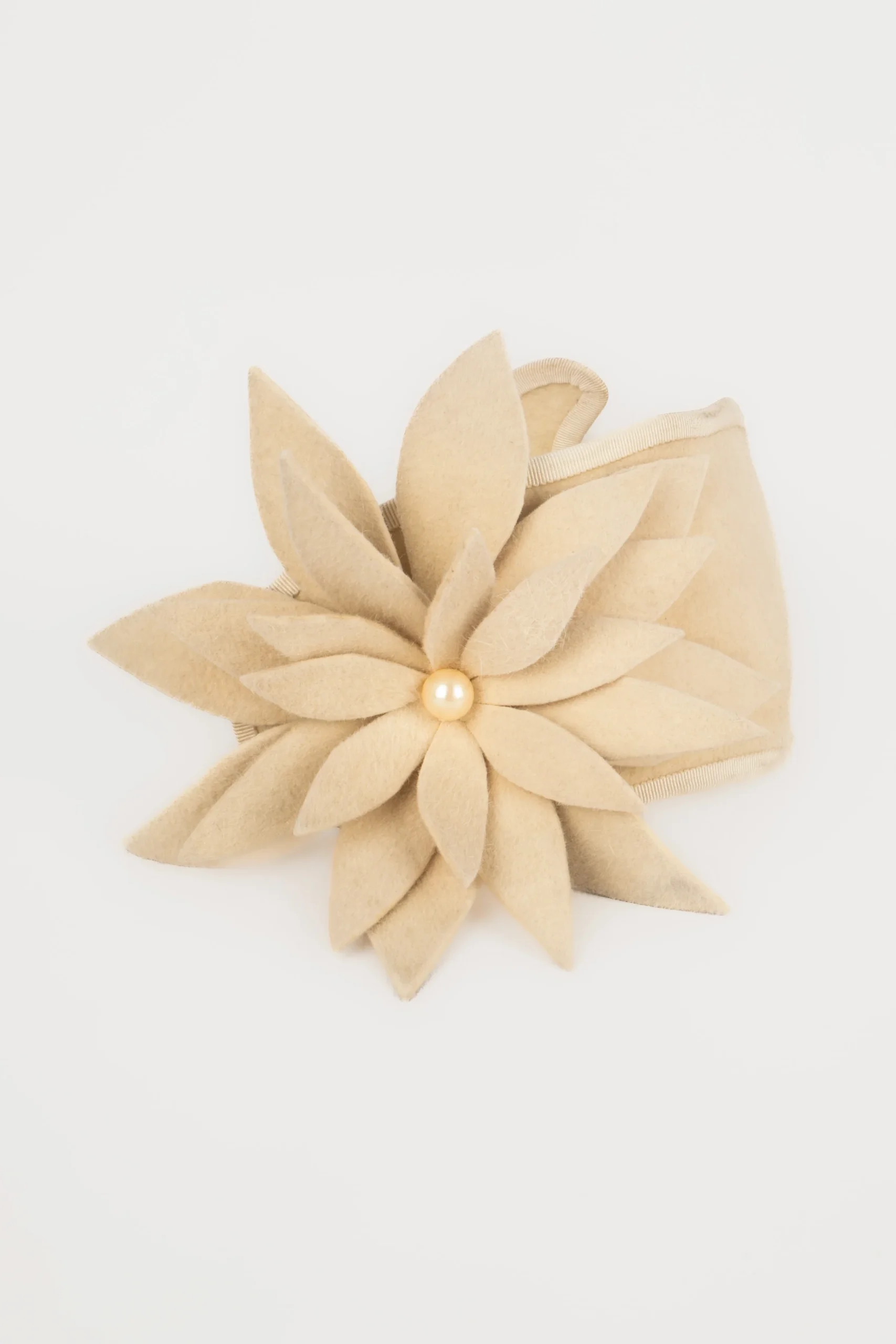MARIE MERCIà -Accessoire de tête style serre-tête beige, figurant une fleur accompagnée de perles nacrées fantaisies. Condition : Bon état Dimensions : Longueur : 31 cm