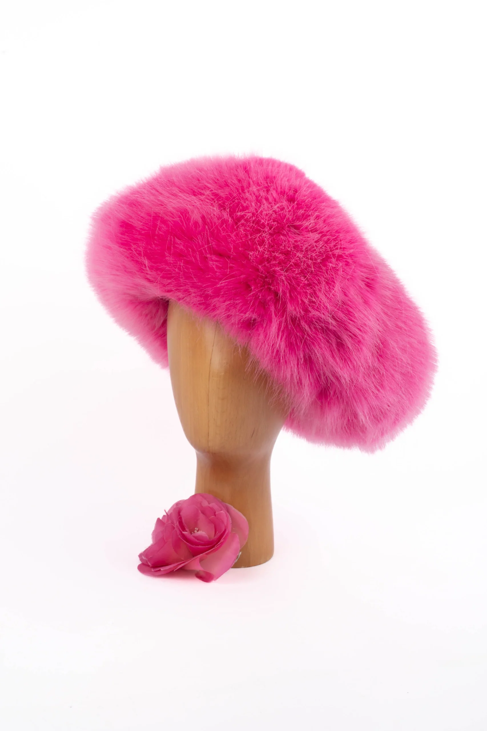 ALEXANDRE VAUTHIER – Chapeau style toque en fausse fourrure rose. Collection Printemps-Eté 2023 sous la direction de Alexandre Vauthier. Pièce non signée. Taille M.