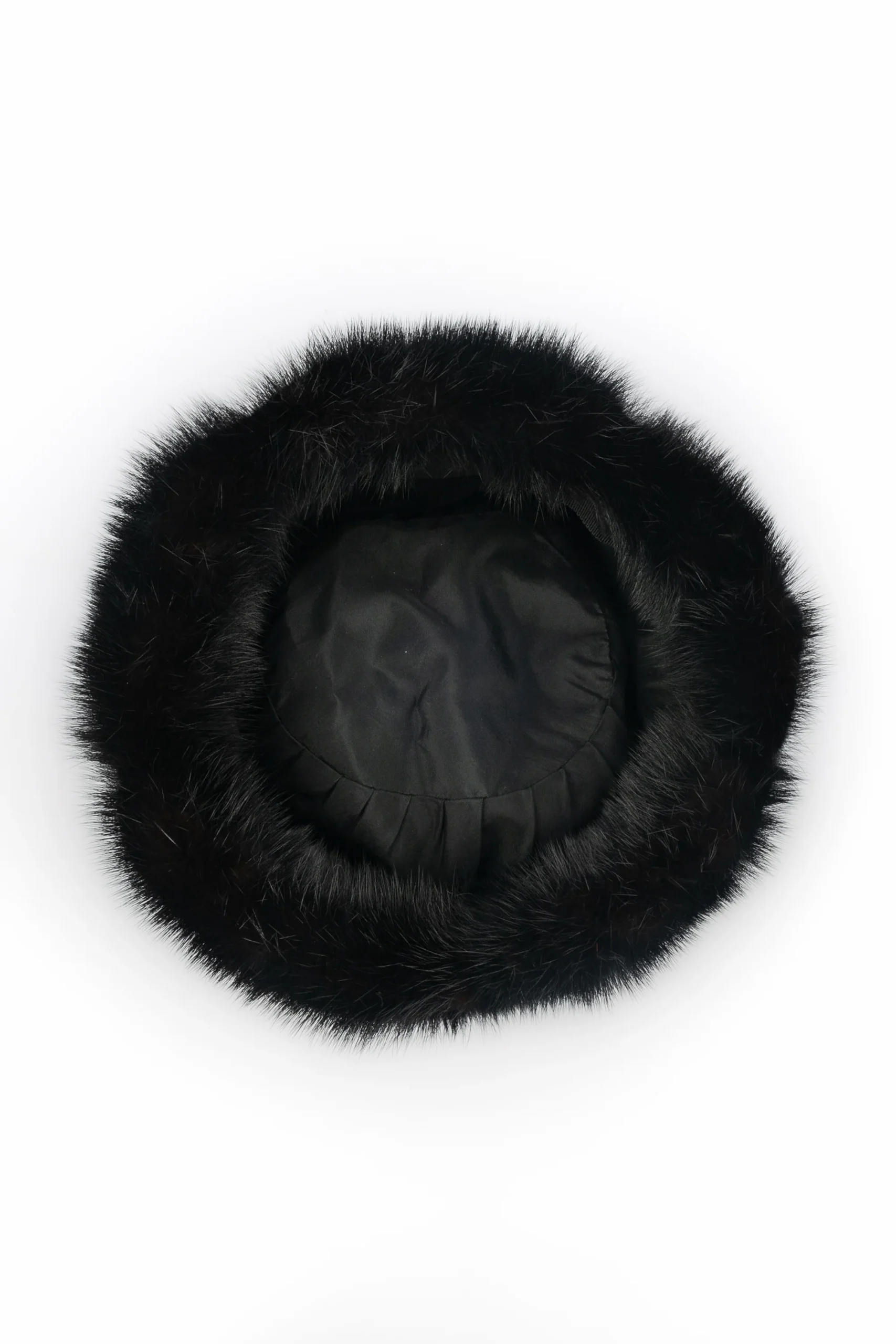 ANONYME – (Made in France) Chapeau vintage en fourrure de vison foncé. Condition : Très bon état Dimensions : Tour de tête : 51 cm