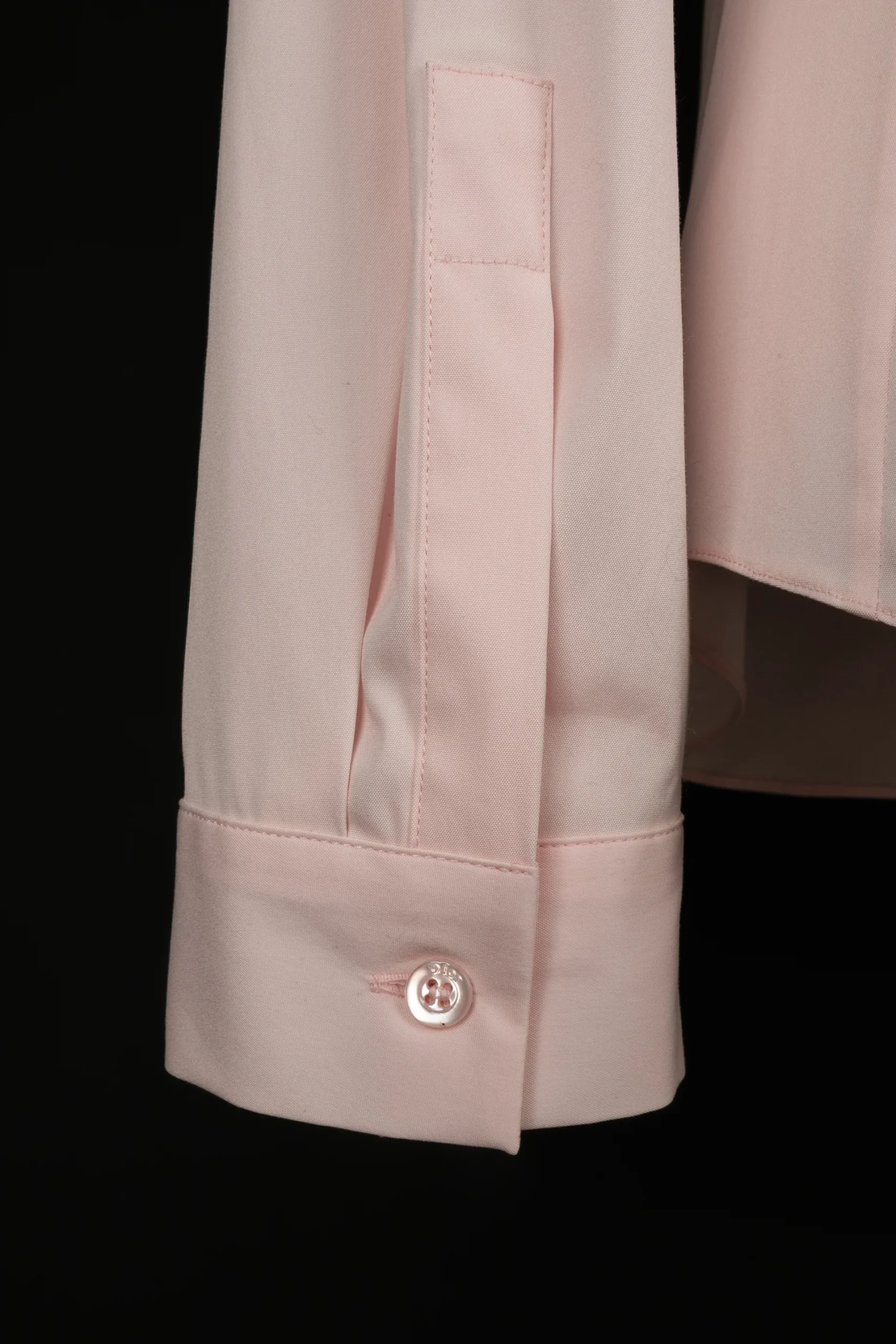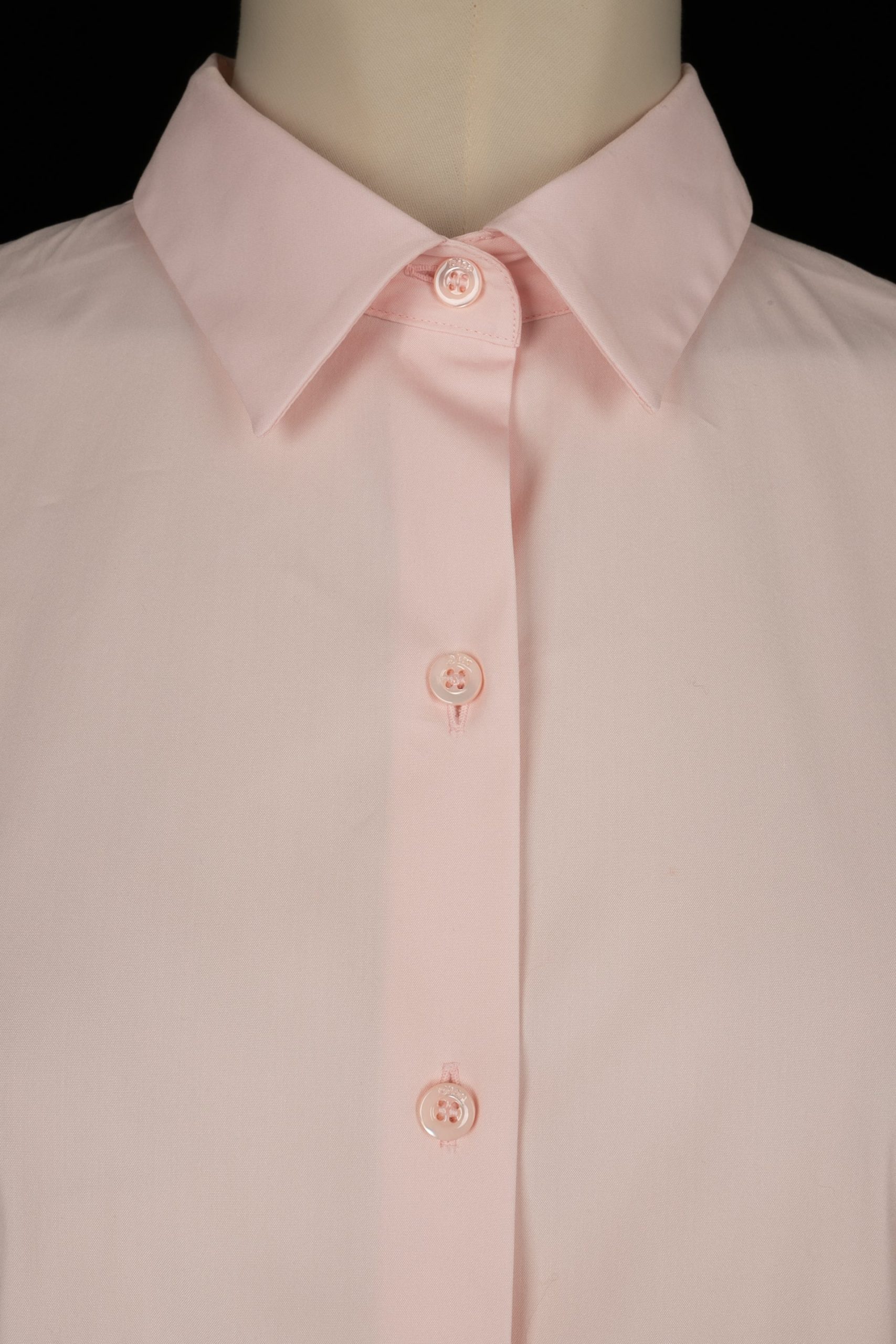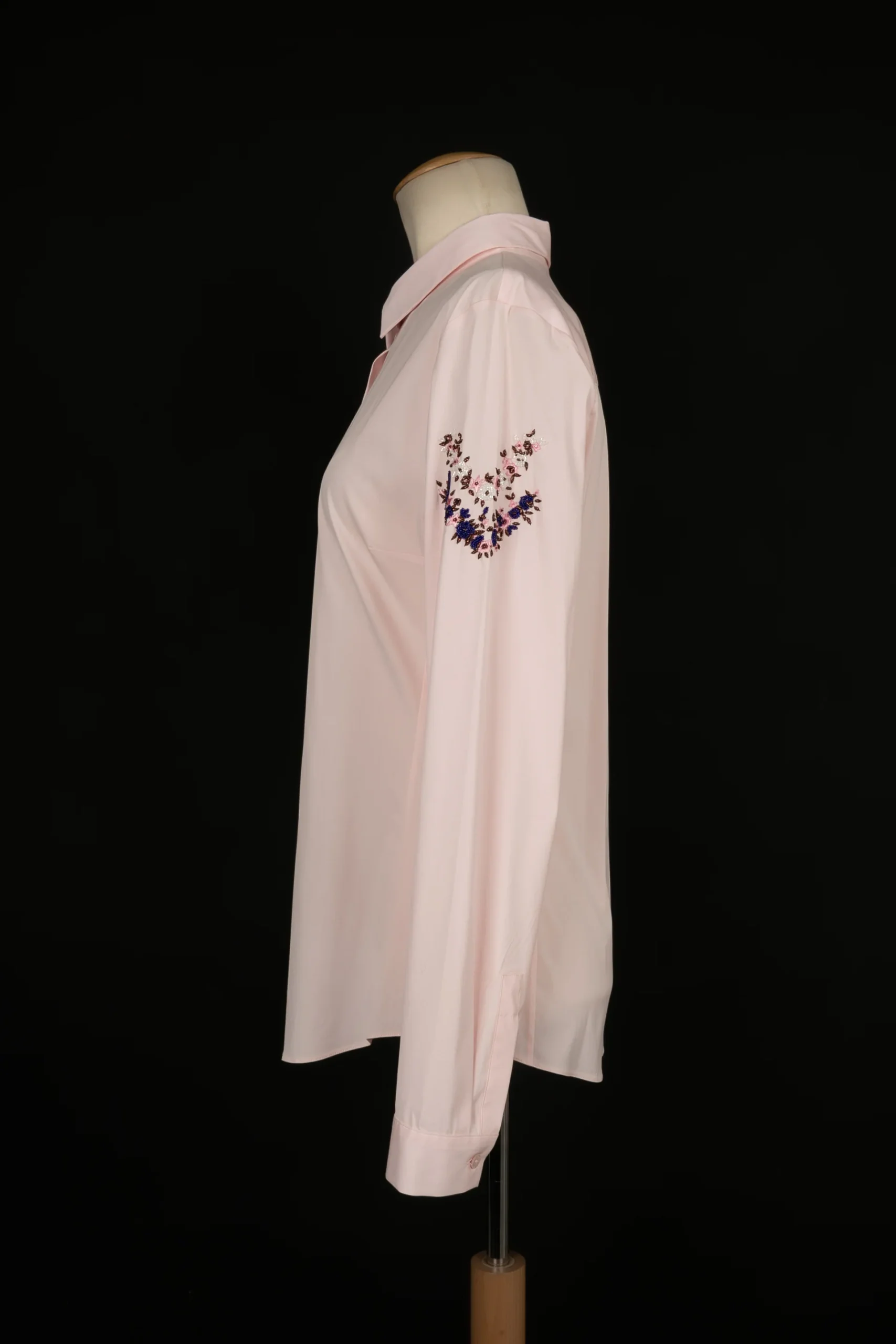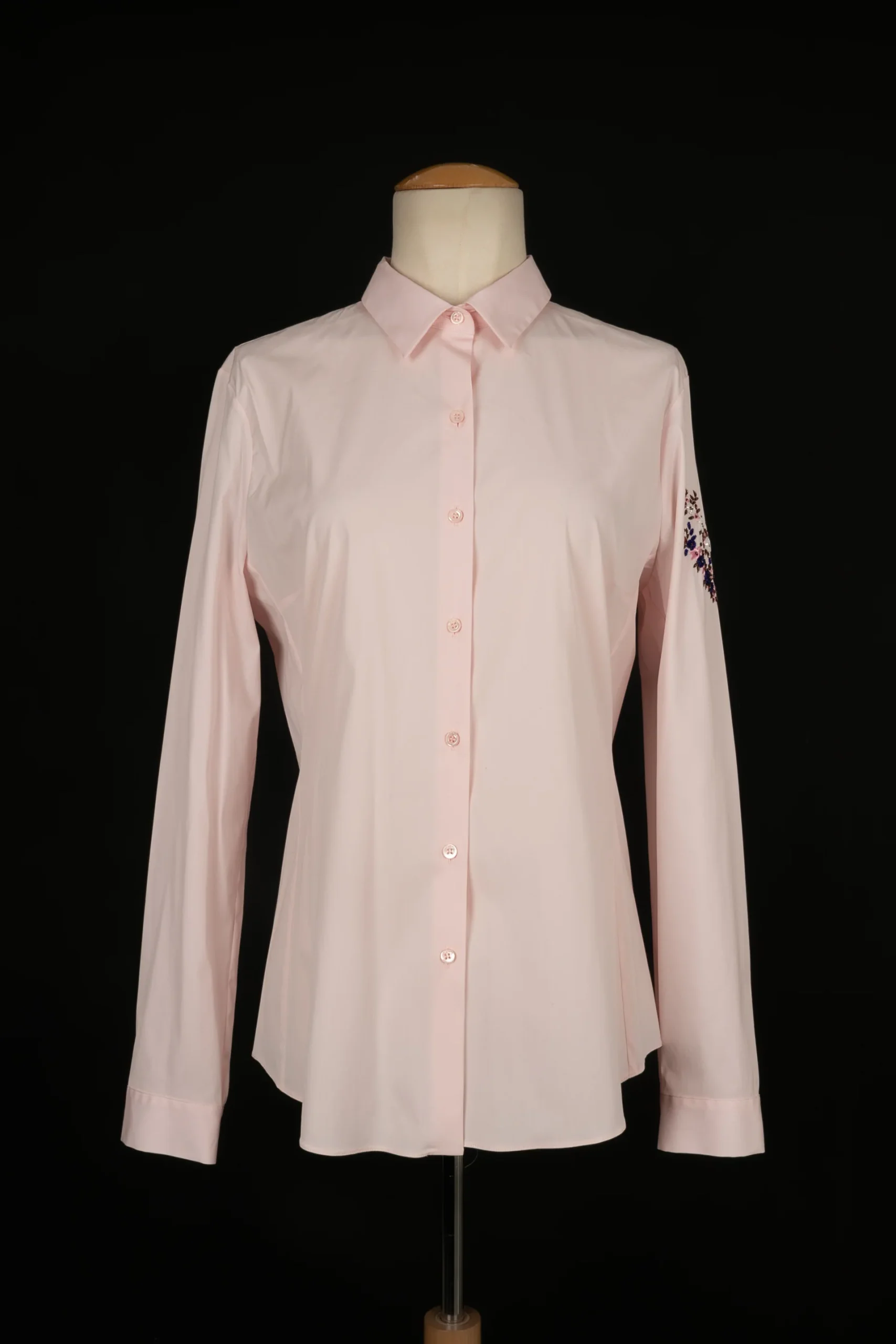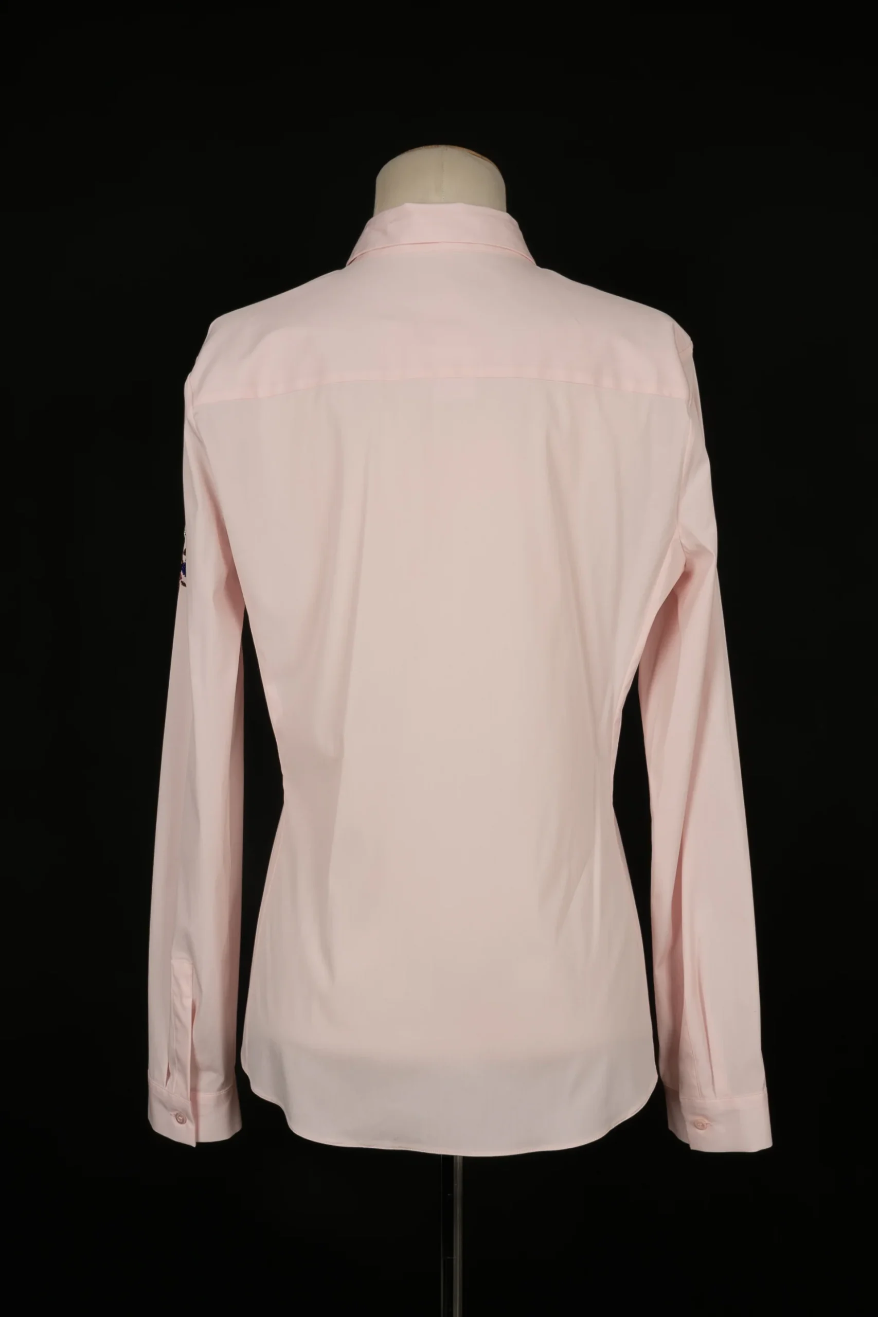 DIOR -(Made in Italy) Chemise en coton rose brodée au niveau de la manche. Taille 42FR.